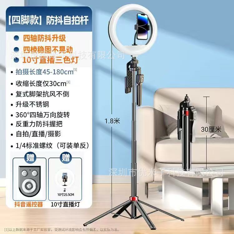 새로운 4축 휴대폰 셀카봉, 라이브 여행 사진 촬영, 바닥에서 천장까지 접이식 오버헤드 촬영 올인원 셀카봉스토어 가기