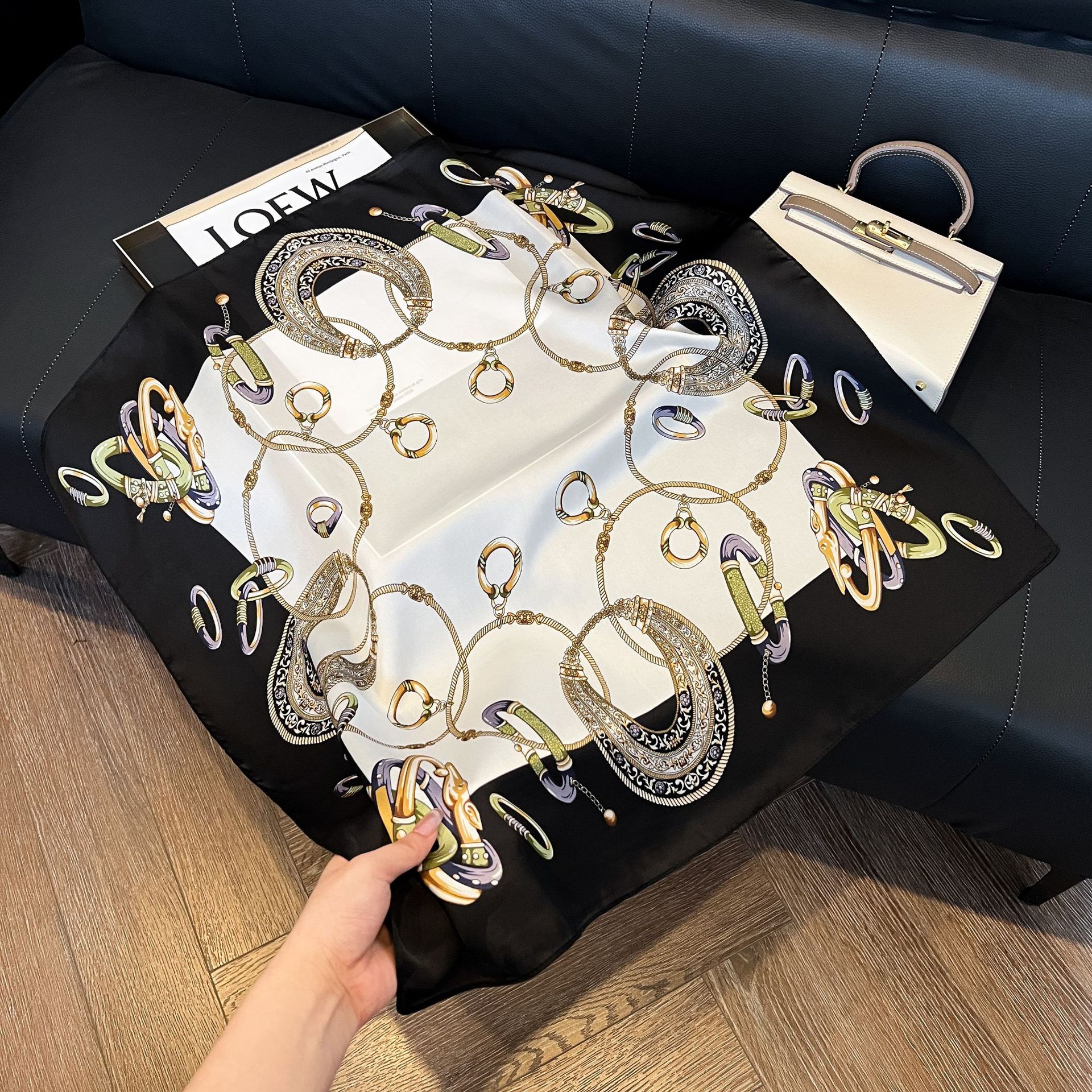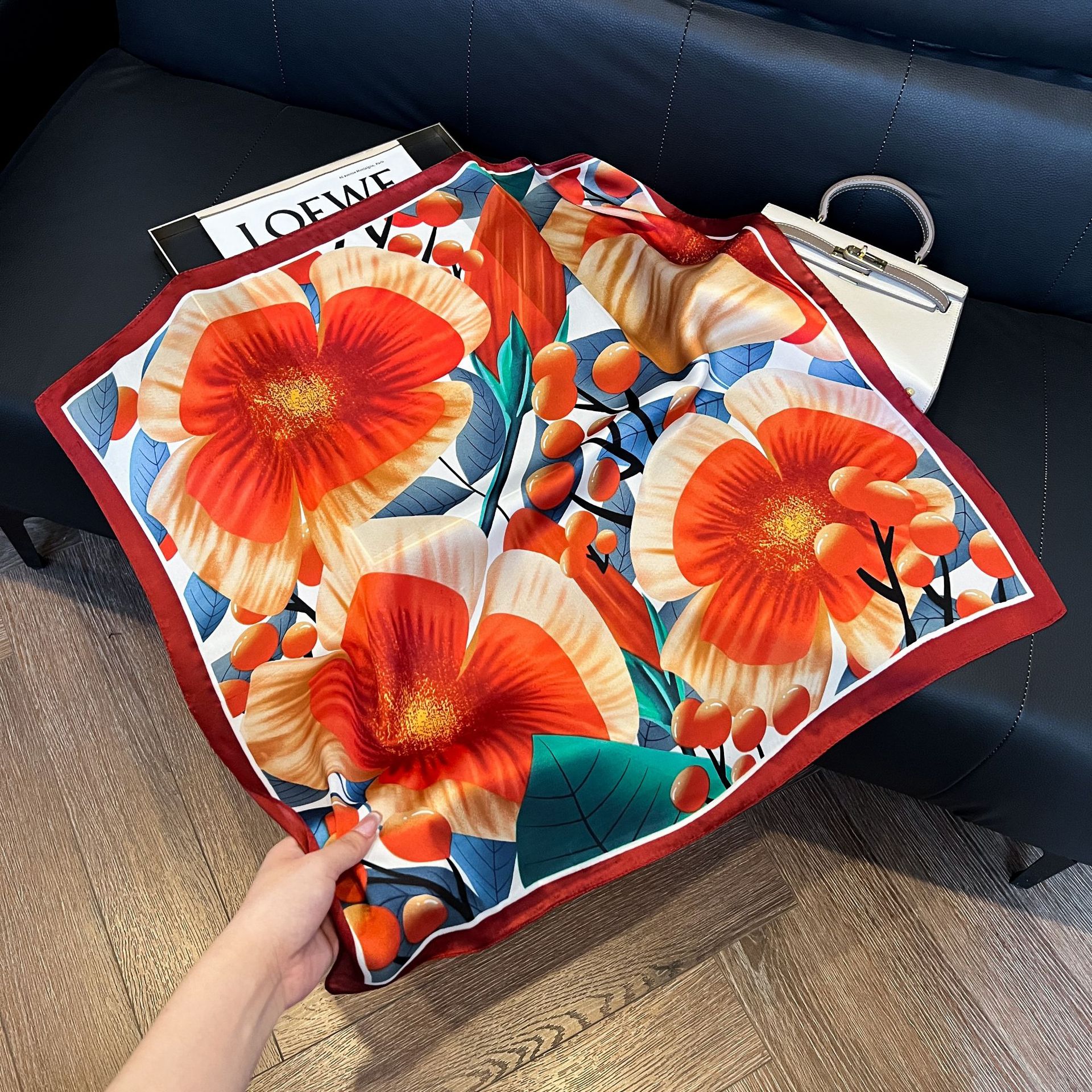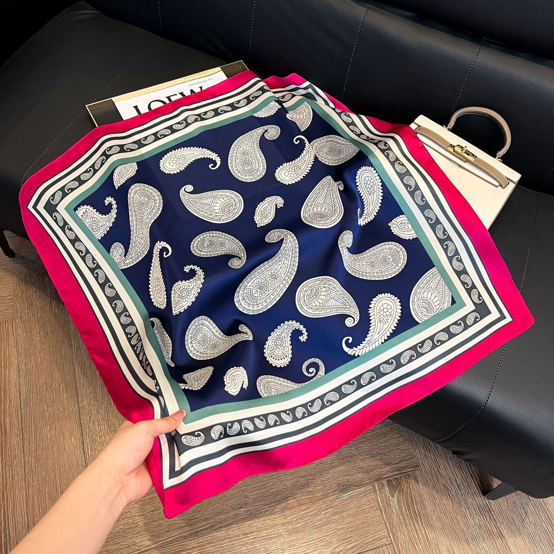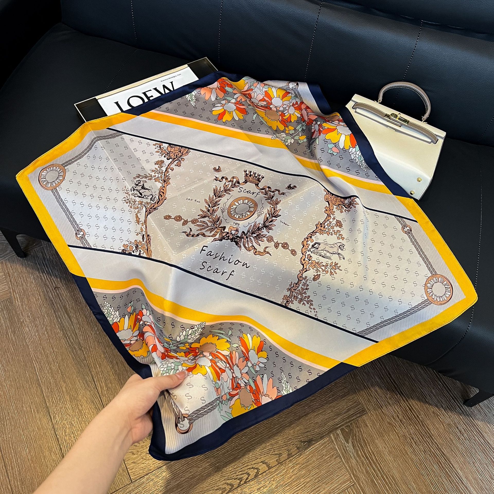 스트라이프 실크 스카프 5종 컬렉션, 여성용 모조 실크 스몰 스퀘어 스카프, 심플하고 패셔너블한 전문 스카프, 고급스러운 느낌의 스카프스토어 가기