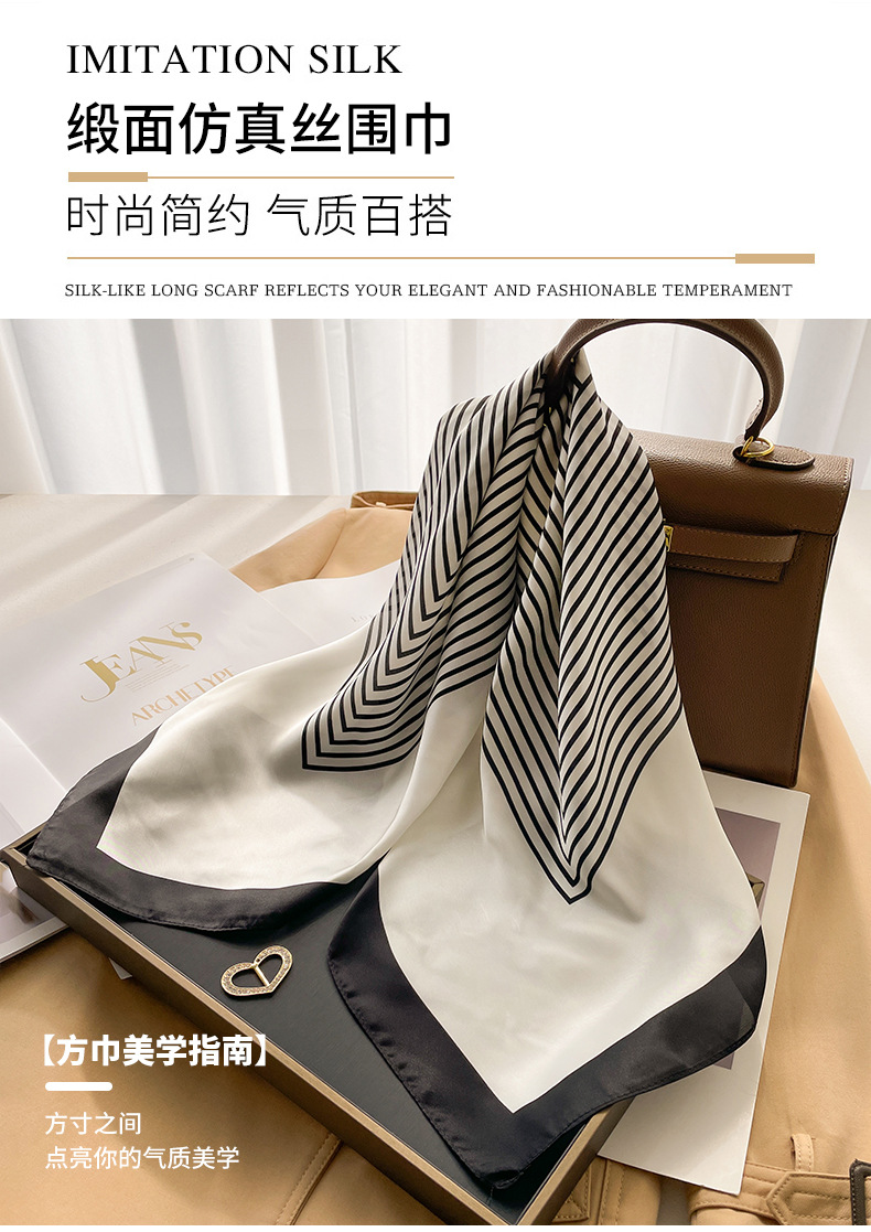 스트라이프 실크 스카프 5종 컬렉션, 여성용 모조 실크 스몰 스퀘어 스카프, 심플하고 패셔너블한 전문 스카프, 고급스러운 느낌의 스카프