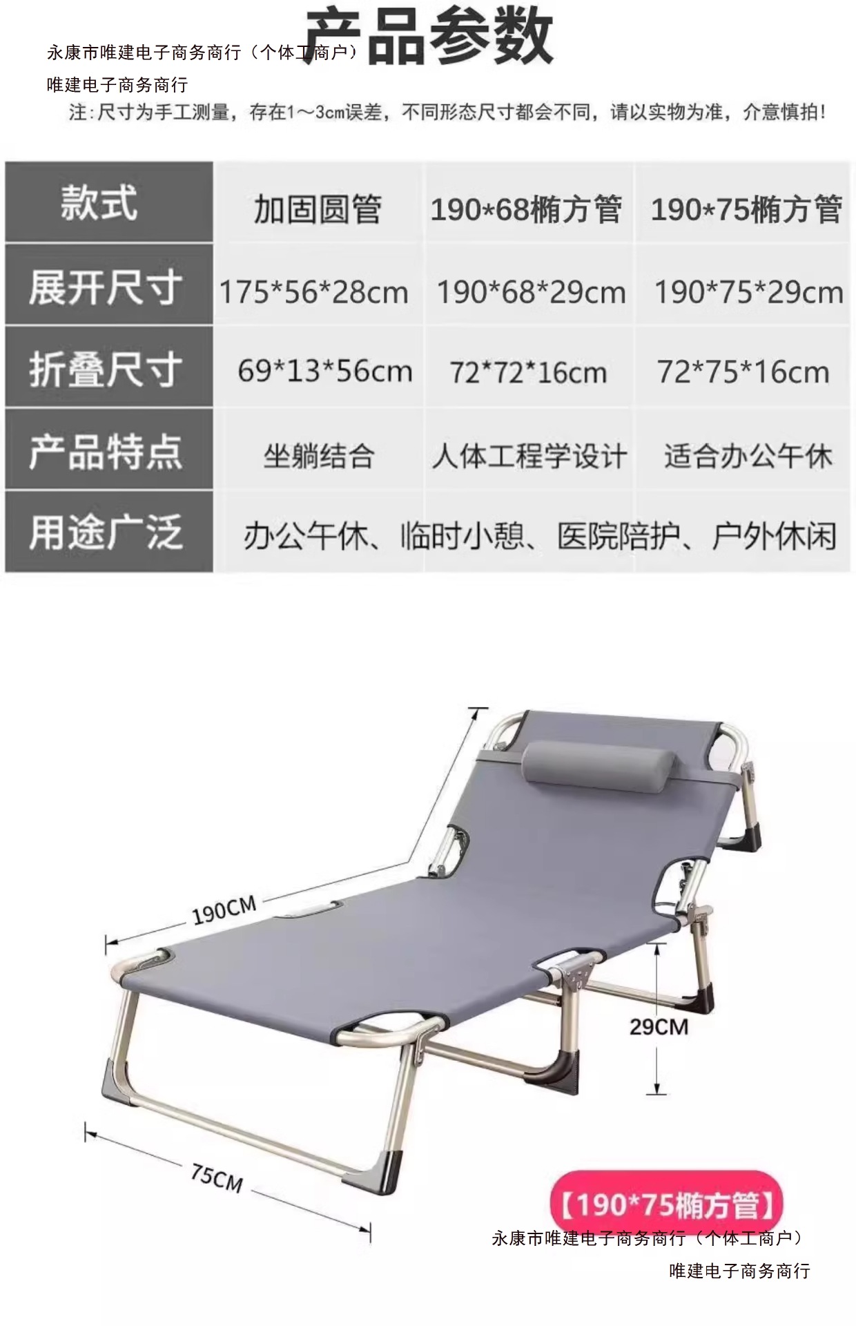 • 플래그십 [실외/점심시간 10각 접이식 침대] 190*71 두꺼운 사각 튜브-블랙