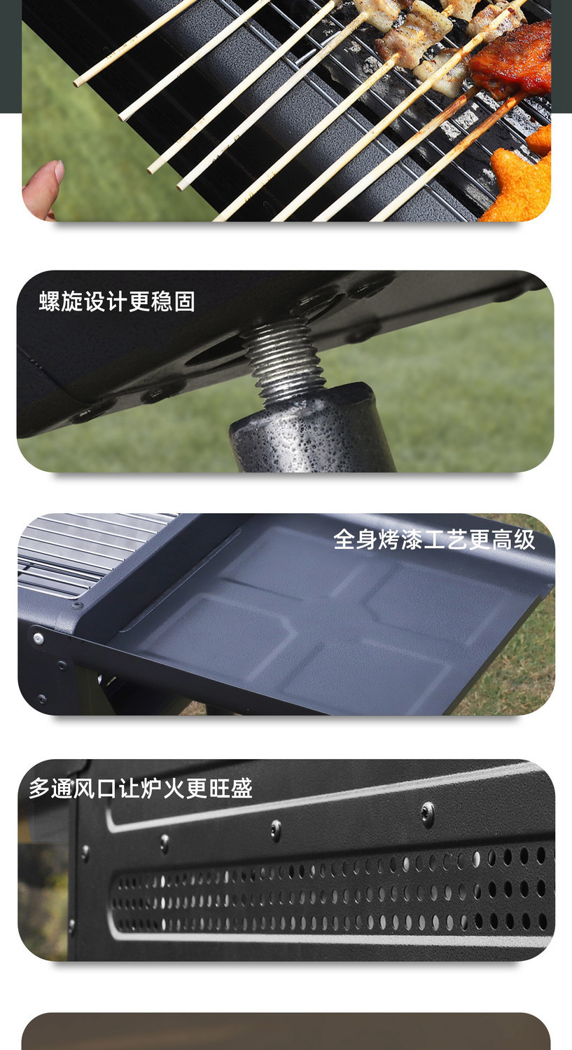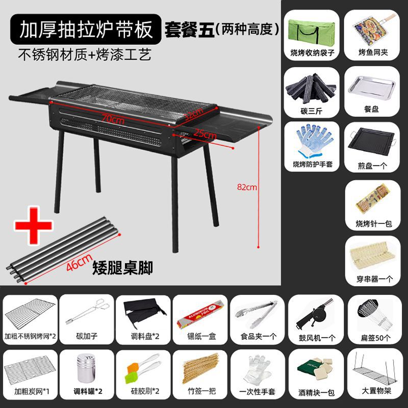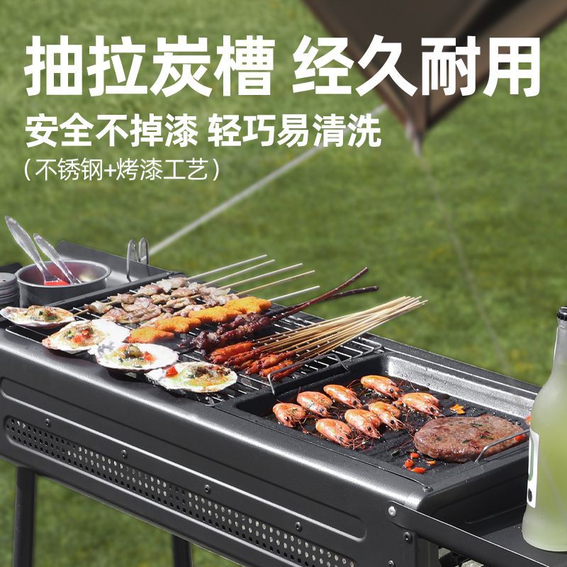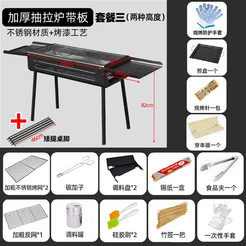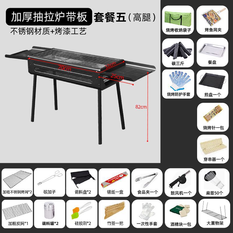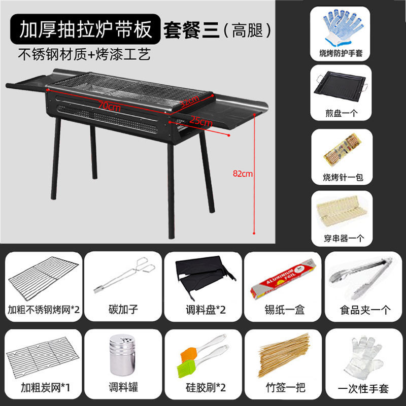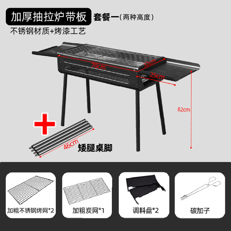 두꺼운 바베큐 그릴, 가정용 야외 바베큐 그릴, 안뜰 숯불 그릴, 일본식 숯불 스테인레스 스틸 풀아웃 접이식 그릴