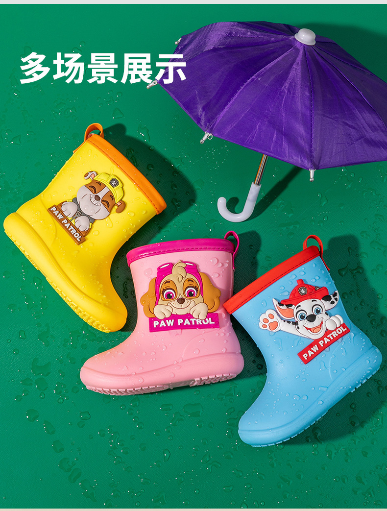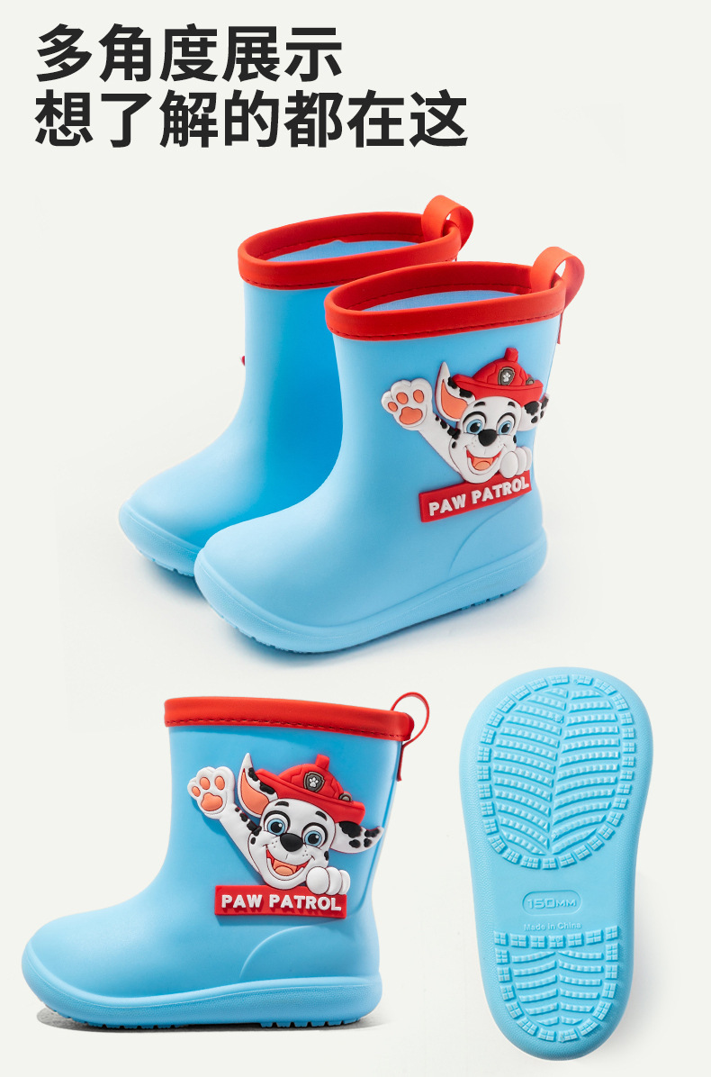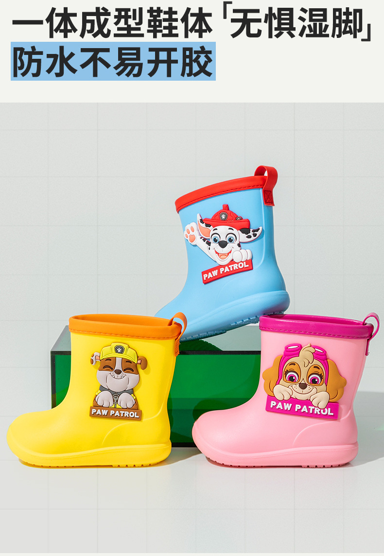 Paw Patrol 어린이 장화 소년과 소녀 만화 미끄럼 방지 부드러운 바닥 어린이 방수 장화 유치원 아기 물 신발