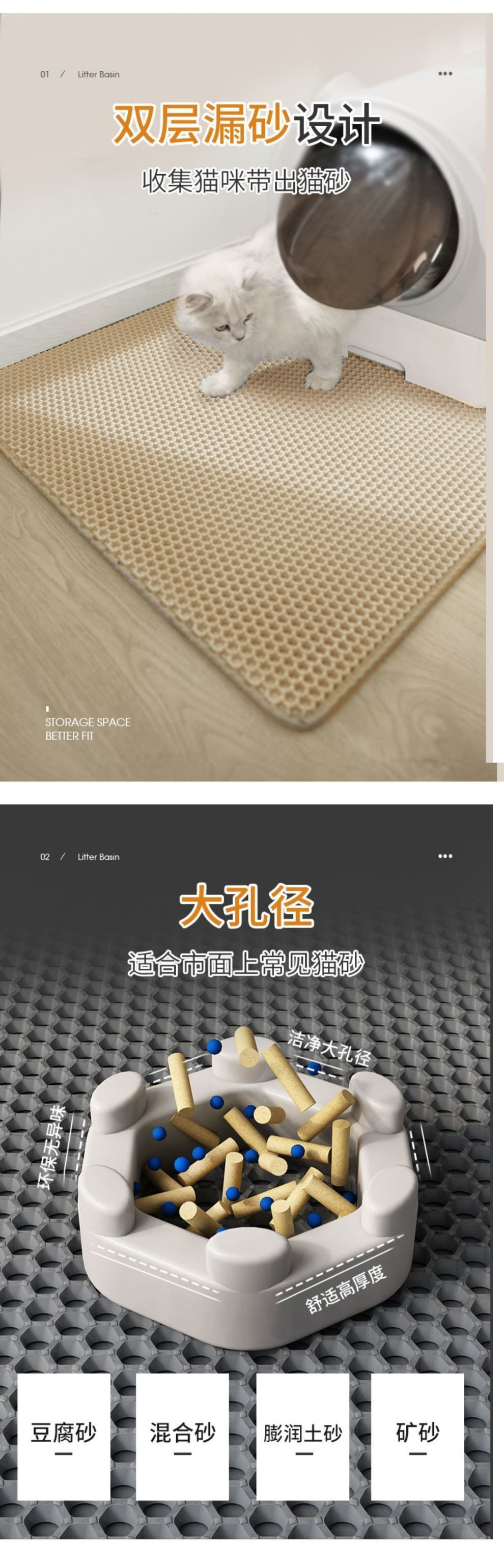 고양이 쓰레기 매트, 고양이 쓰레기통, 물 튀김 방지 매트, 초대형 이중 필터, 누출 방지 및 모래 제어 매트, 애완 동물 고양이 용품