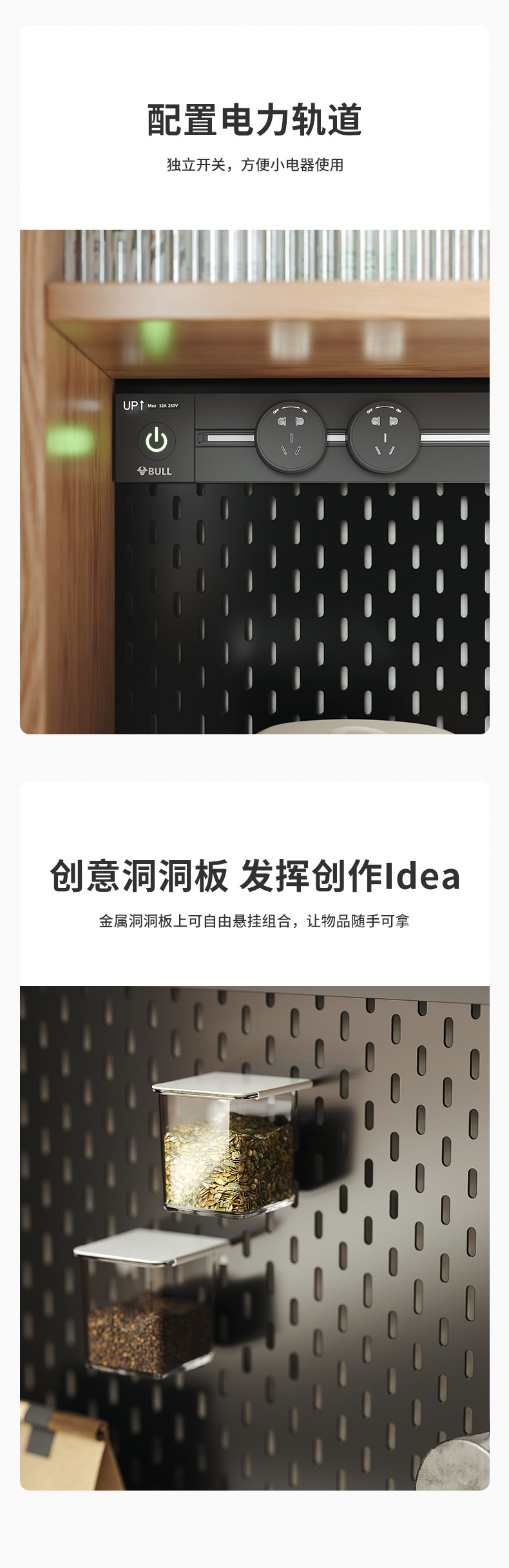 • 1m 상부캐비닛 + 하부캐비닛 + 파워레일 [원목보드]