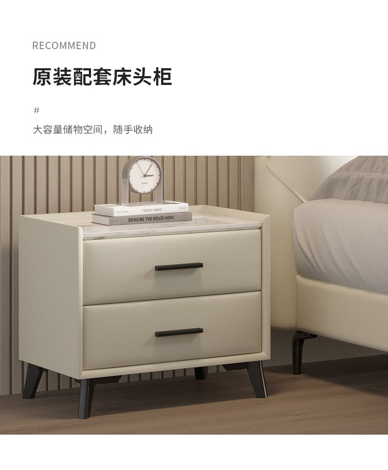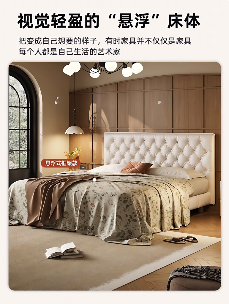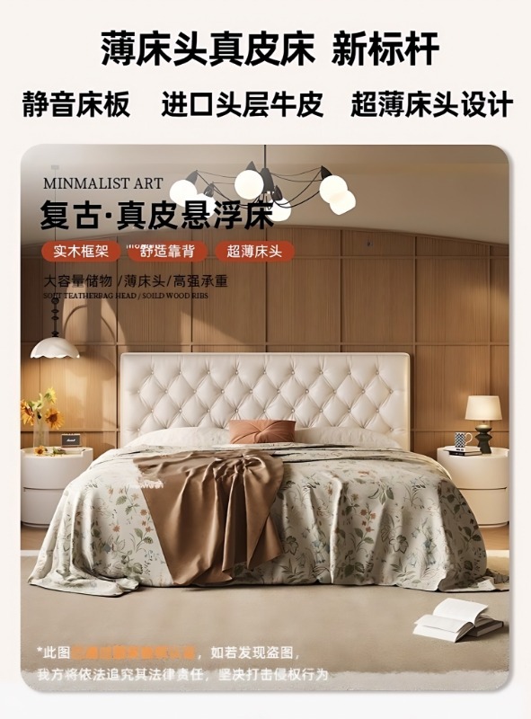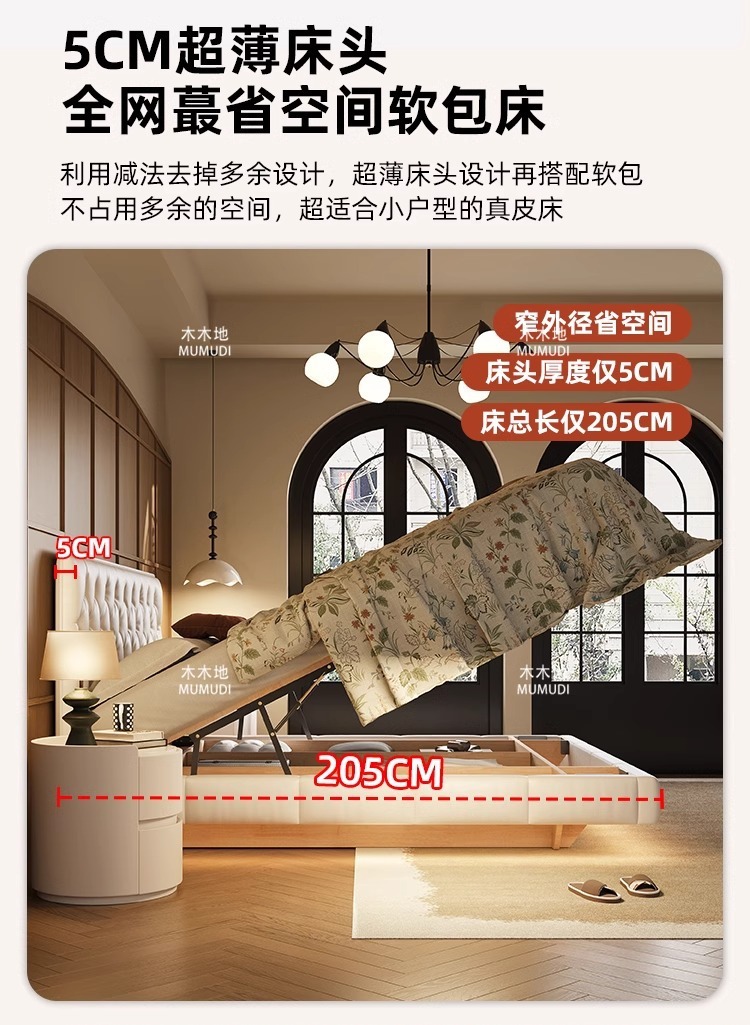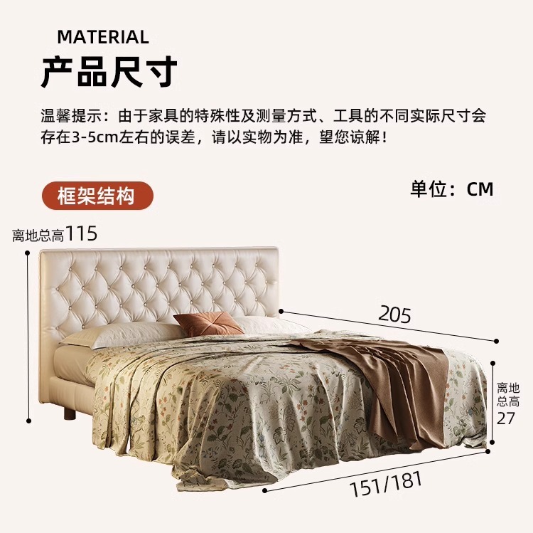 소형 가죽 침대, 고급스러운 하이엔드 마스터 침실 웨딩 침대, 크림 스타일 공주 침대, 모던 심플 얇은 침대 헤드보드, 더블 침대스토어 가기