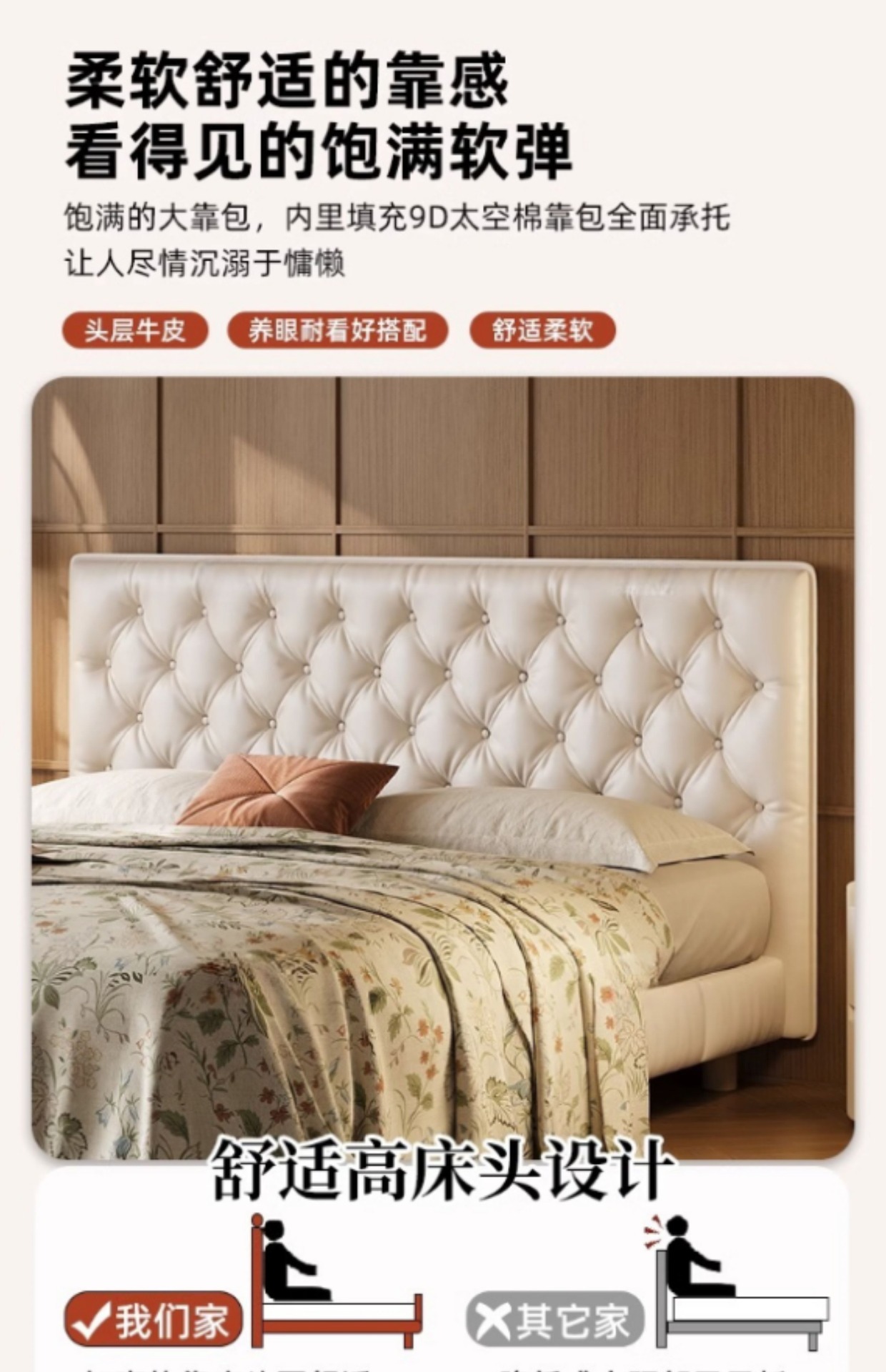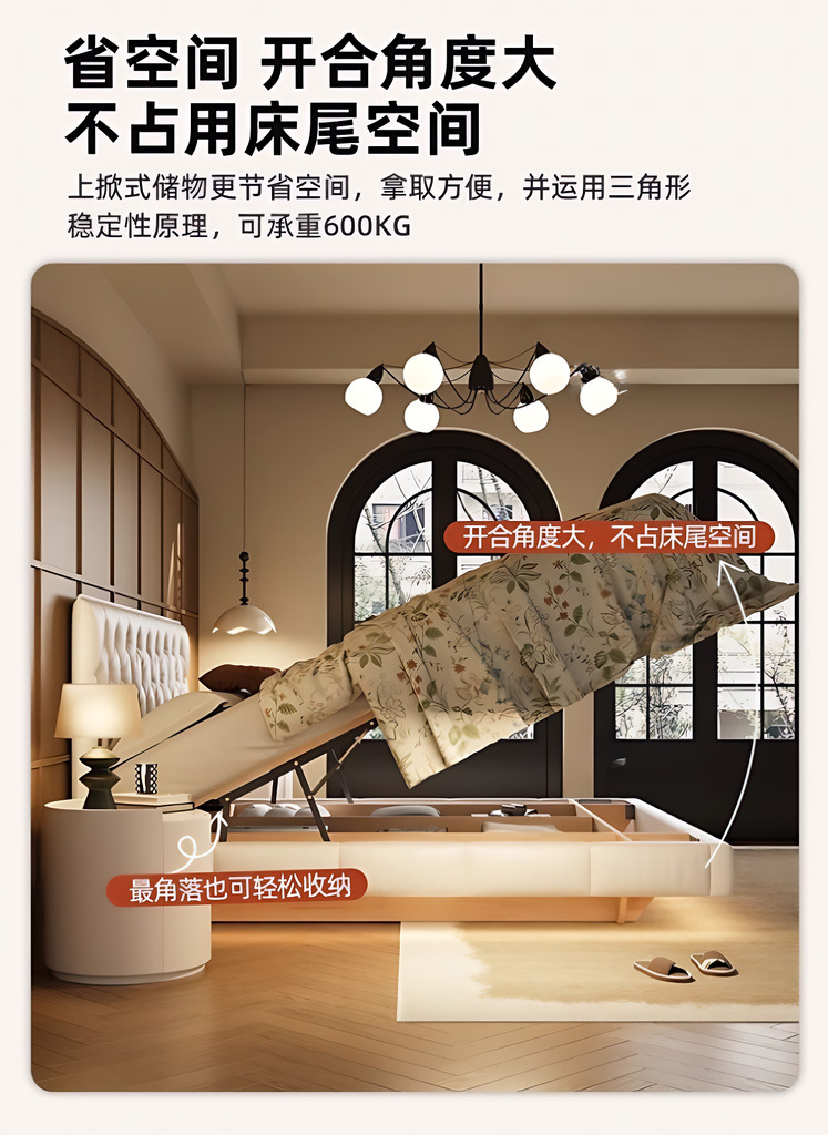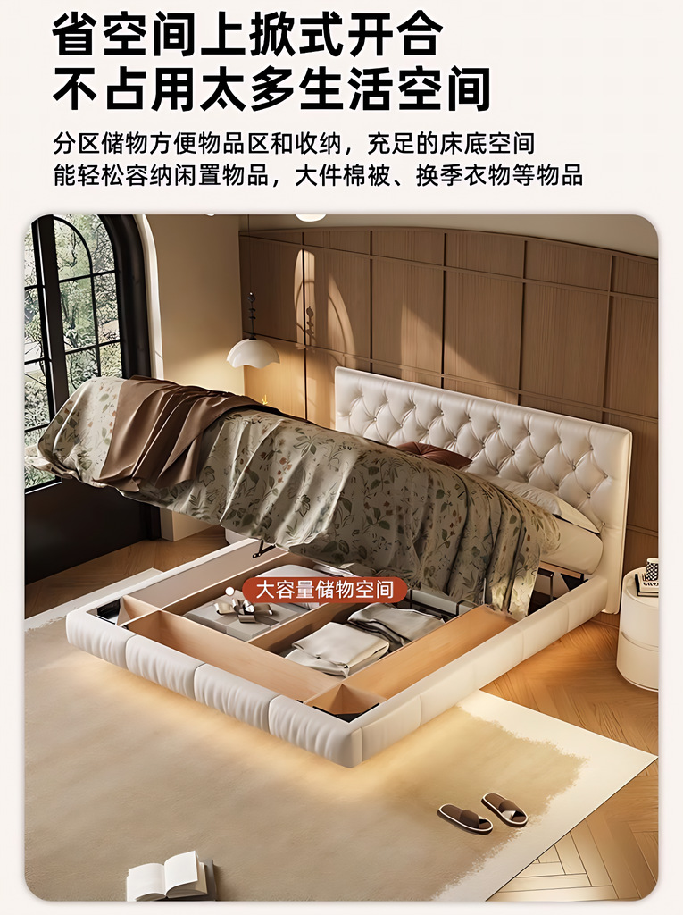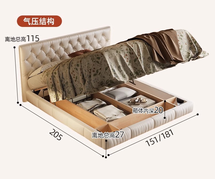 소형 가죽 침대, 고급스러운 하이엔드 마스터 침실 웨딩 침대, 크림 스타일 공주 침대, 모던 심플 얇은 침대 헤드보드, 더블 침대스토어 가기