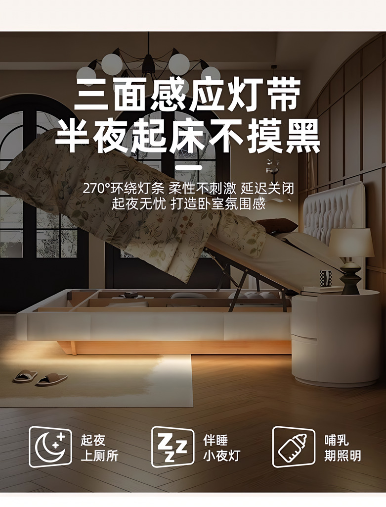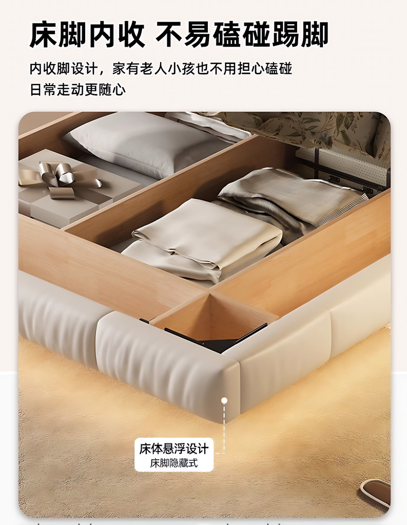 • 2*2.2m 플로팅 조명 침대 (두꺼운 최고급 소재 + 저소음 침대 프레임)