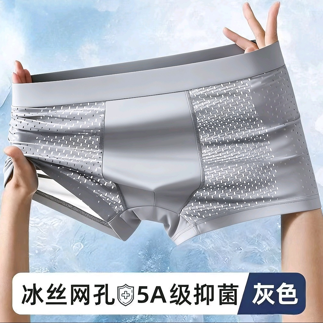 남성용 복서 팬티, 남성용 팬티, 통기성 메쉬, 항균, 흔적 없음, 실키 여름 중간 허리 복서 팬티, 남성용 아이스 실크스토어 가기