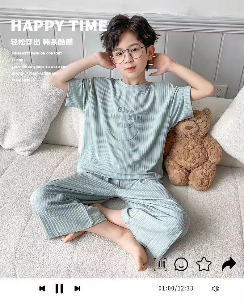 남아용 가정복 세트, 아동용 잠옷, 여름 얇은 의류, 2025년 신생아, 중대형 아동용 에어컨 의류