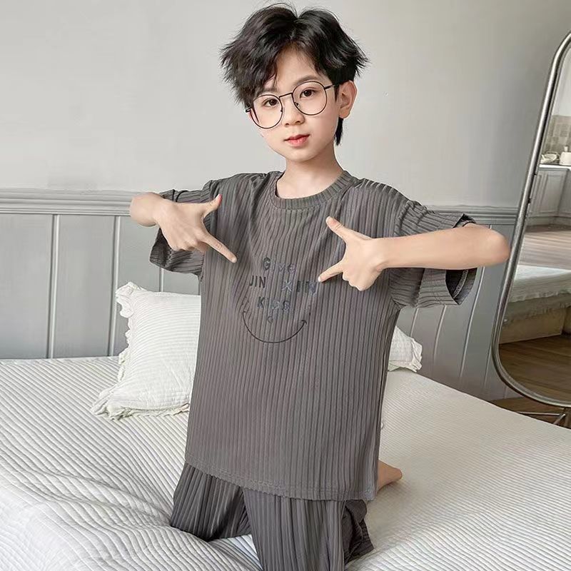 • 남아용 스마일리 얼음 실크 잠옷 8X5 세트 [그레이]