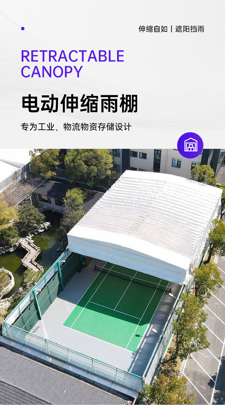 Foshan 농구장 및 테니스장 전기 천막 원격 제어 이동식 개폐식 이동식 슬라이딩 온실은 공장 창고로 사용할 수 있습니다.