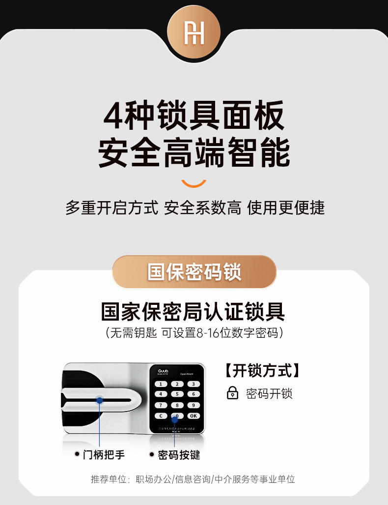 • 검정색 단일 섹션 국가 보안 지문 잠금 장치 [서랍 포함]