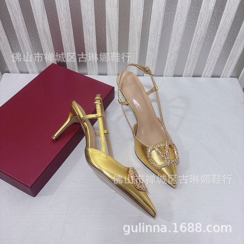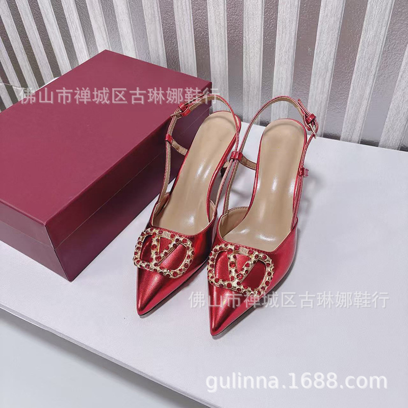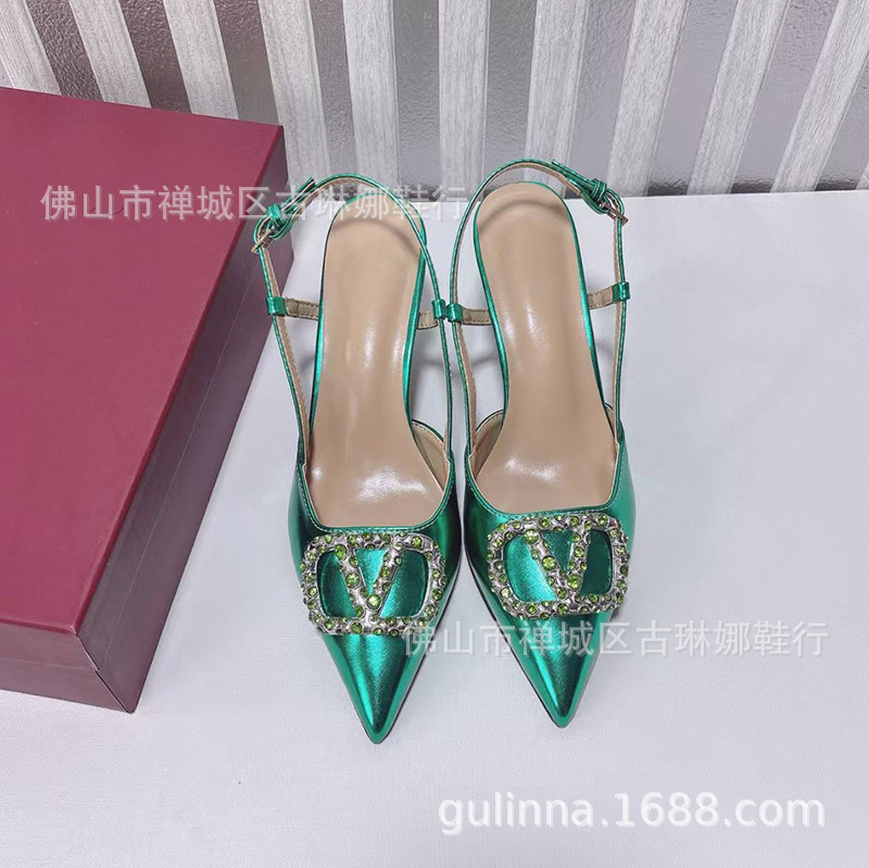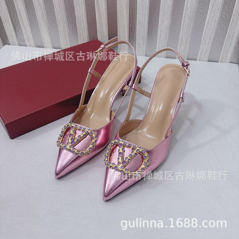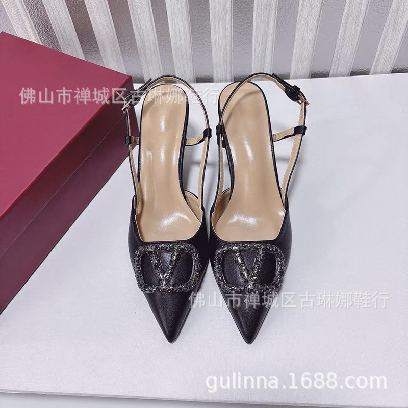 여성 샌들 2026 봄 여름 신상품 천연 가죽 앞코가 덮힌 뒷끈 하이힐 뾰족코 얇은 굽 워터다이아몬드 버클 얕은 입구의 싱글 슈즈스토어 가기