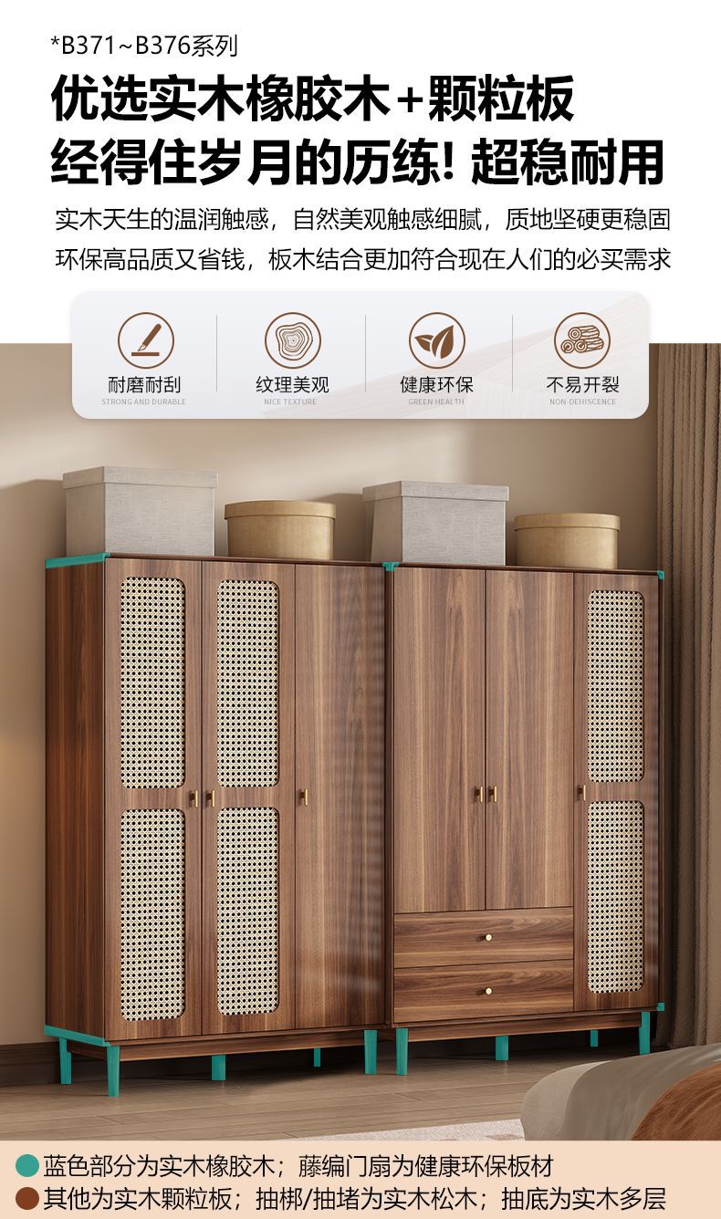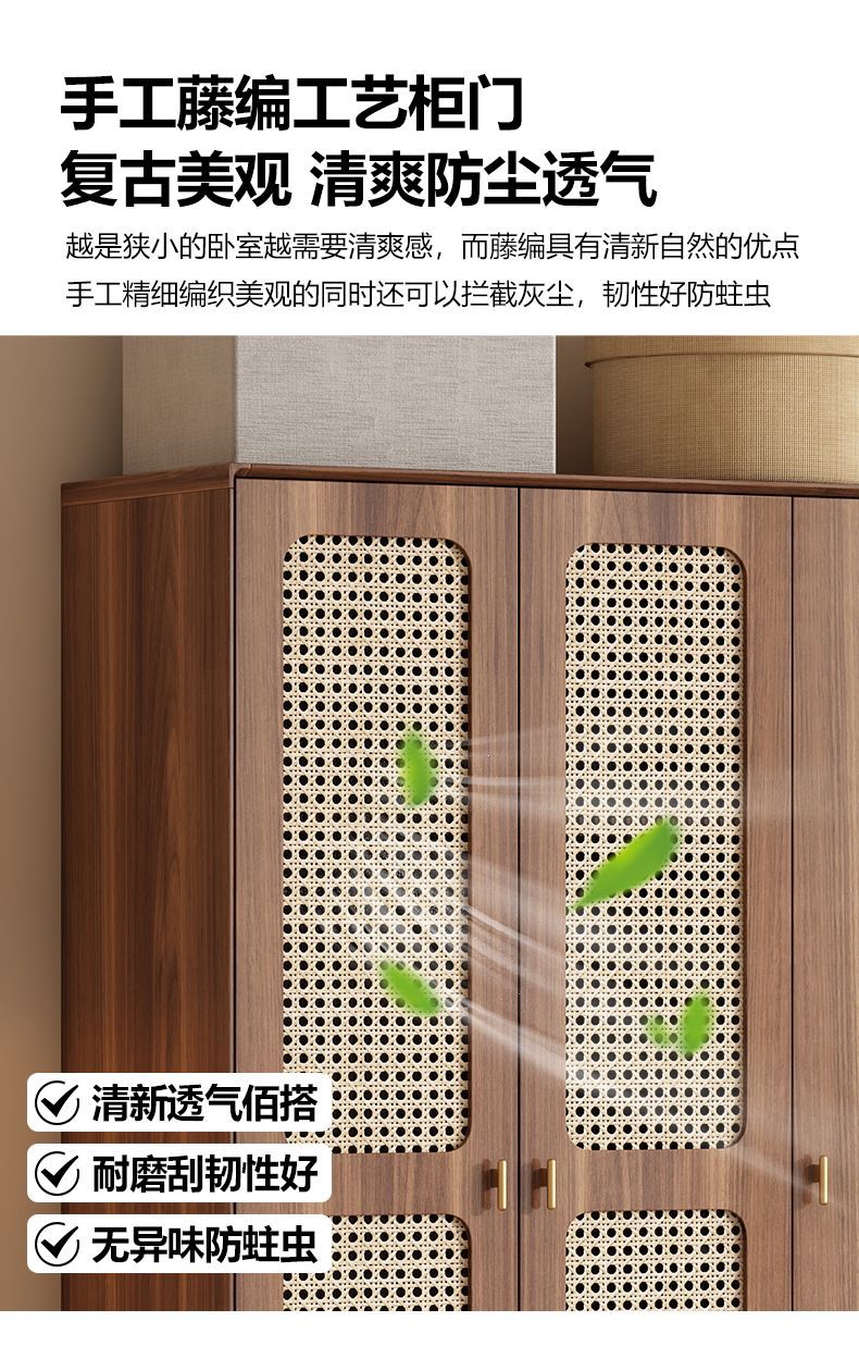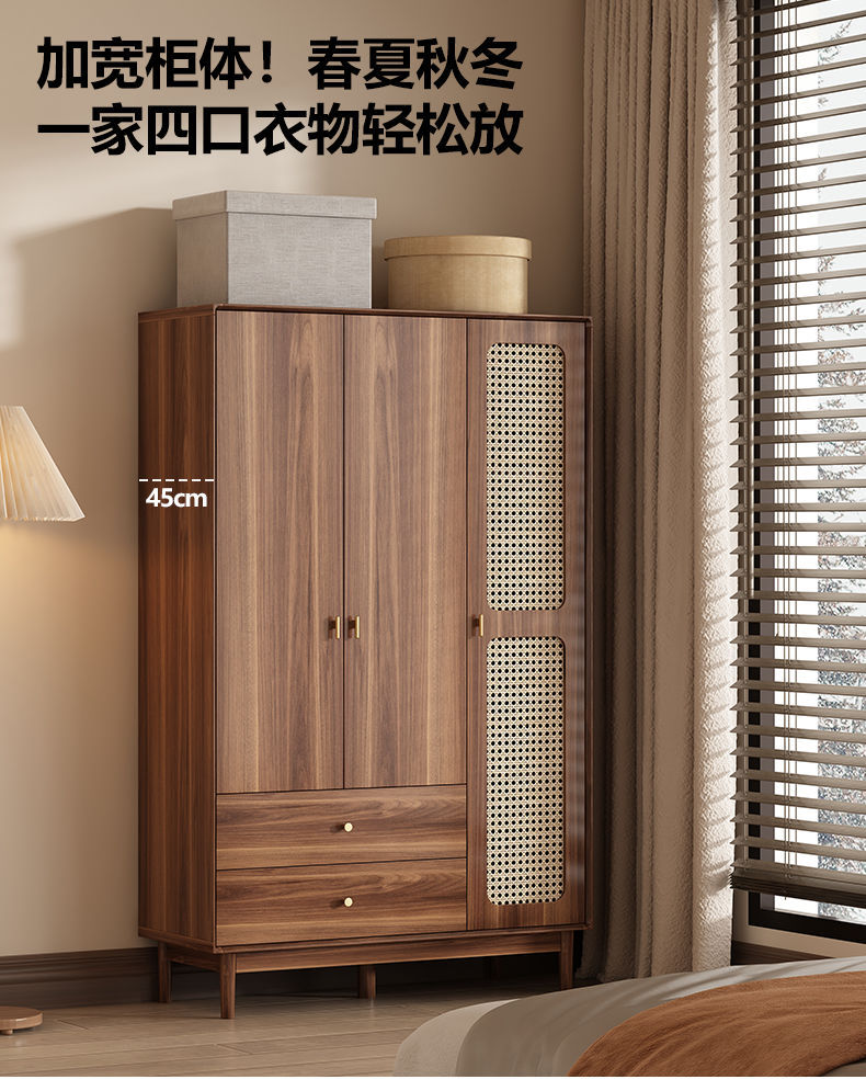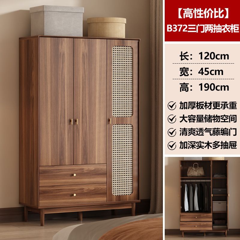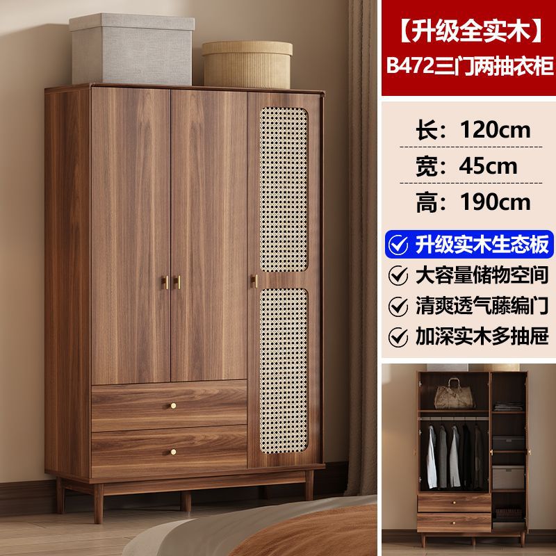 • [업그레이드된 원목] 등나무 3도어 2서랍 옷장 길이 120cm