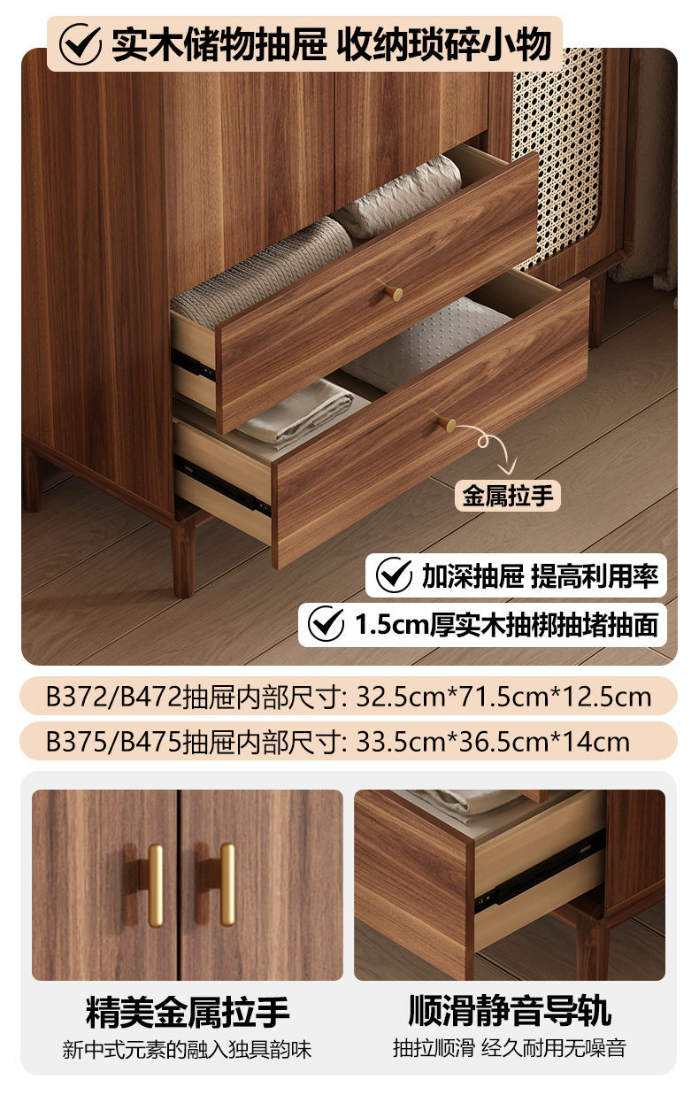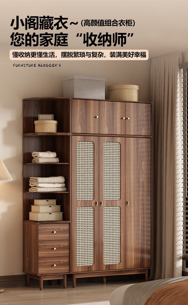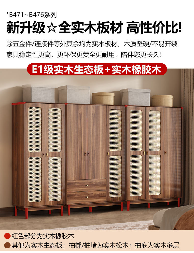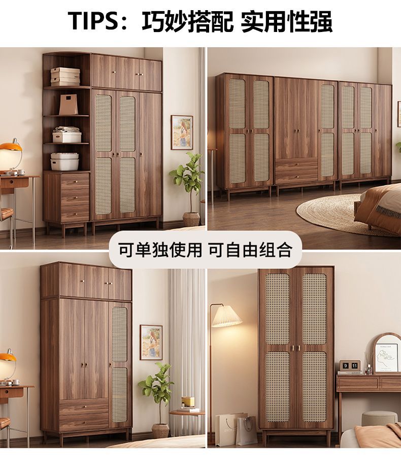 • [업그레이드된 원목] 등나무 3도어 2서랍 옷장 길이 120cm