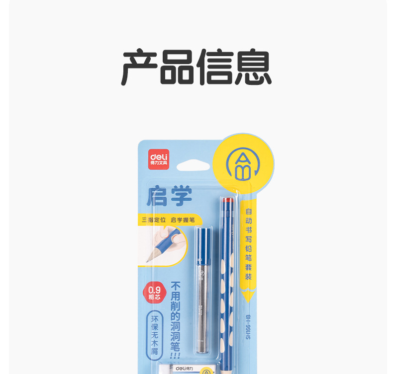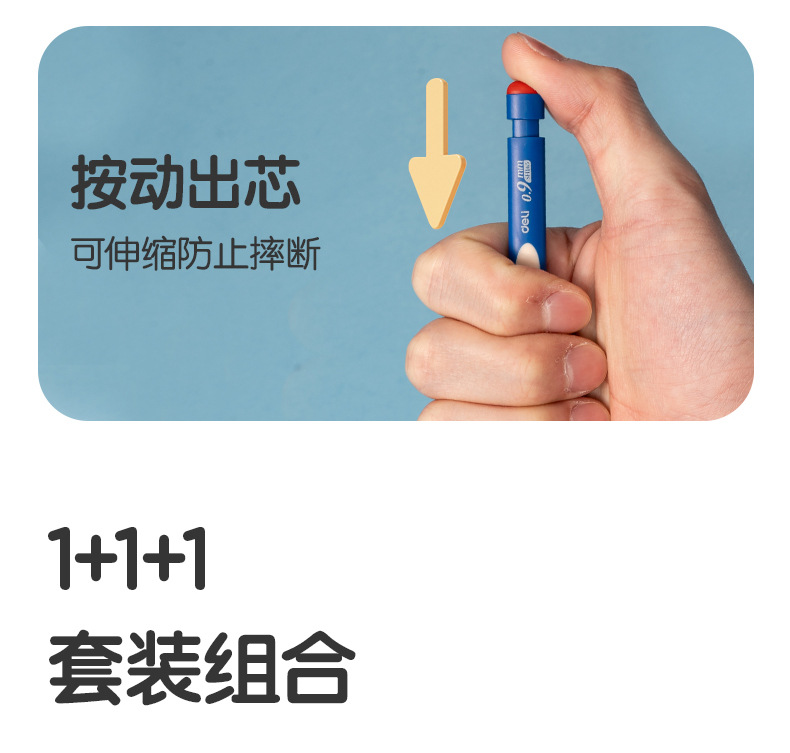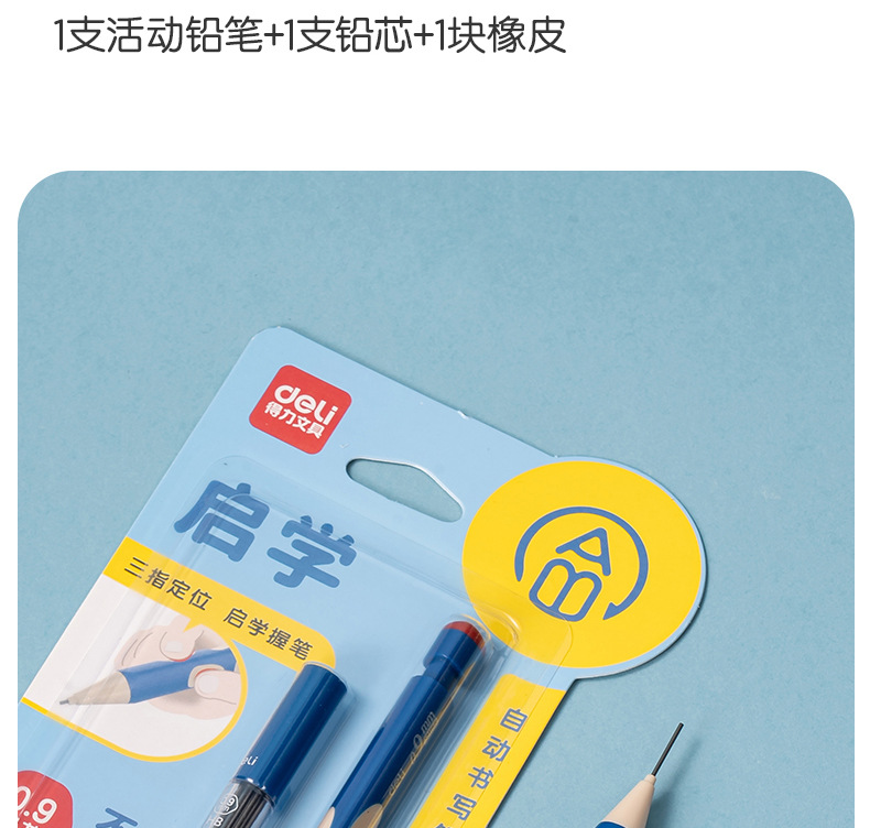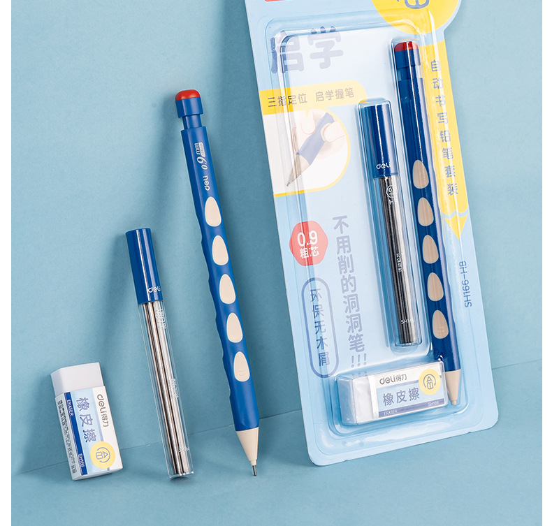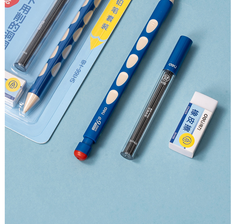 델리 SH166 Qixue 동동 자동 필기 연필 세트 HB0.9-90mm(블루)(세트)