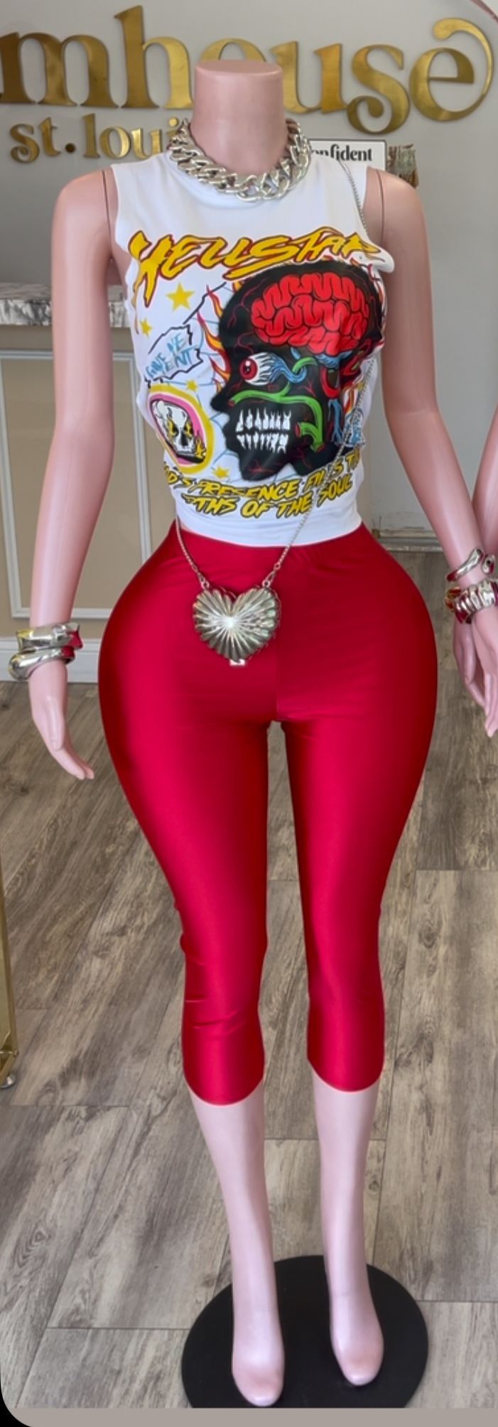 Y300704 만화 그래픽 티셔츠 호스 스크럽 고딕 오버사이즈 티셔츠 세트