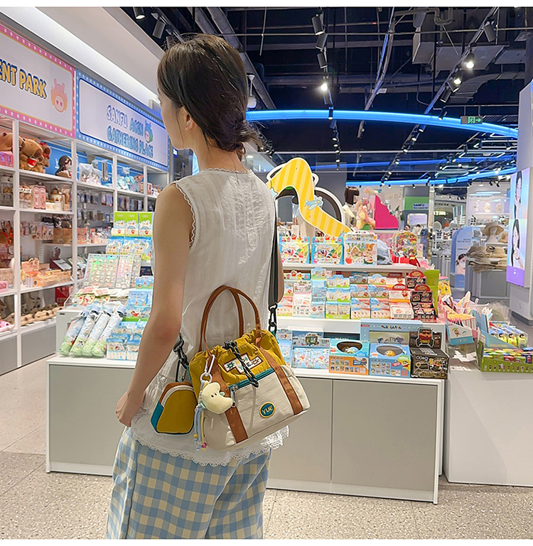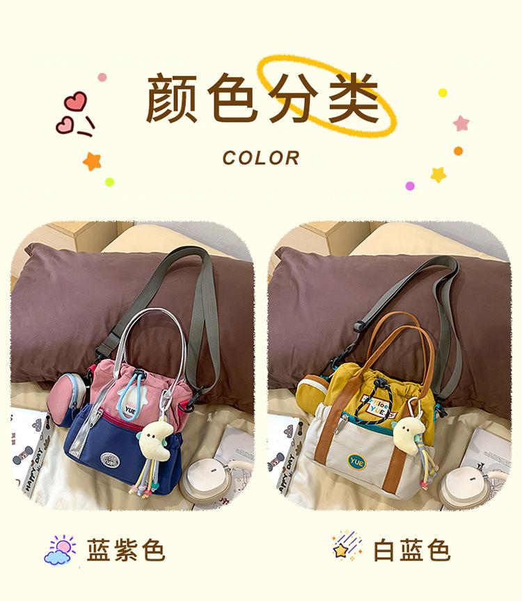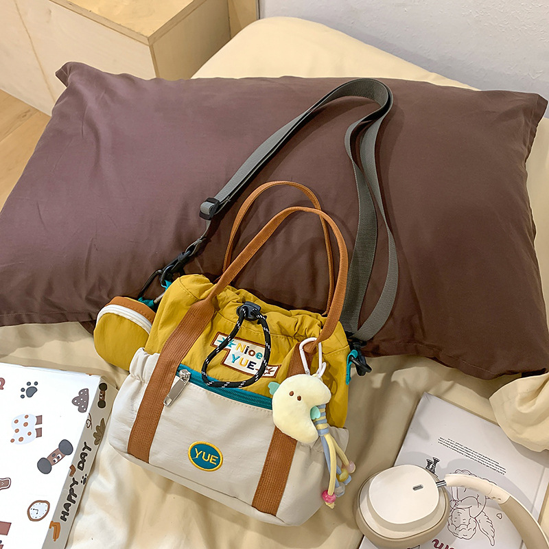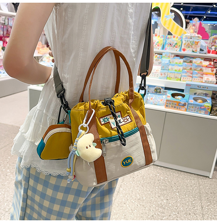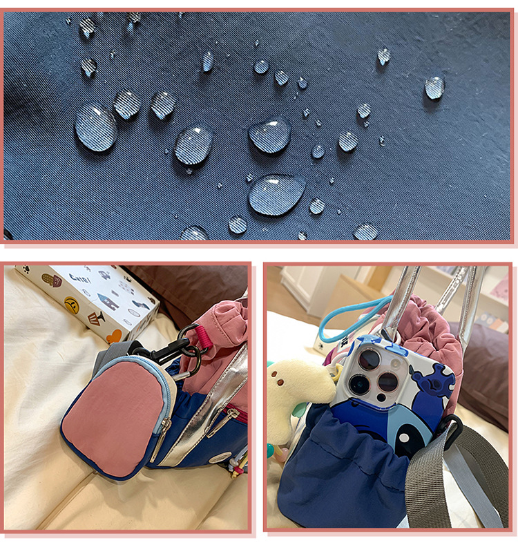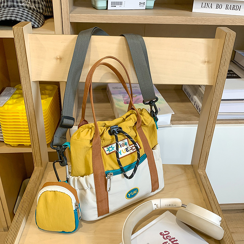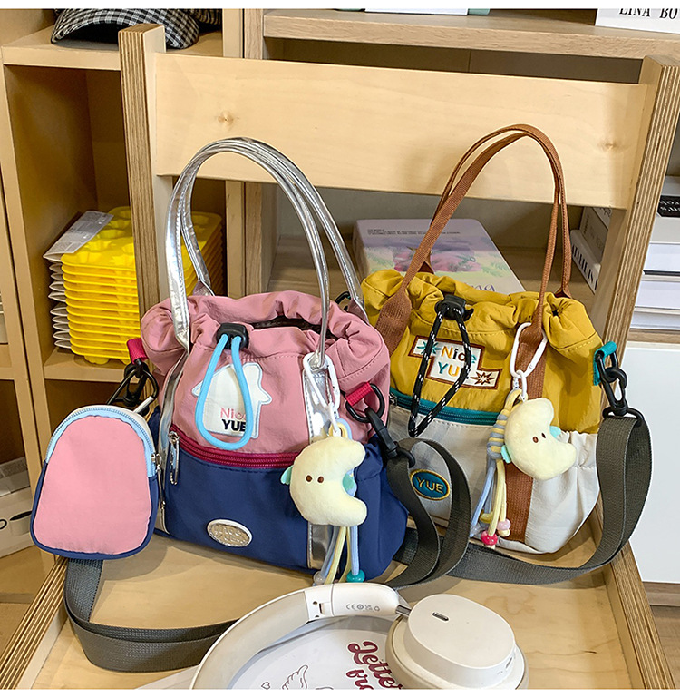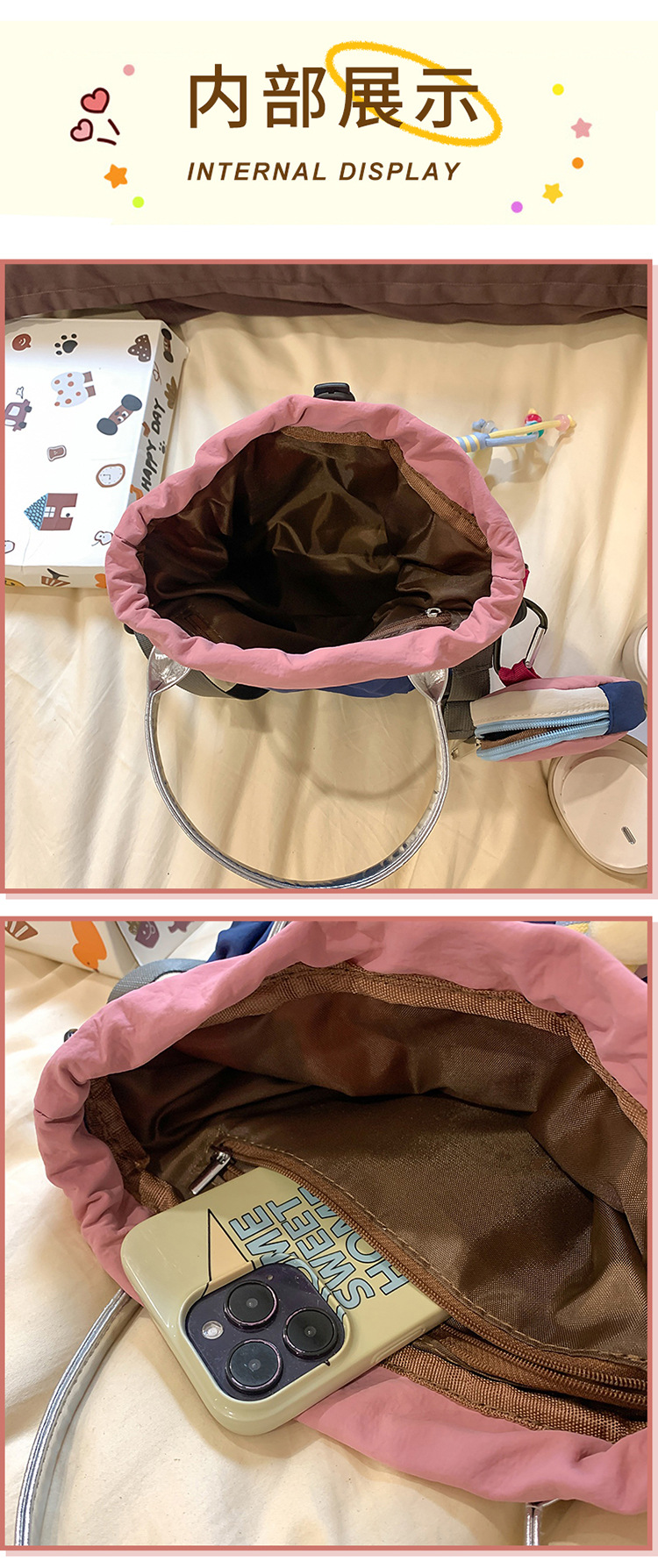 한국어 버전 ins 새로운 고급 틈새 복고풍 귀여운 대비 색상 접합 버킷 백 여성용 경량 드로스트링 크로스 바디 백스토어 가기