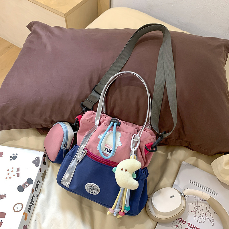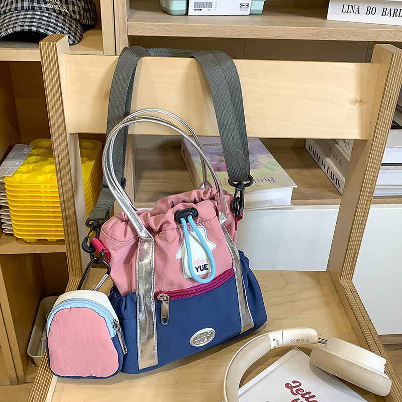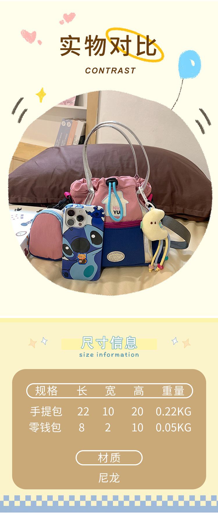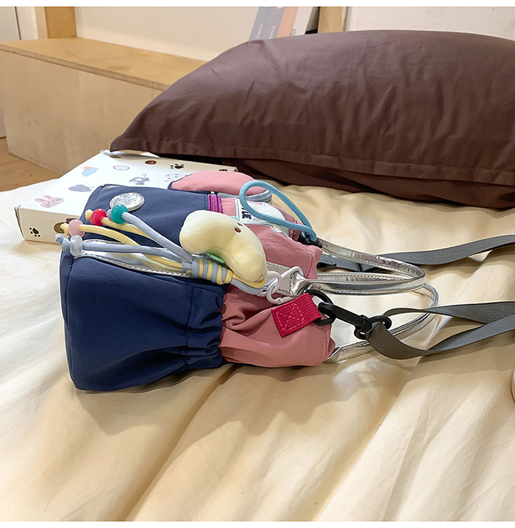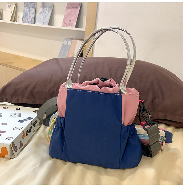 한국어 버전 ins 새로운 고급 틈새 복고풍 귀여운 대비 색상 접합 버킷 백 여성용 경량 드로스트링 크로스 바디 백