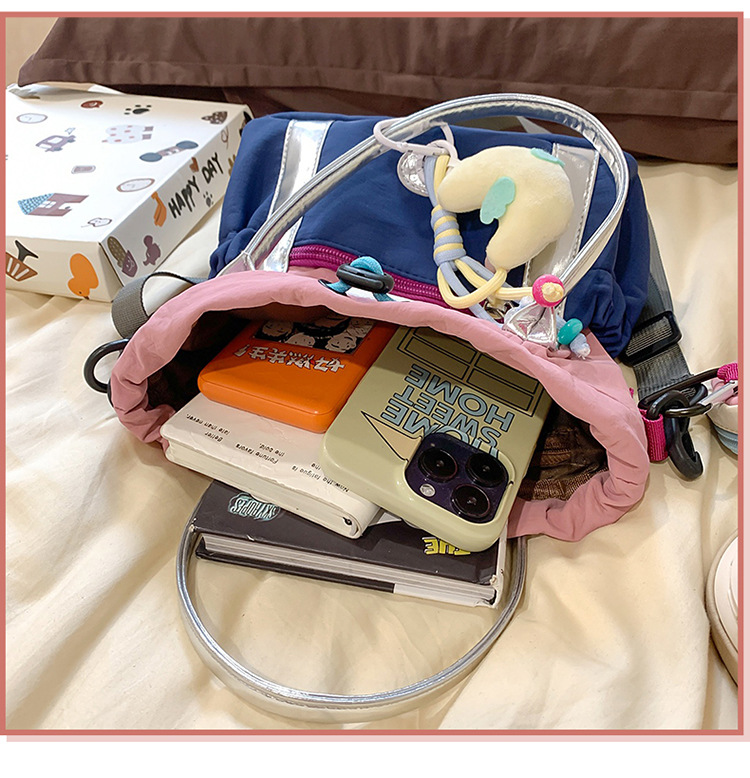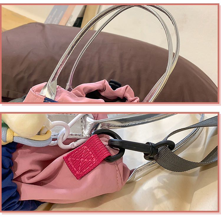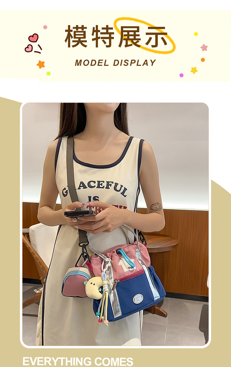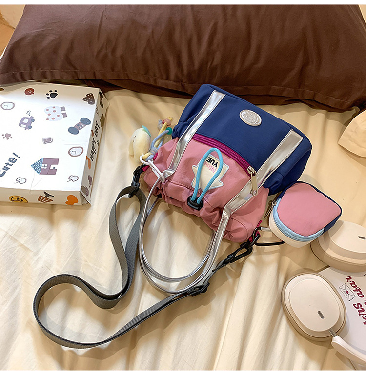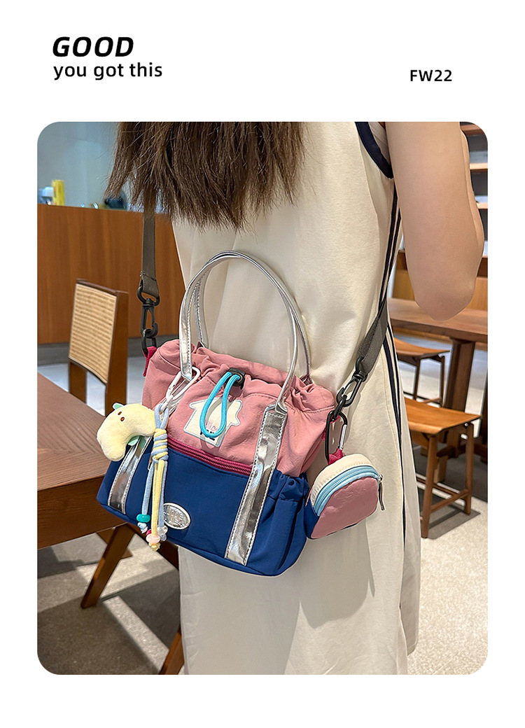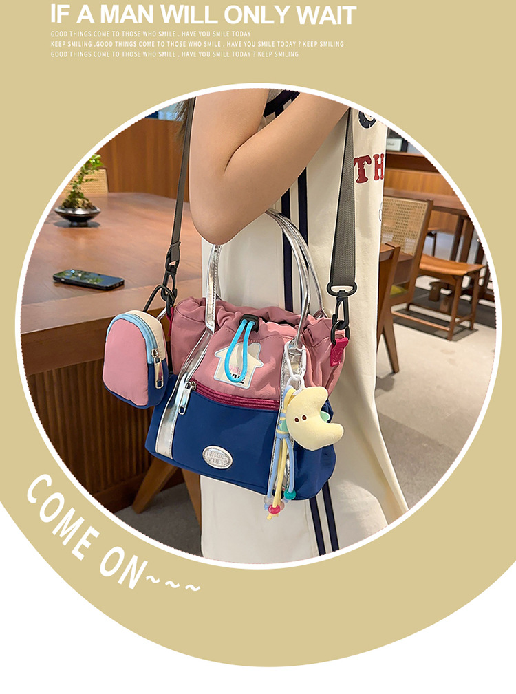 한국어 버전 ins 새로운 고급 틈새 복고풍 귀여운 대비 색상 접합 버킷 백 여성용 경량 드로스트링 크로스 바디 백