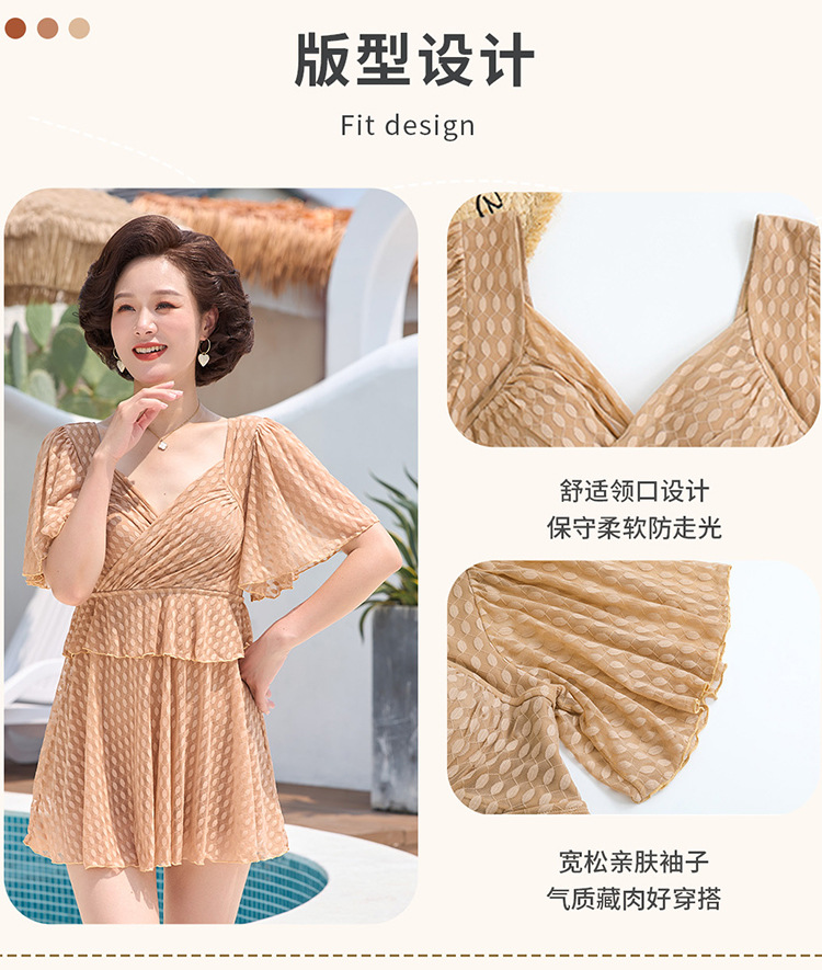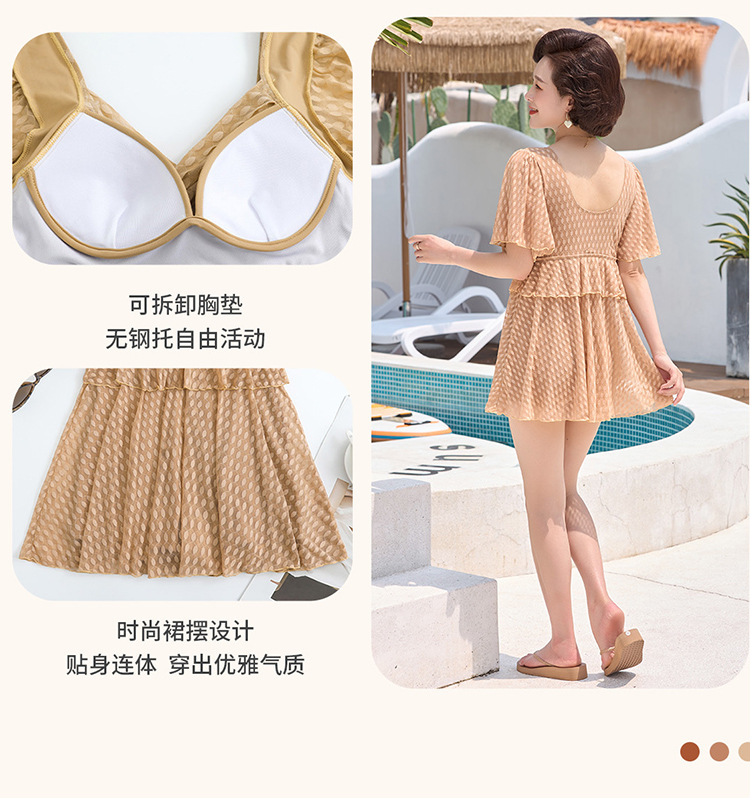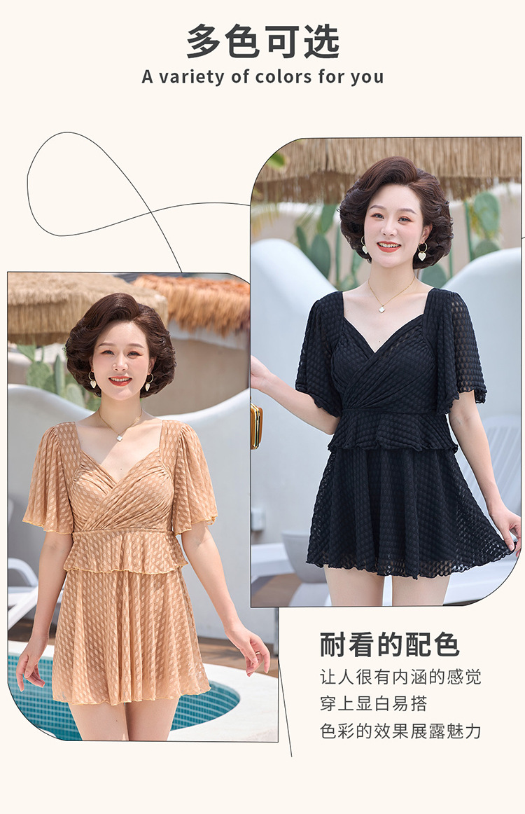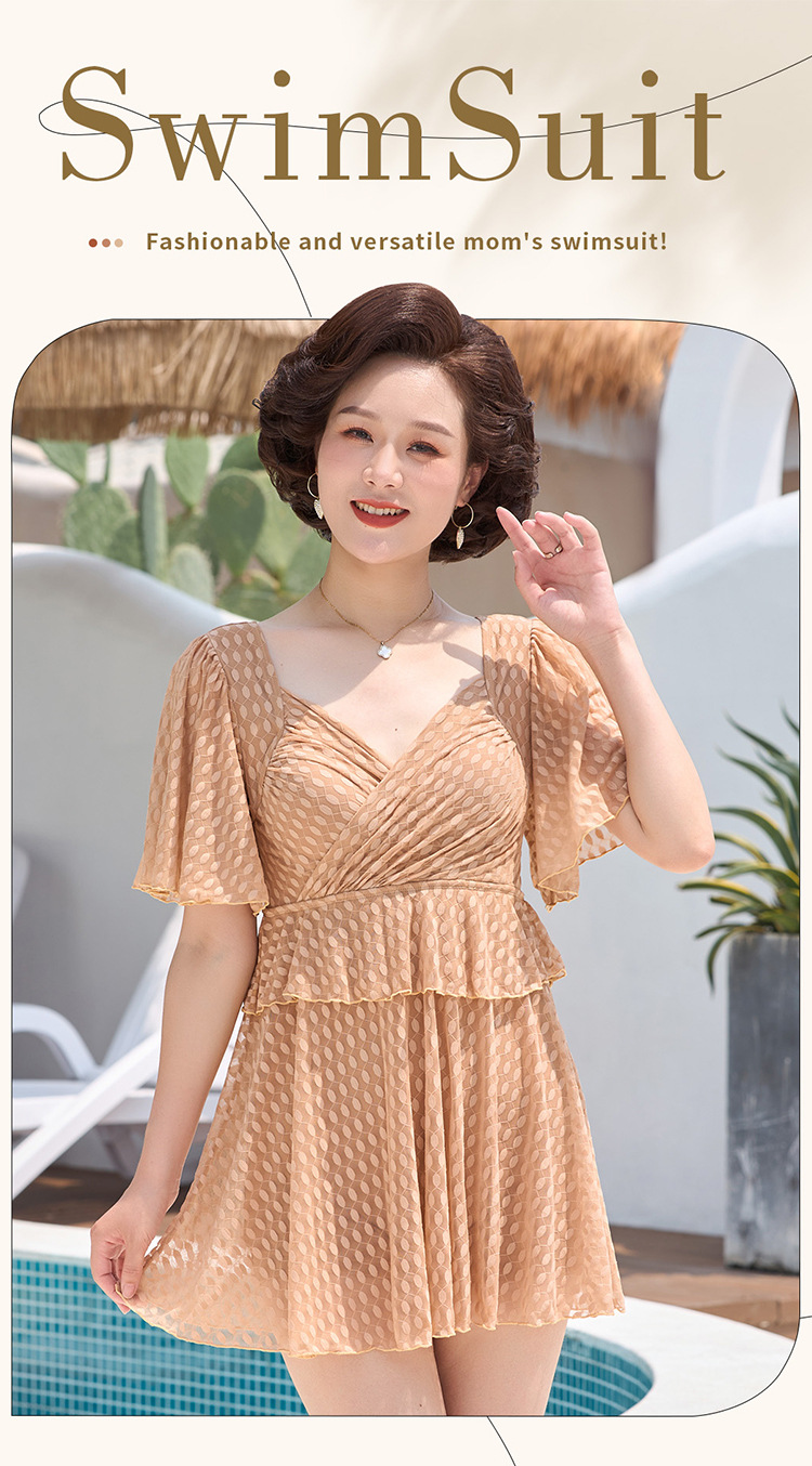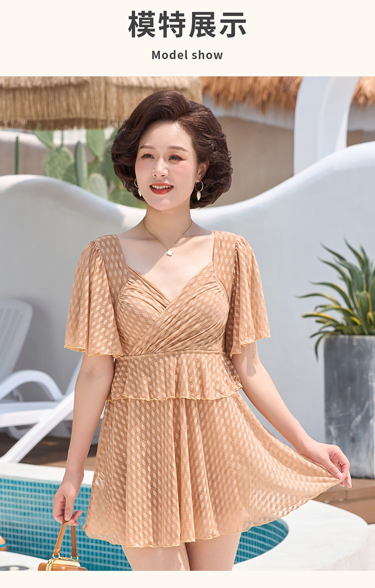 2025 엄마 스타일 반팔 배 커버 스커트 원피스 수영복 여성 엄마 스타일 뚱뚱한 100kg 가슴 패드가있는 복서 팬티스토어 가기