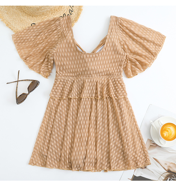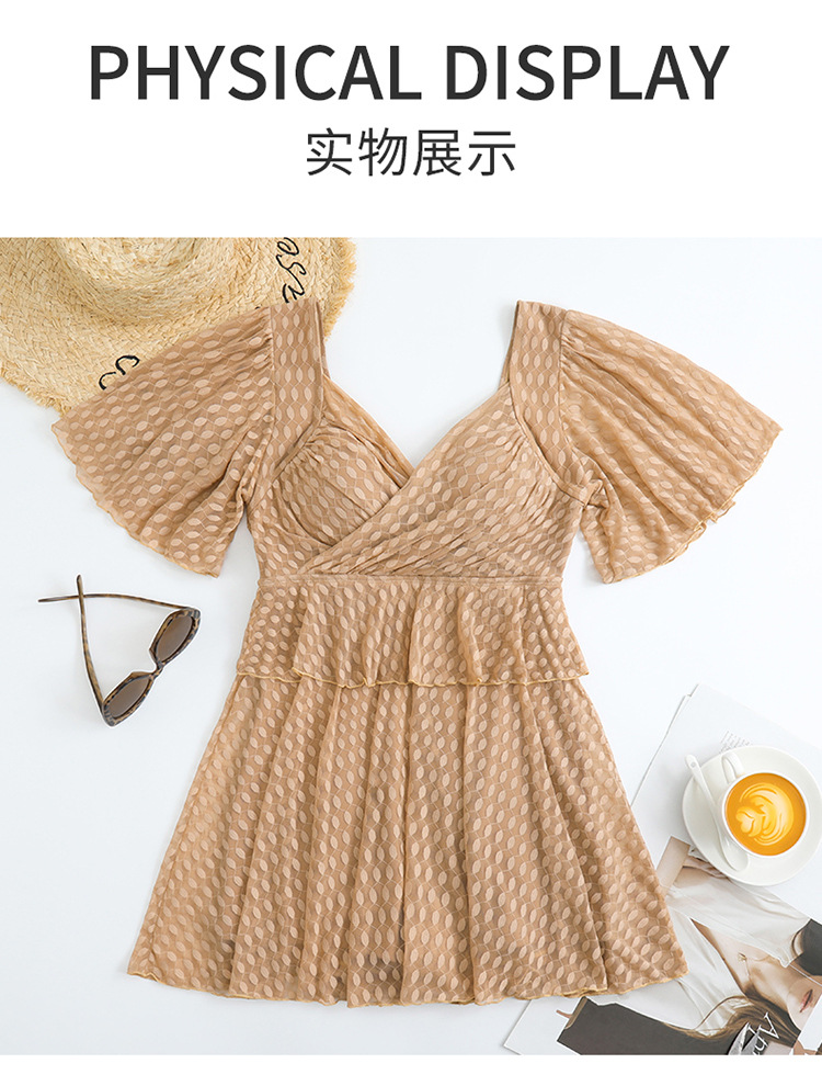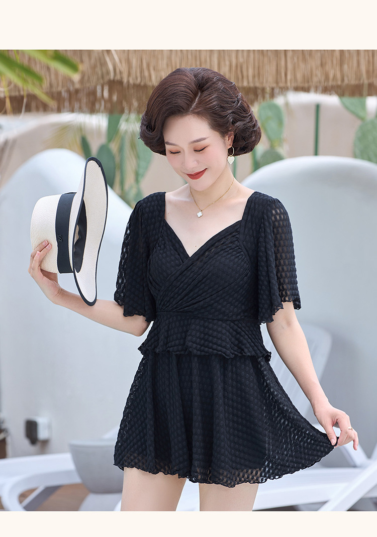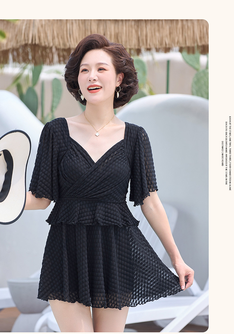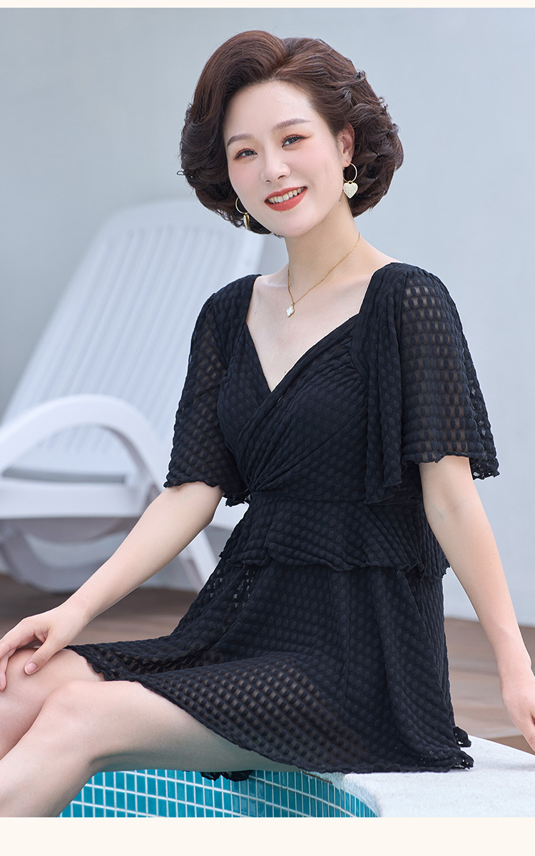 2025 엄마 스타일 반팔 배 커버 스커트 원피스 수영복 여성 엄마 스타일 뚱뚱한 100kg 가슴 패드가있는 복서 팬티스토어 가기