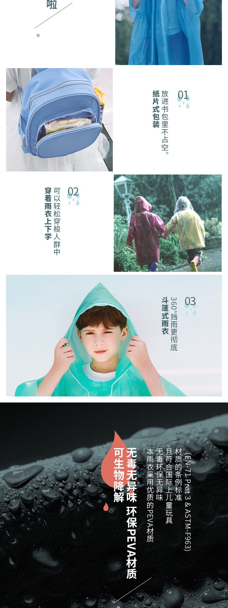 어린이 일회용 비옷 여행 전신 휴대용 학생 소녀 소년 초등학생 두꺼운 비옷을 배낭으로 캐리할 수 있습니다.