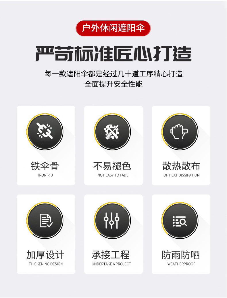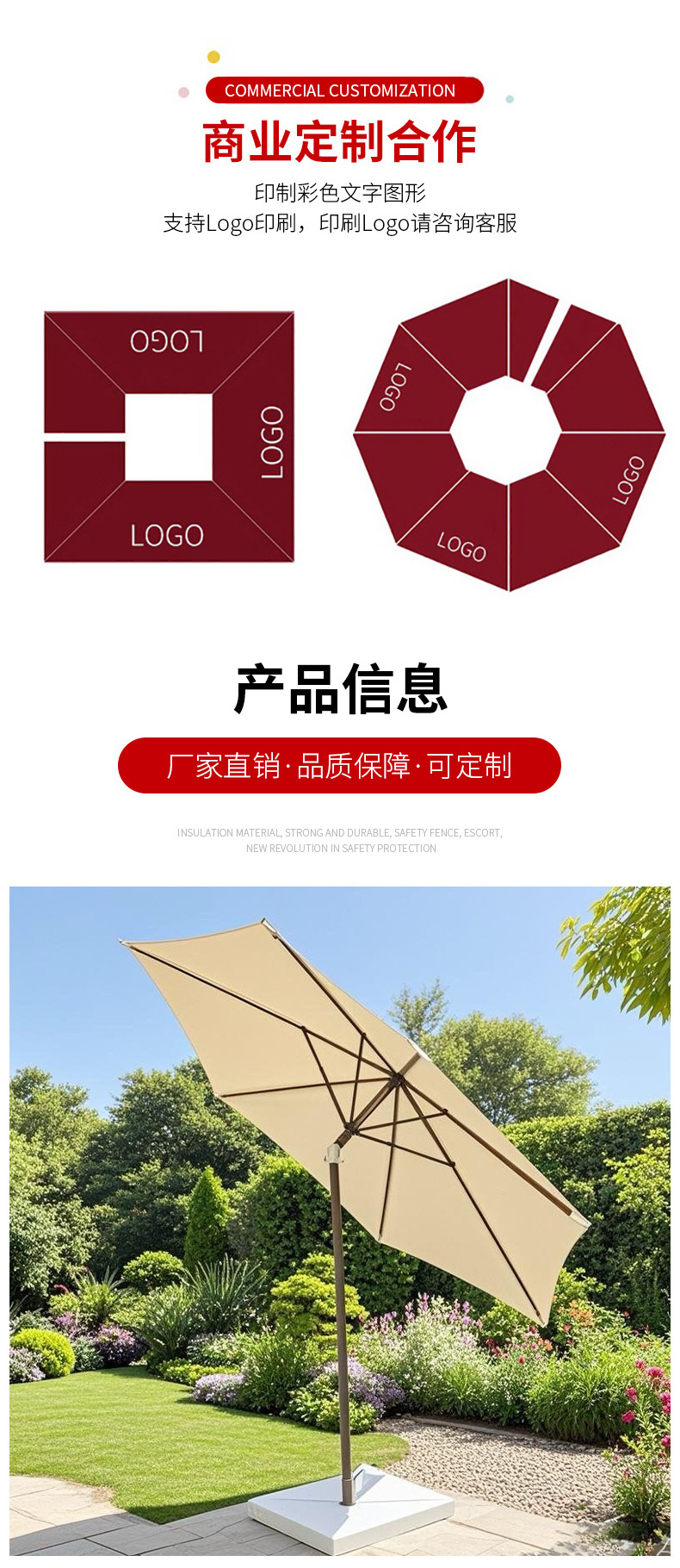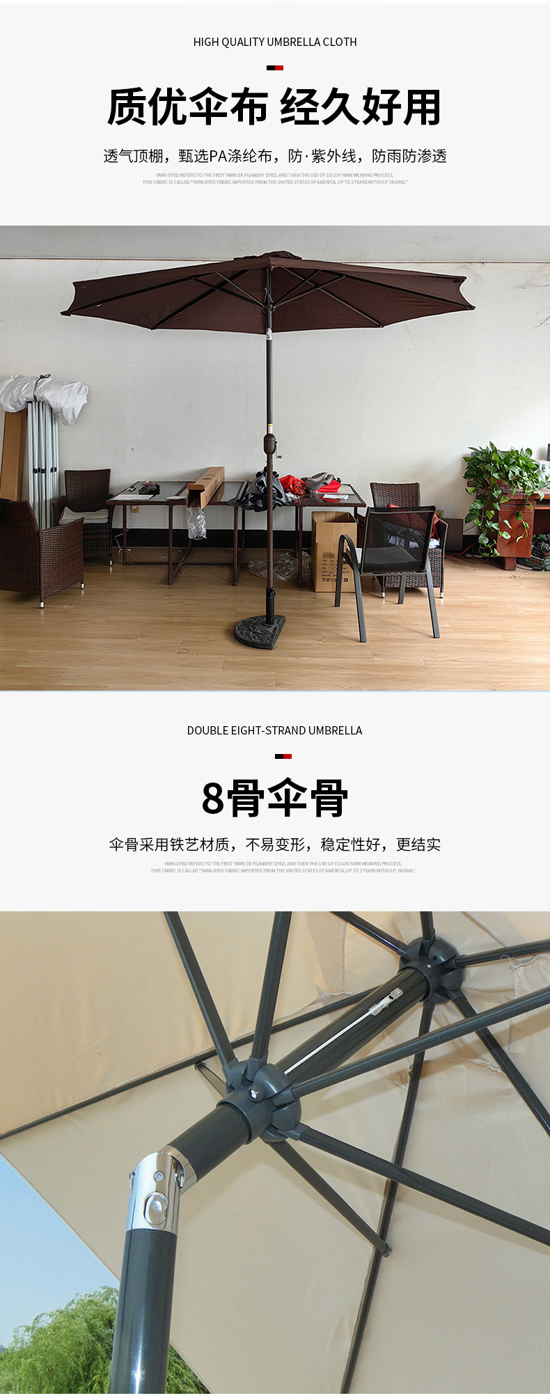 야외용 차양 중간 기둥 우산, 발코니 정원 안뜰 파라솔, 흔들리는 머리가 있는 8본, 대형 스톨, 전체 철제 중간 기둥 우산스토어 가기