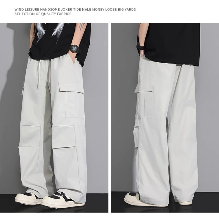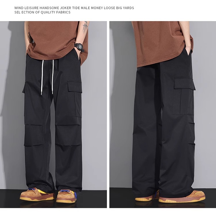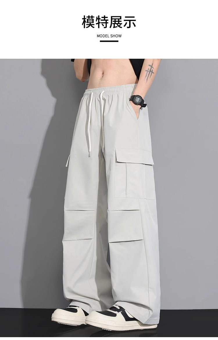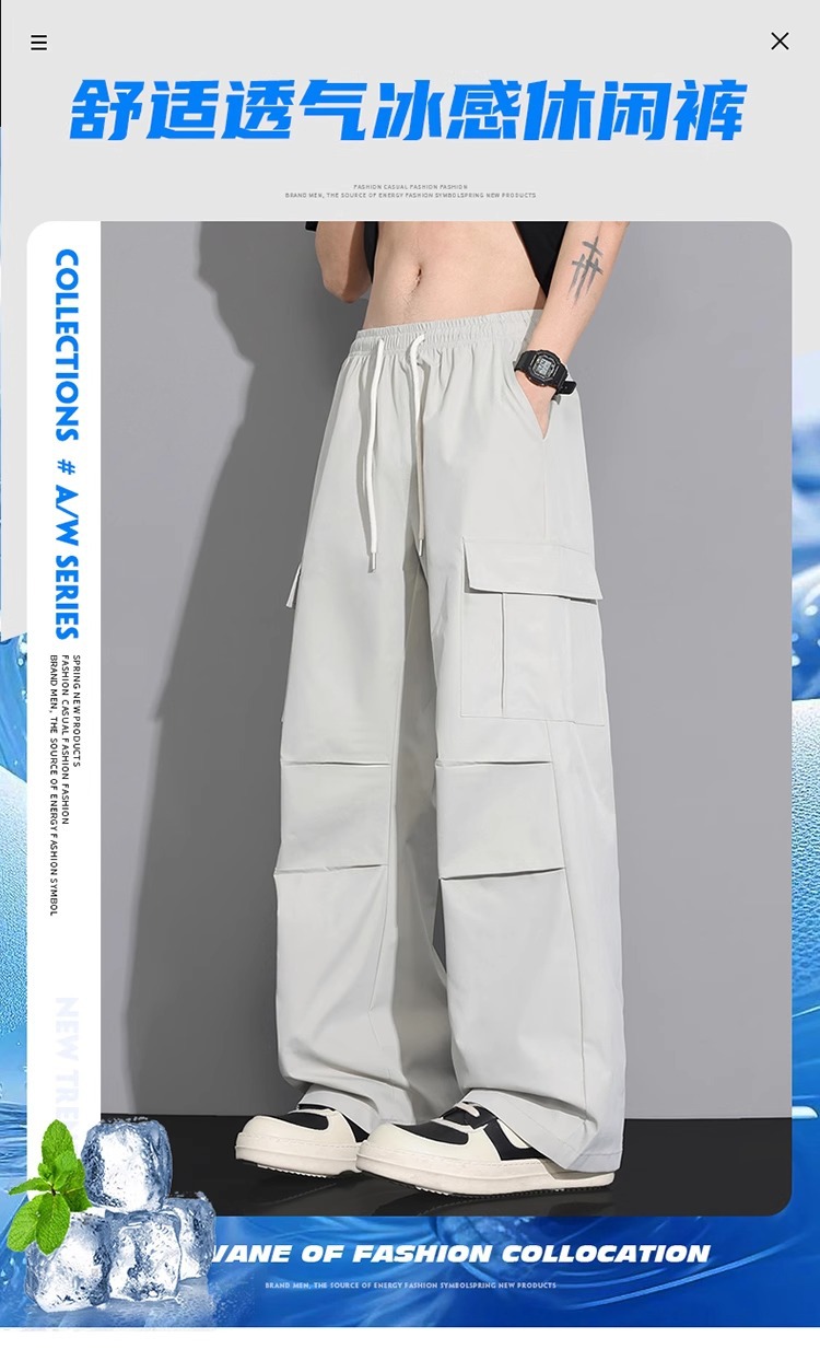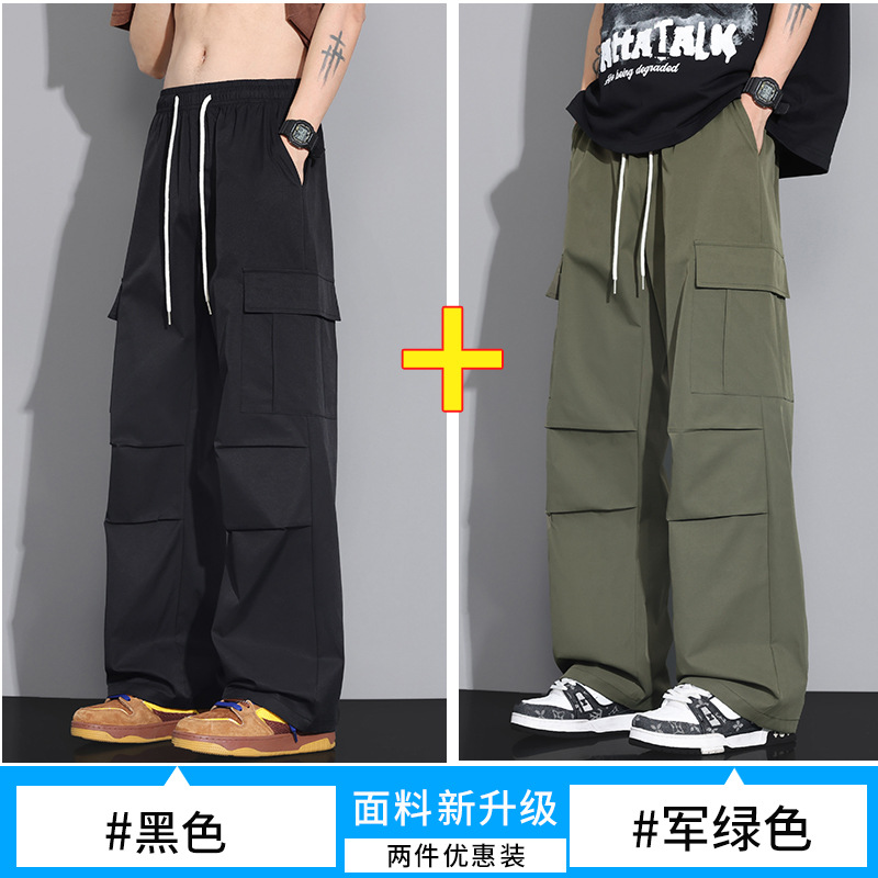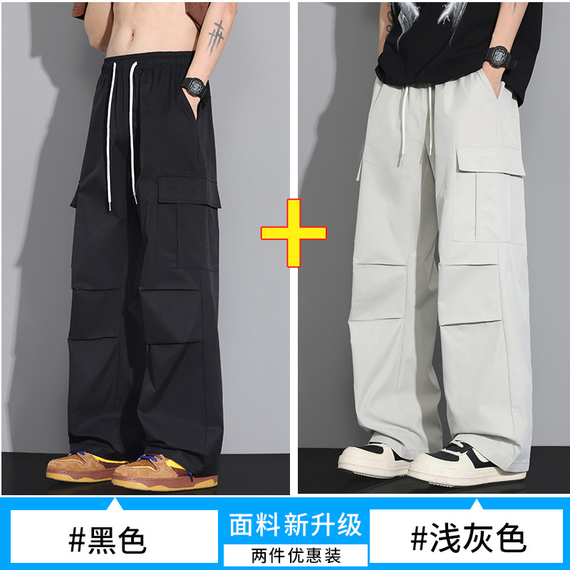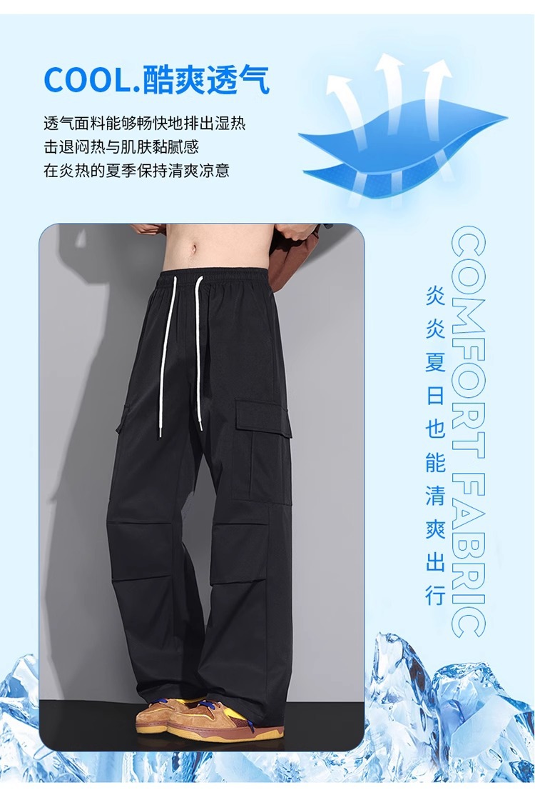 NASA 블랙 아메리칸 캐주얼 바지 남성 여름 얇은 트렌디 브랜드 루즈 스트레이트 와이드 레그 등산 아이스 실크 롱 팬츠