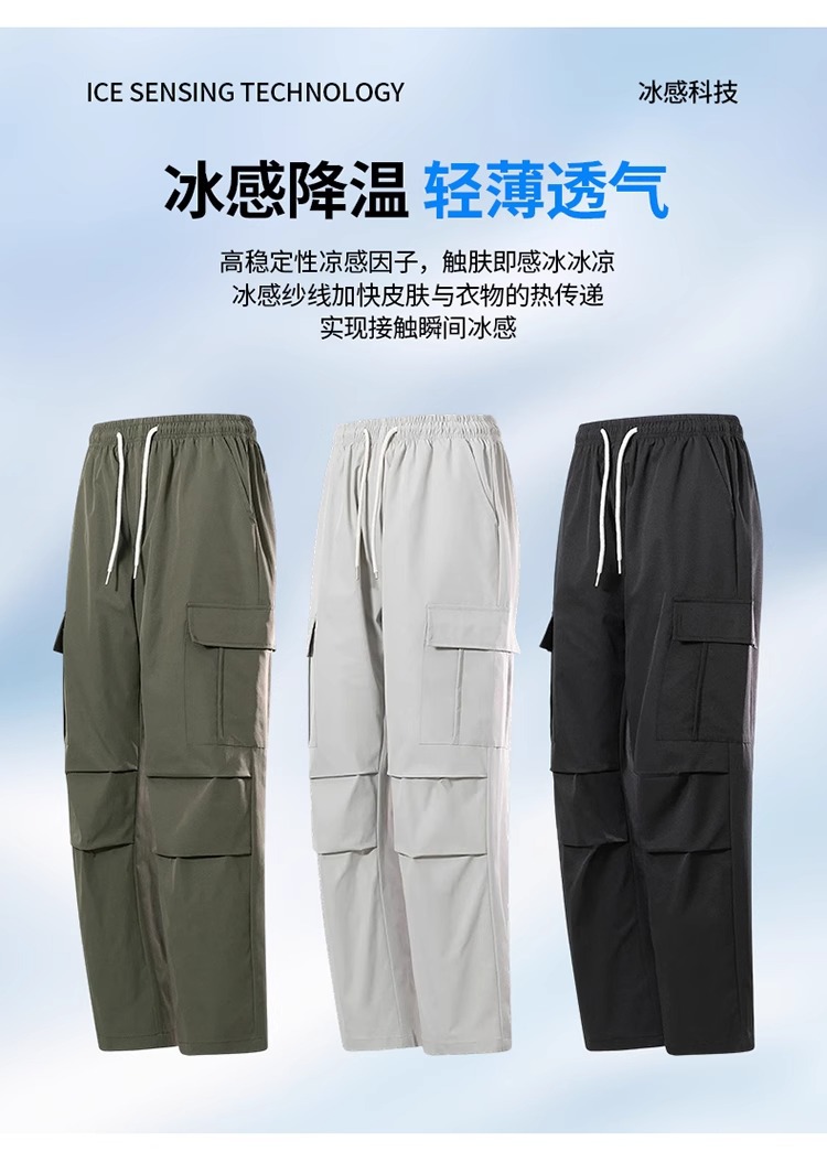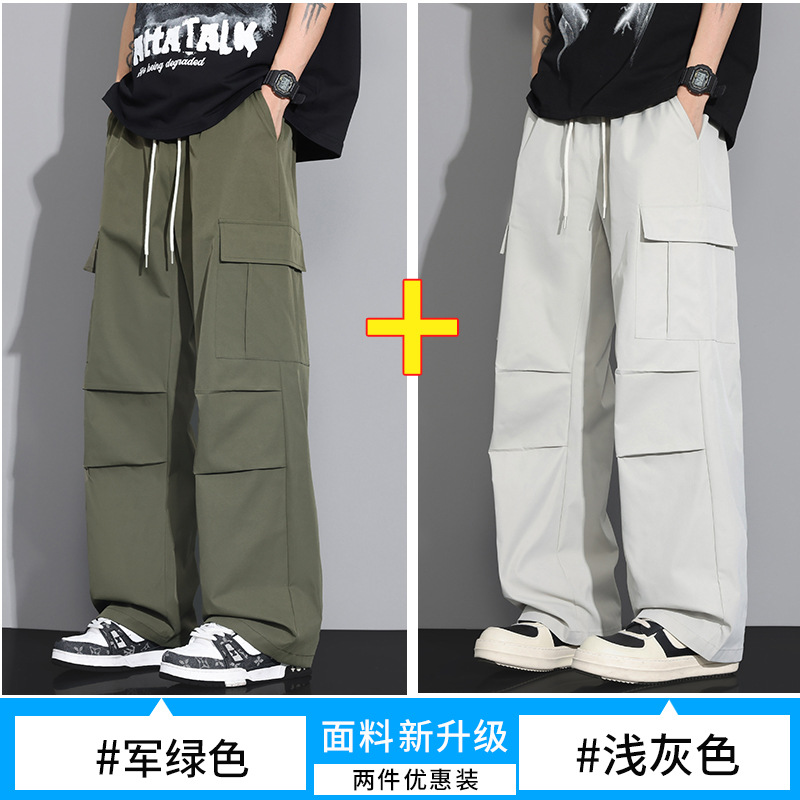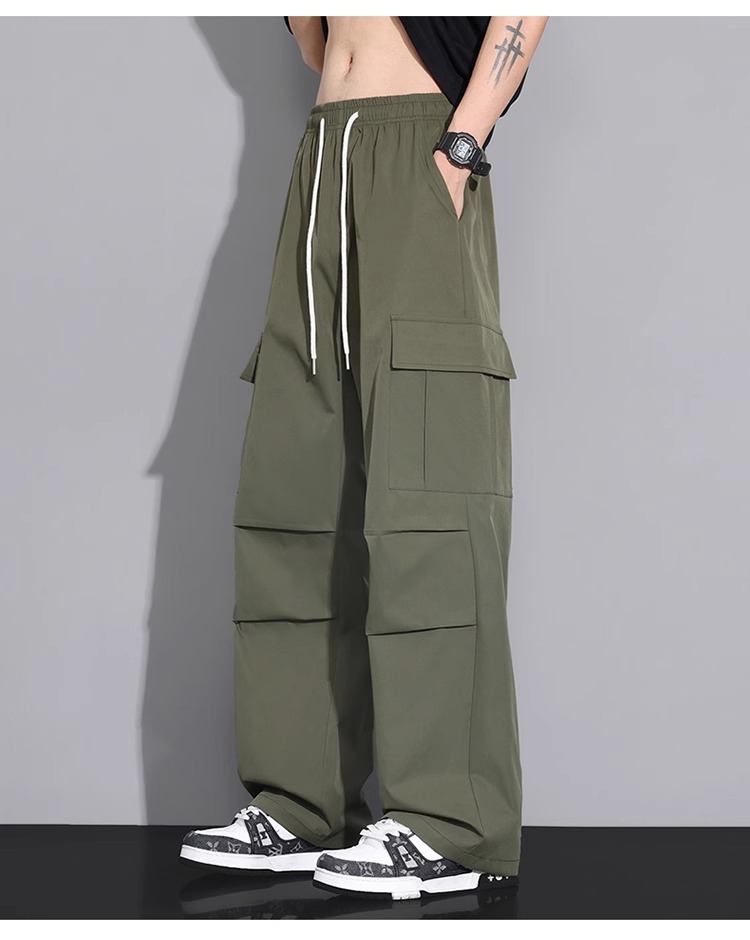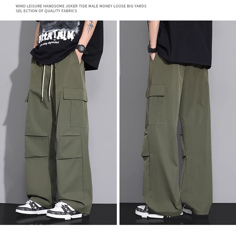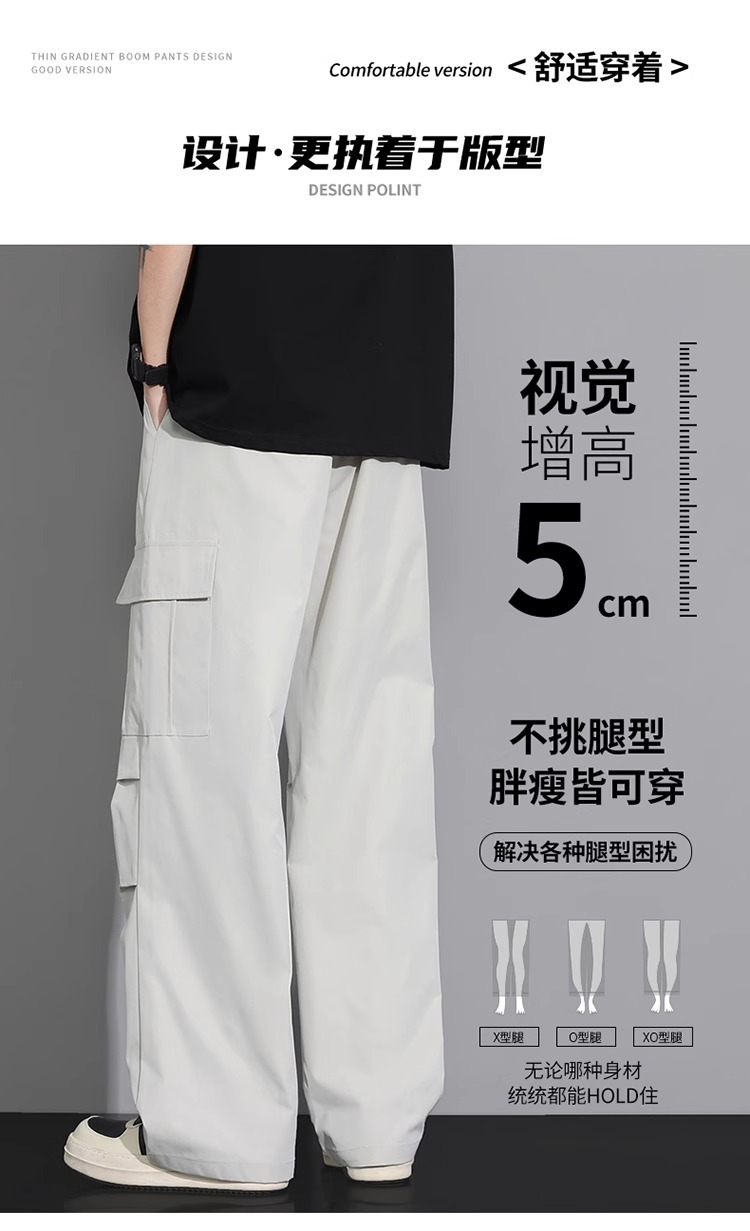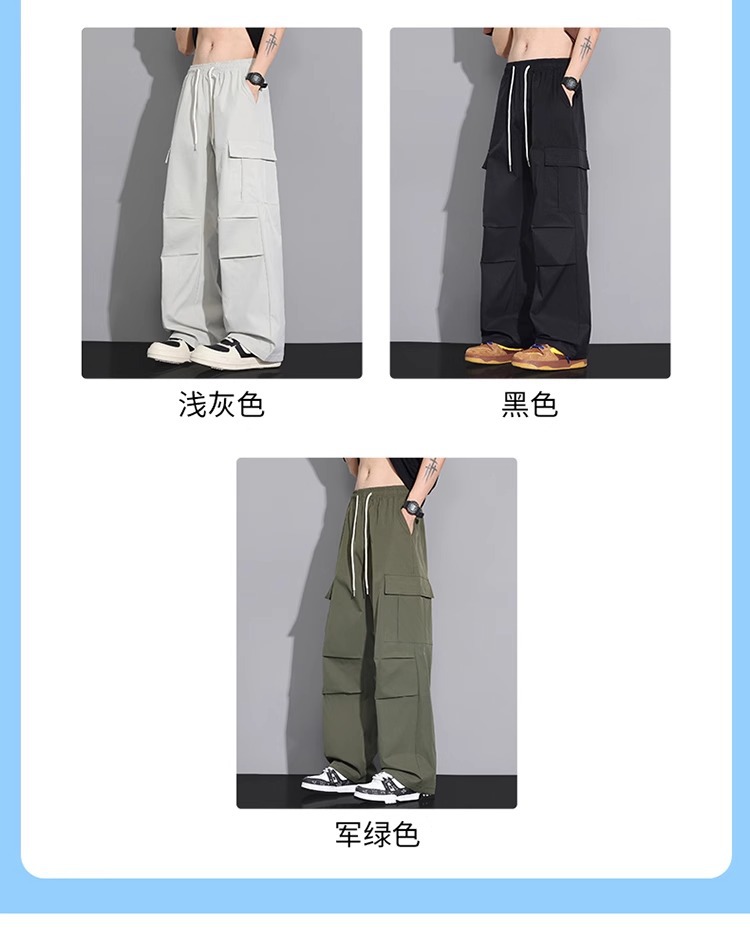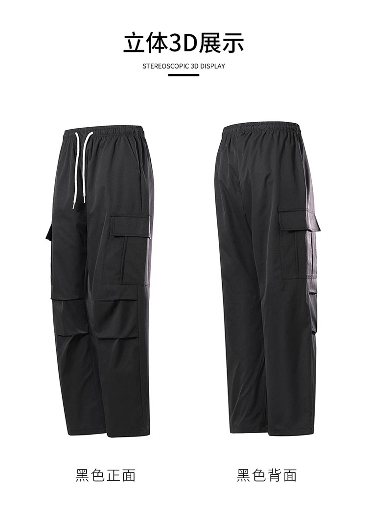 NASA 블랙 아메리칸 캐주얼 바지 남성 여름 얇은 트렌디 브랜드 루즈 스트레이트 와이드 레그 등산 아이스 실크 롱 팬츠