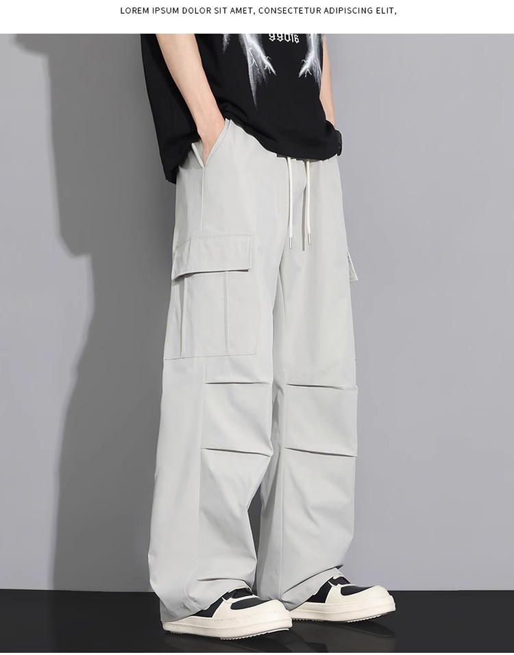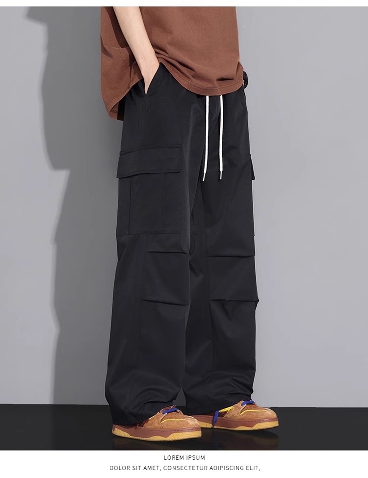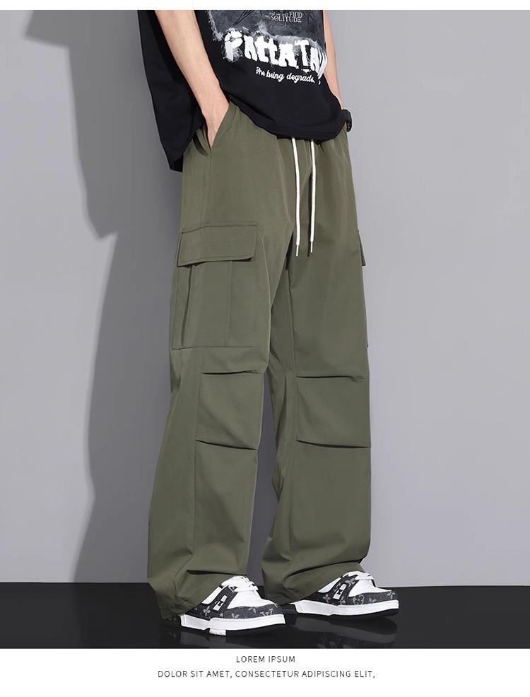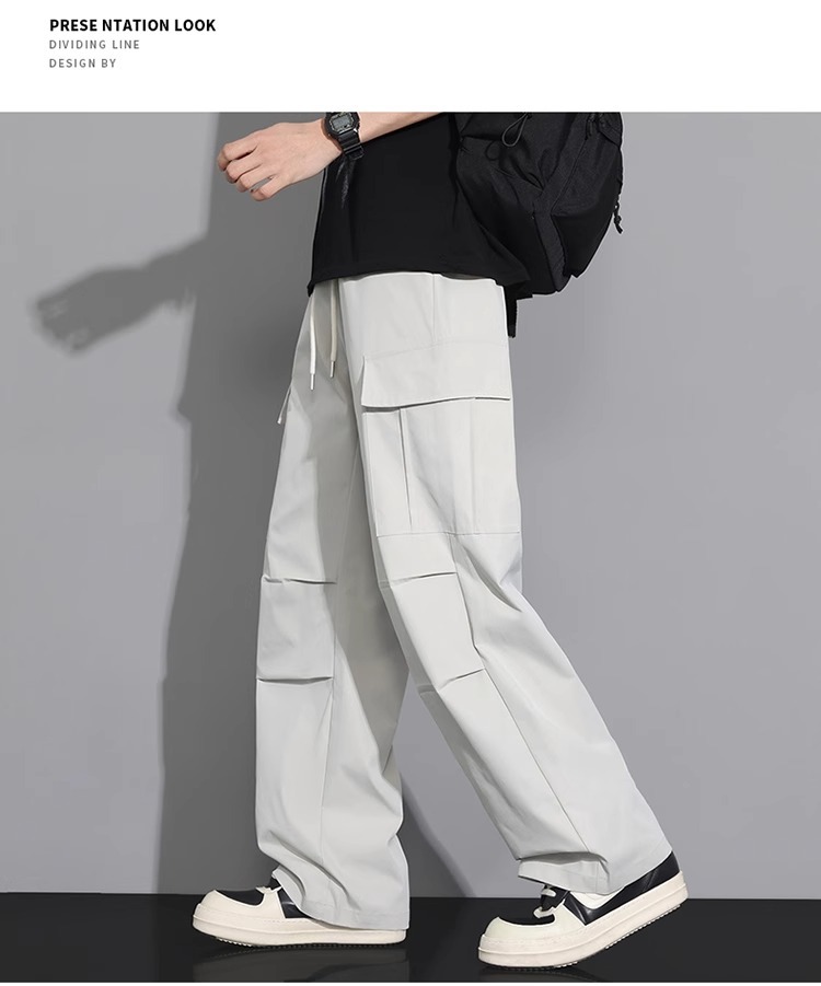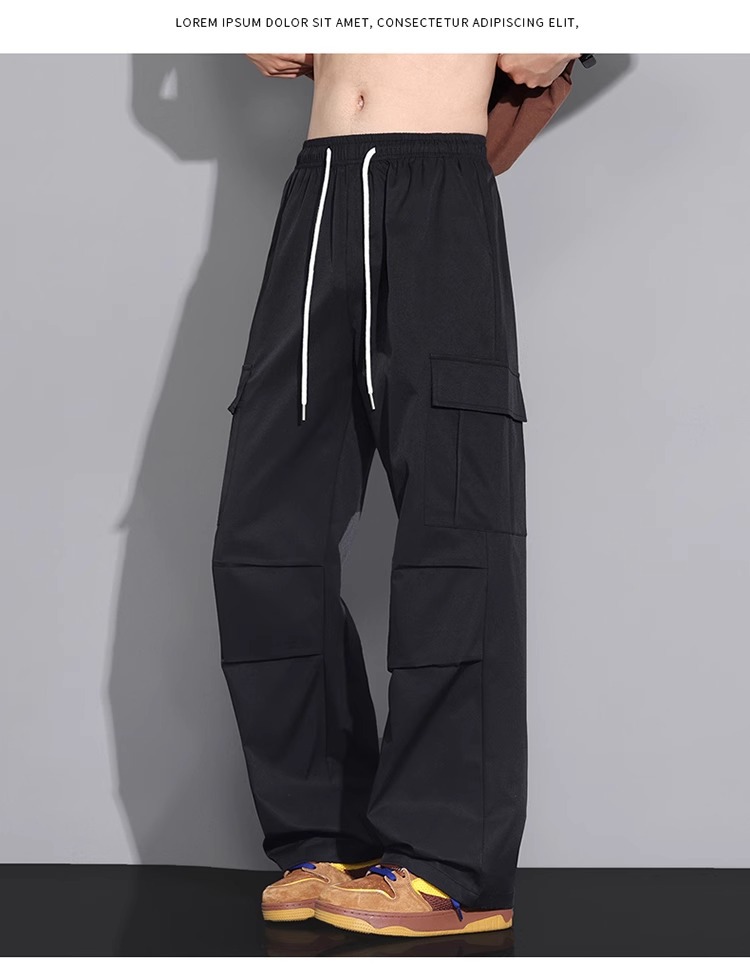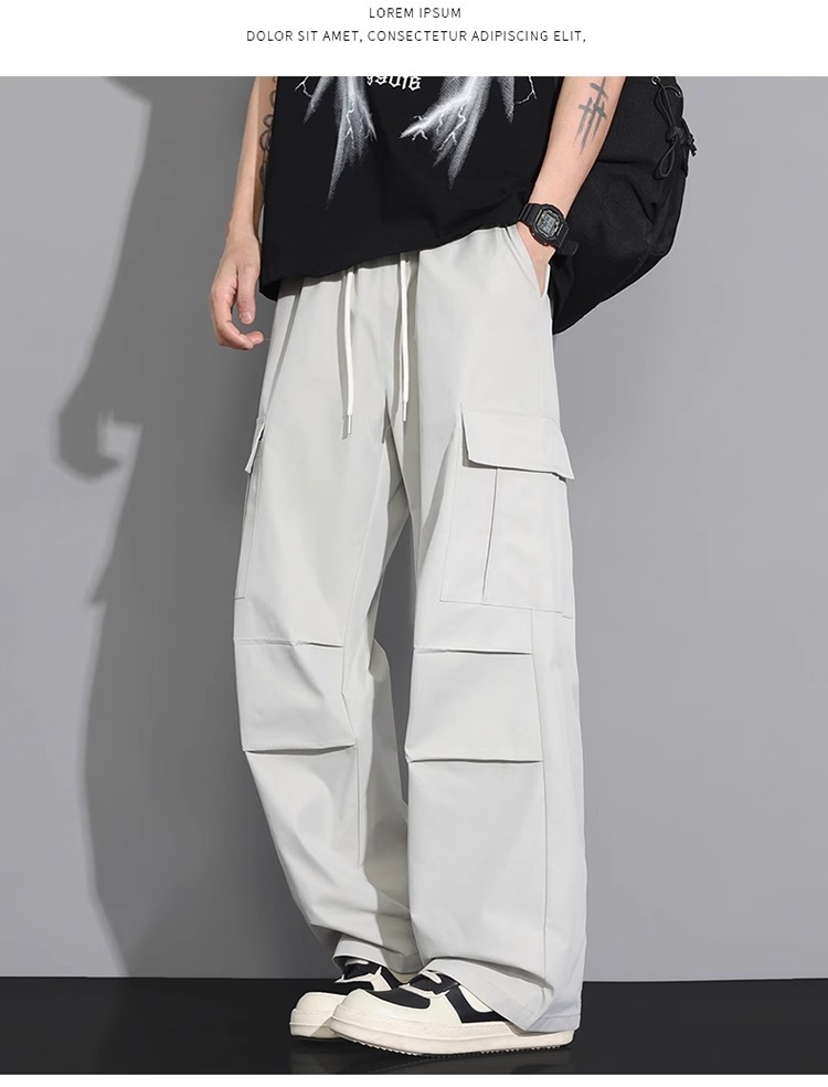 NASA 블랙 아메리칸 캐주얼 바지 남성 여름 얇은 트렌디 브랜드 루즈 스트레이트 와이드 레그 등산 아이스 실크 롱 팬츠스토어 가기