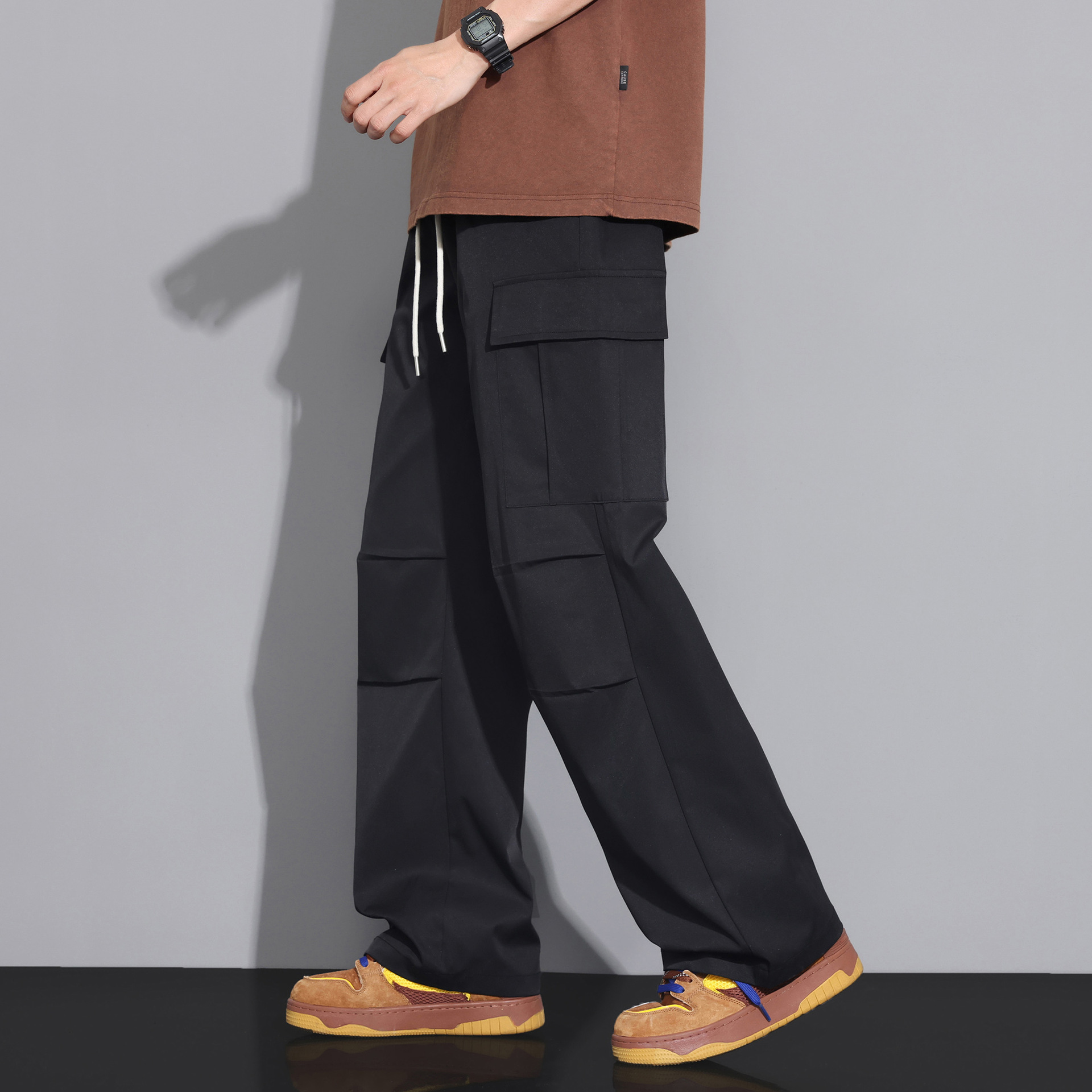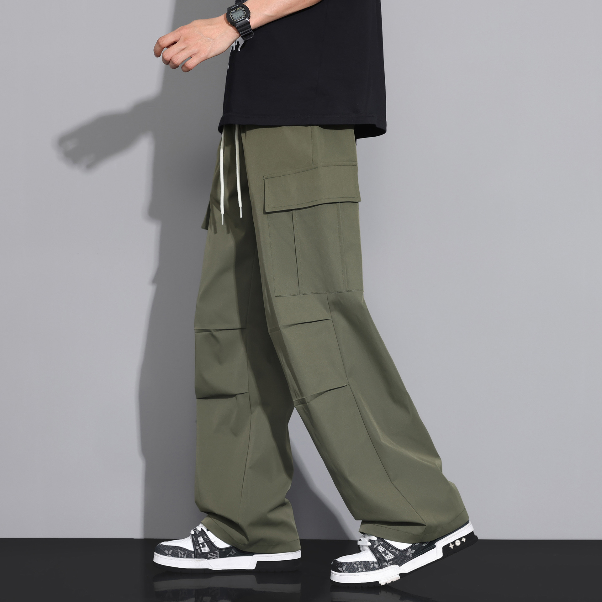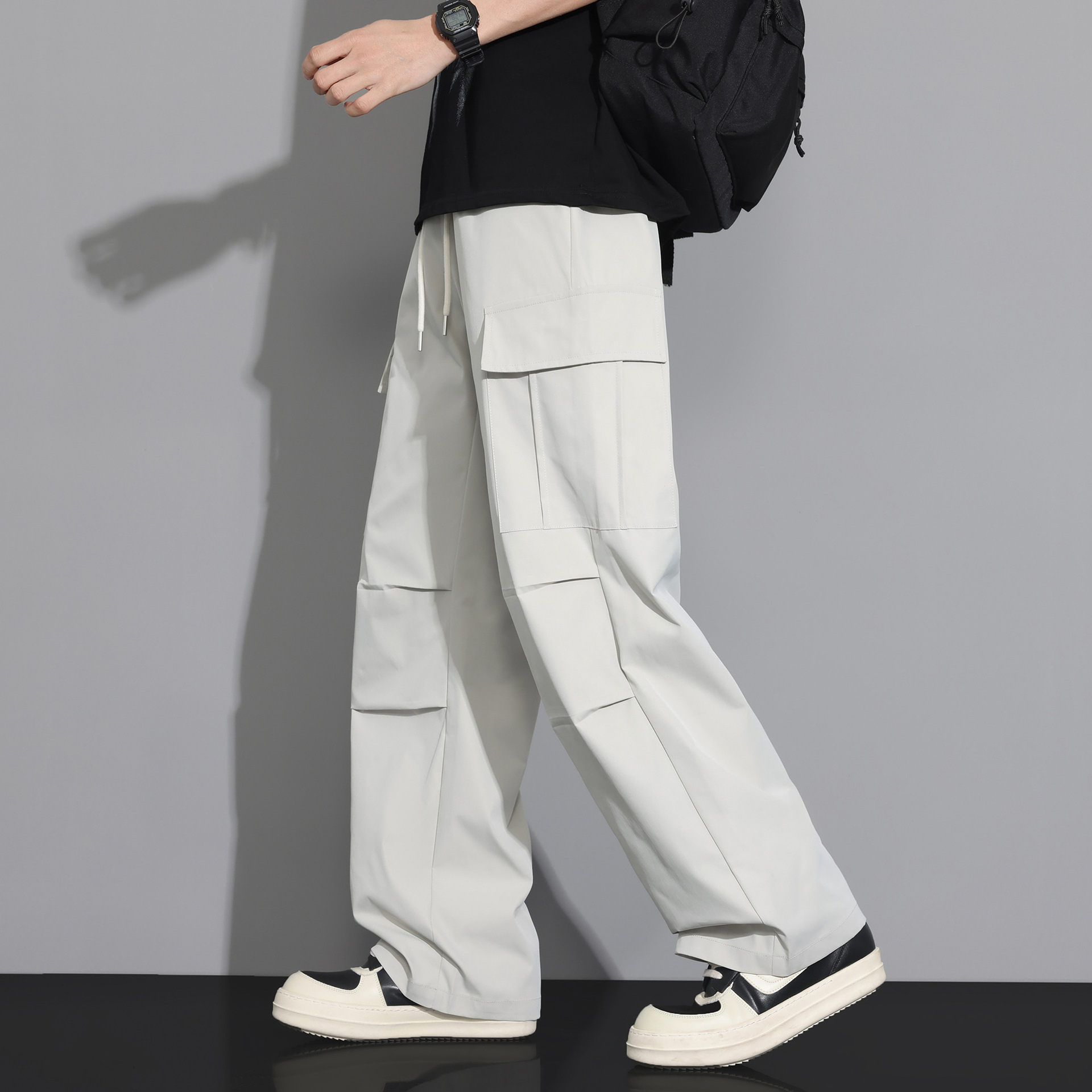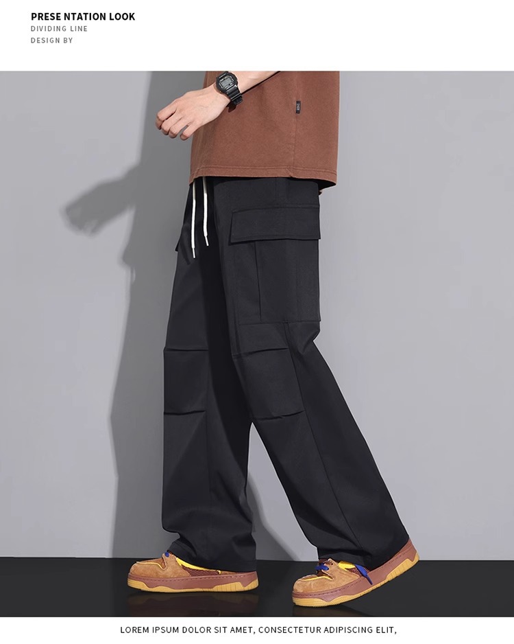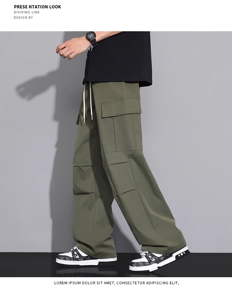 NASA 블랙 아메리칸 캐주얼 바지 남성 여름 얇은 트렌디 브랜드 루즈 스트레이트 와이드 레그 등산 아이스 실크 롱 팬츠스토어 가기