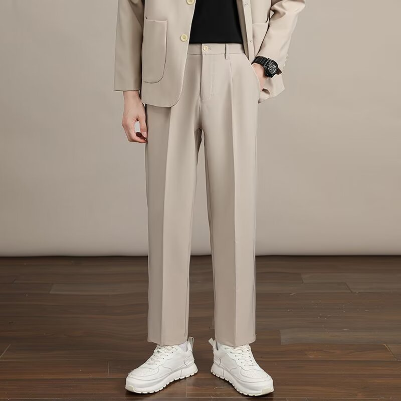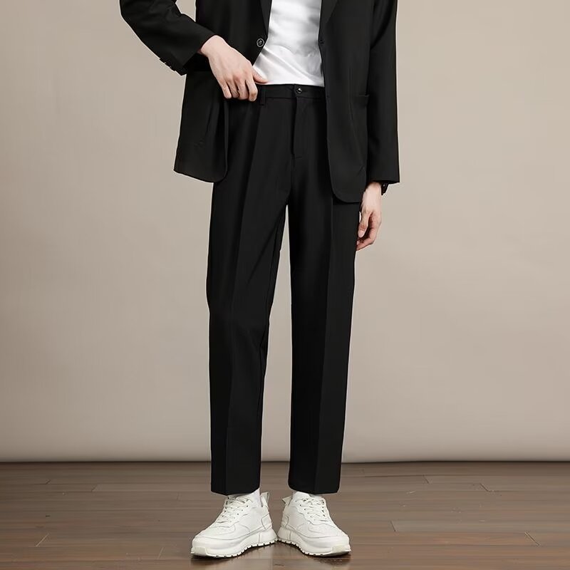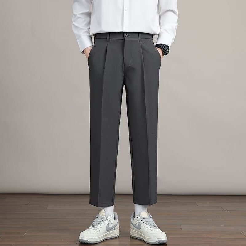 여름 남성용 드레이피 수트 팬츠, 루즈한 스트레이트 와이드 팬츠, 슬리밍 팬츠, 활용도 높은 비즈니스 9부 팬츠