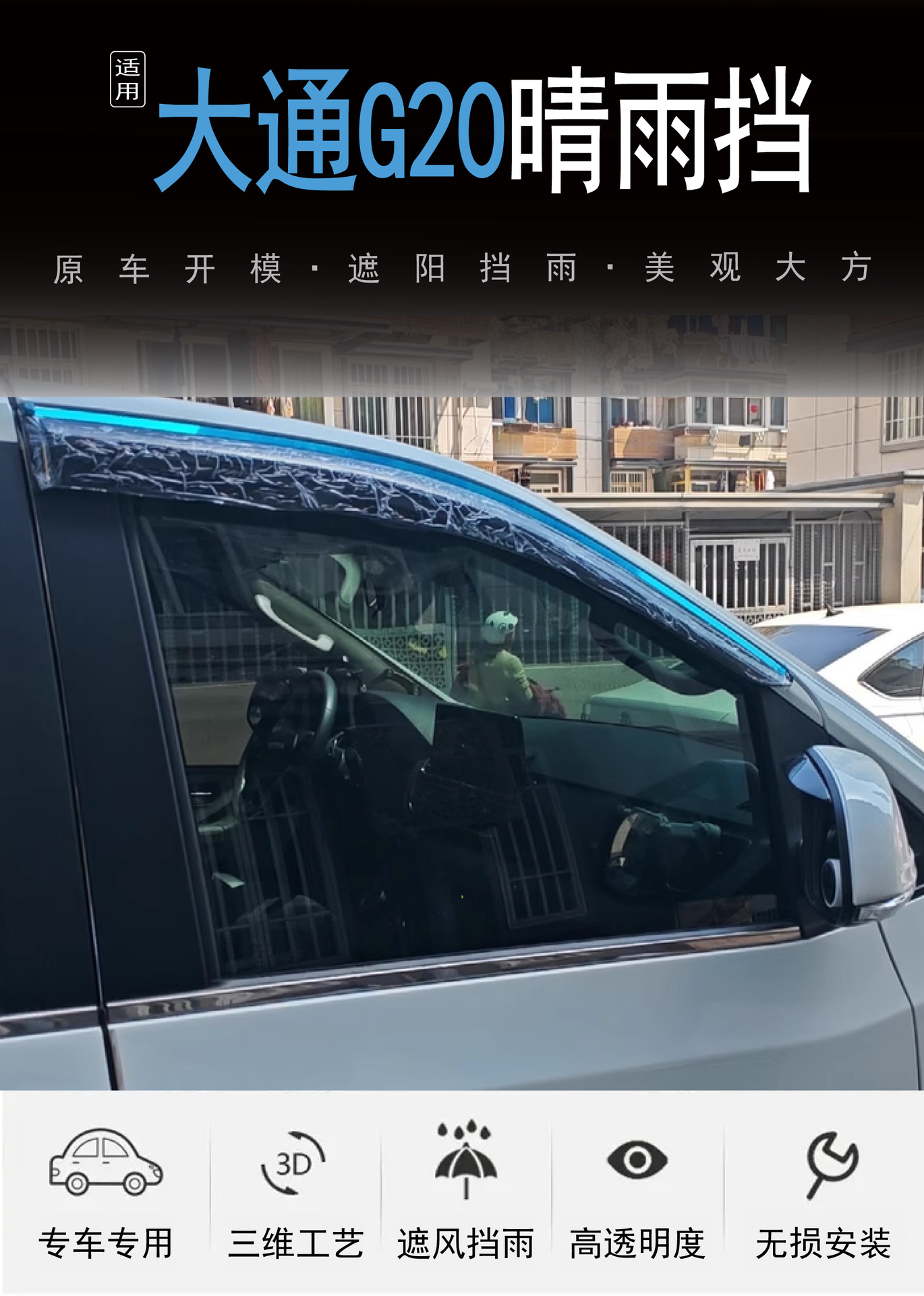 2019-2023년형 체포 G20 차량용 창문 개조 차단 및 비 차단 아크릴 자동차 비 차단 장치에 적합스토어 가기