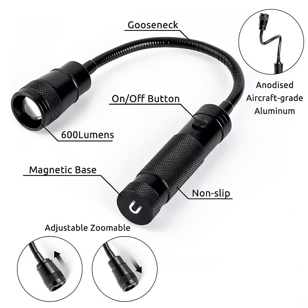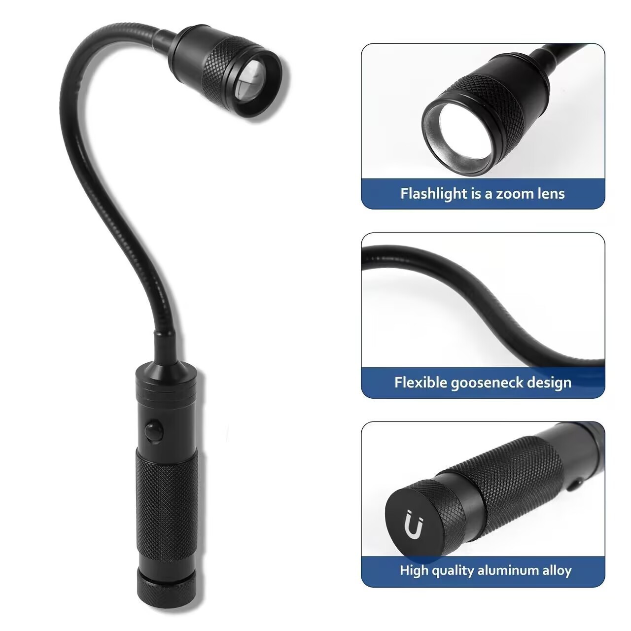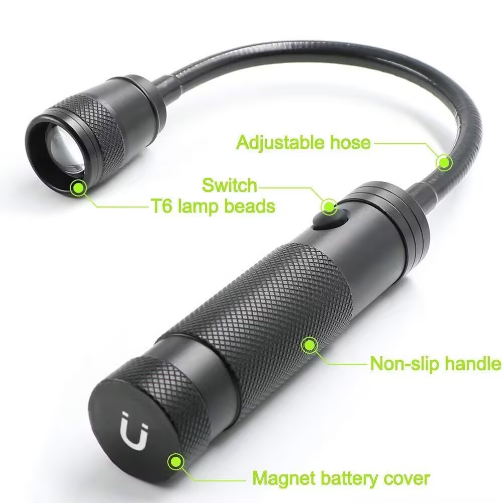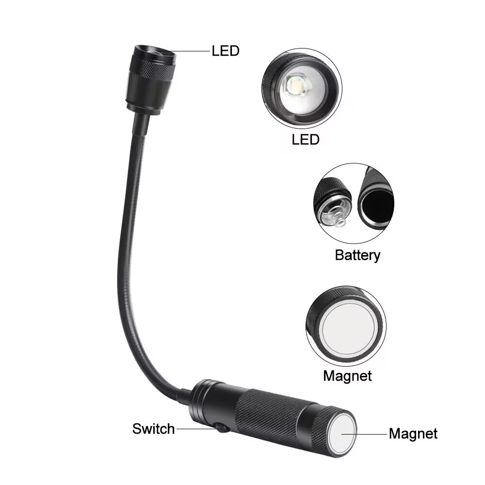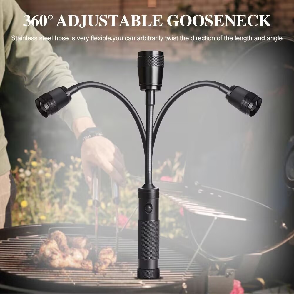 강한 빛 슈퍼 밝은 손전등 야외 바베큐 램프 360 ° 구부러진 구즈넥 호스 램프 자기 초점 조절 작업등