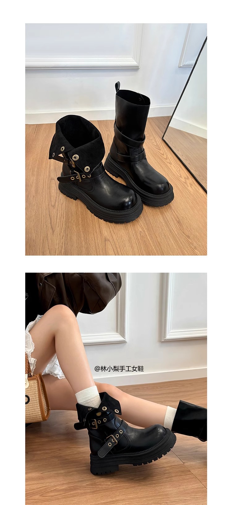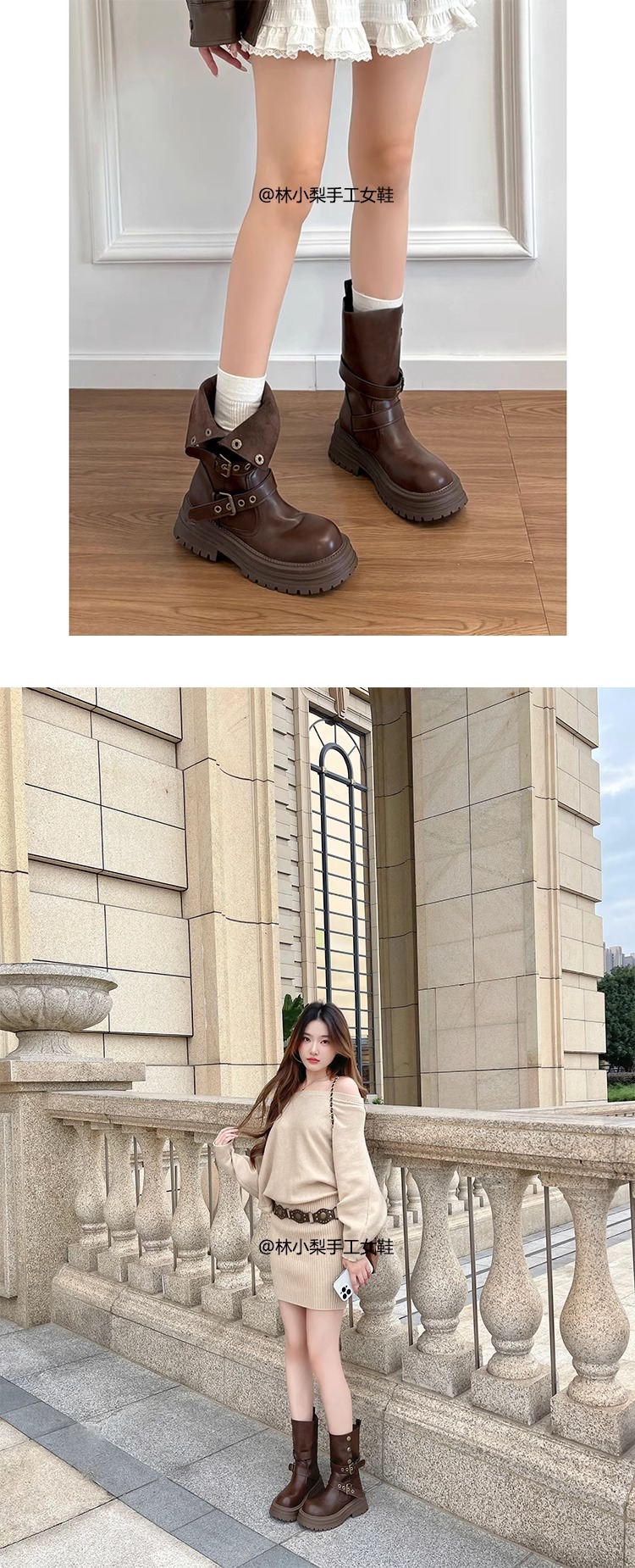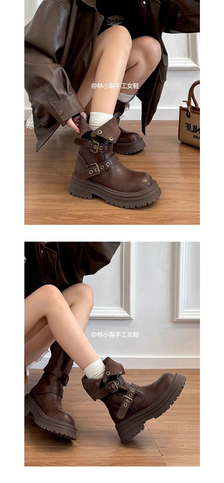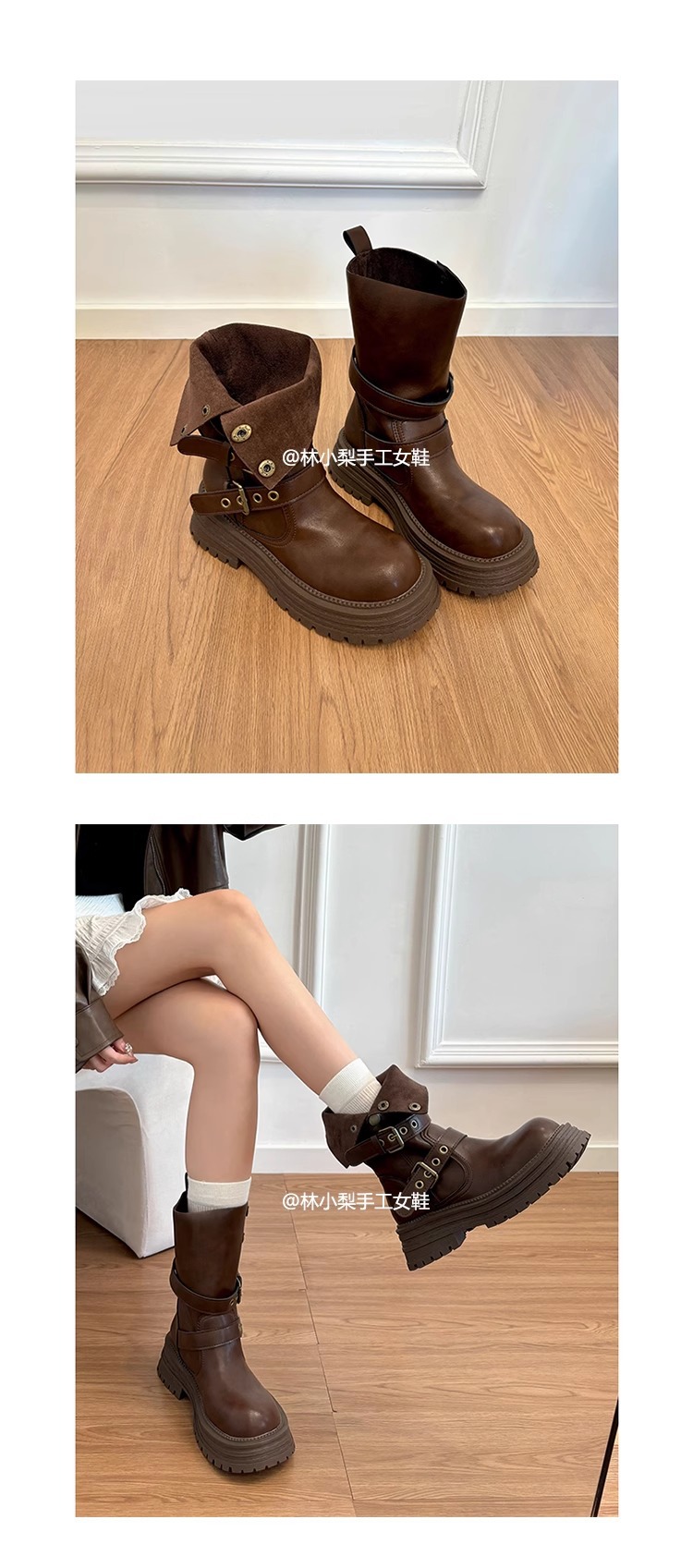 재고 있음 ~ 여성용 소형 두꺼운 밑창 메일라드 미드 종아리 짧은 부츠 2025 새로운 영국 스타일 복고풍 브라운 마틴 부츠