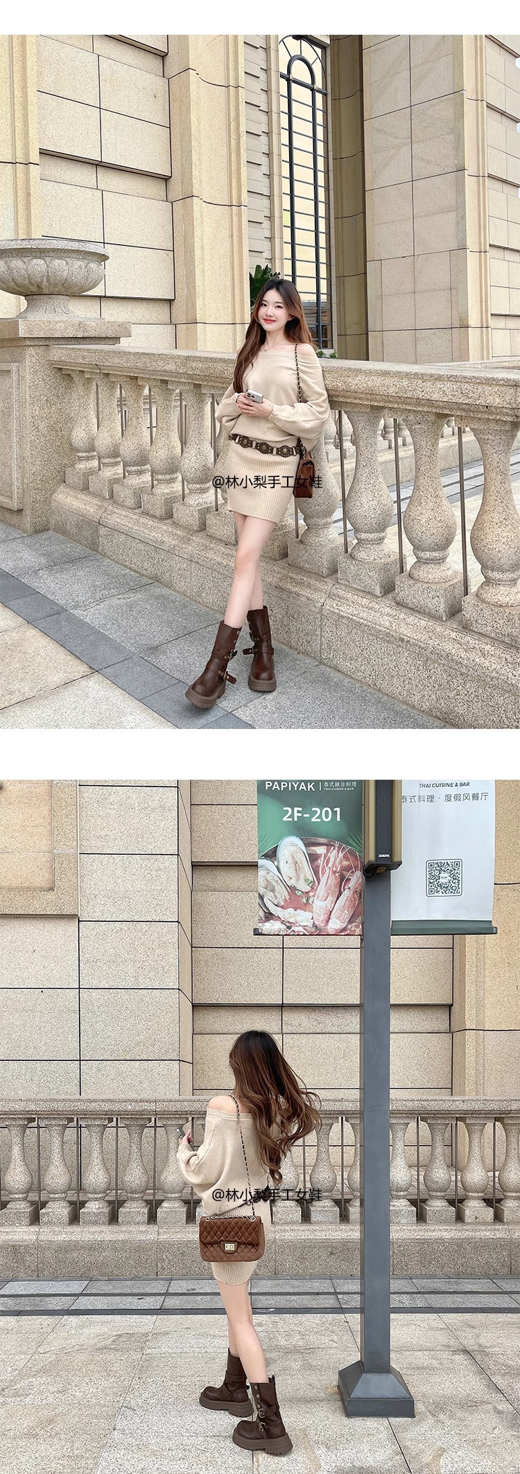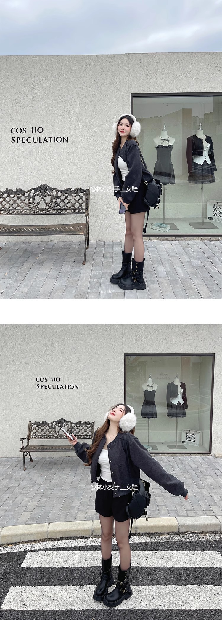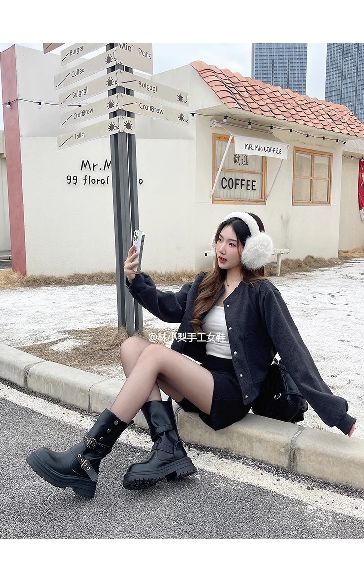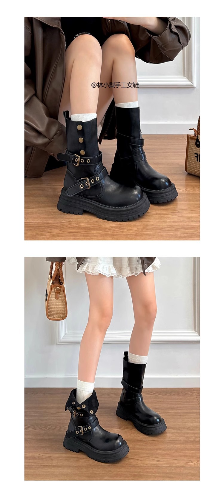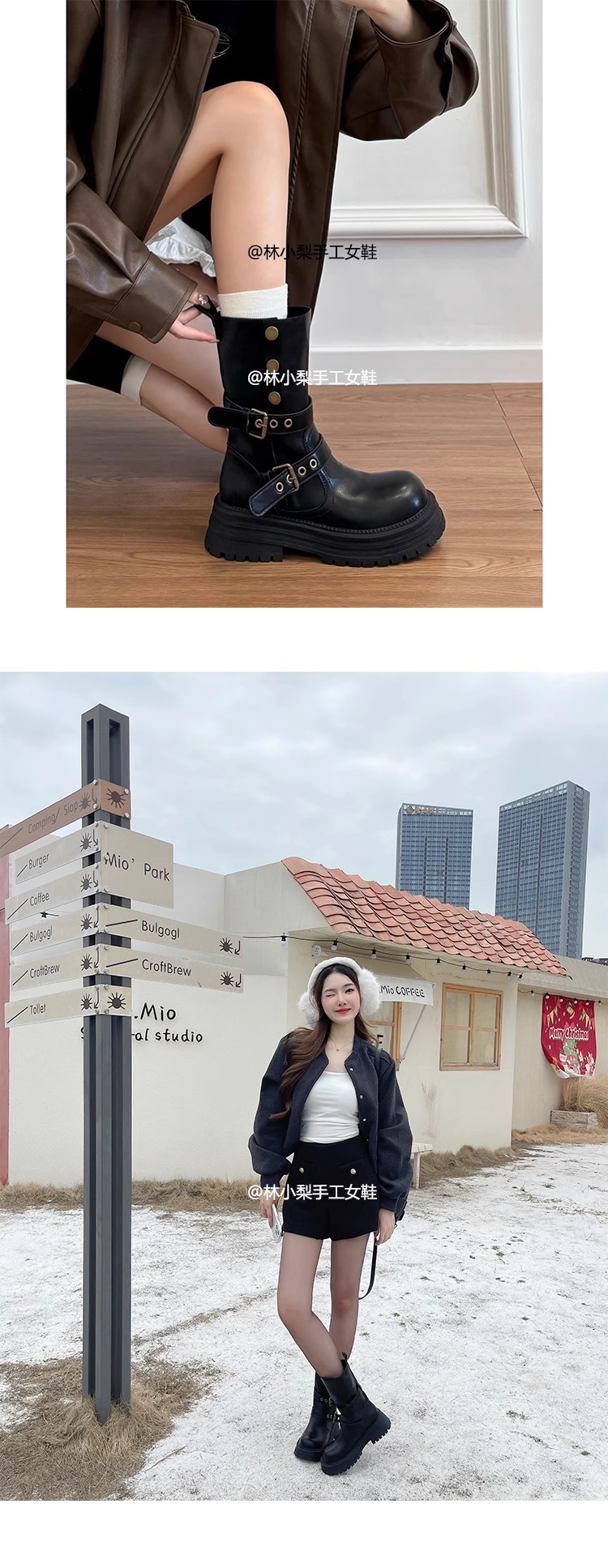 재고 있음 ~ 여성용 소형 두꺼운 밑창 메일라드 미드 종아리 짧은 부츠 2025 새로운 영국 스타일 복고풍 브라운 마틴 부츠