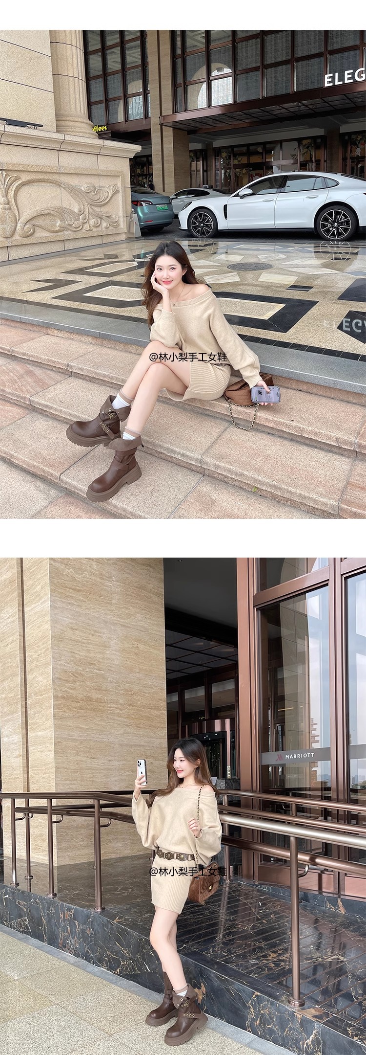 재고 있음 ~ 여성용 소형 두꺼운 밑창 메일라드 미드 종아리 짧은 부츠 2025 새로운 영국 스타일 복고풍 브라운 마틴 부츠스토어 가기