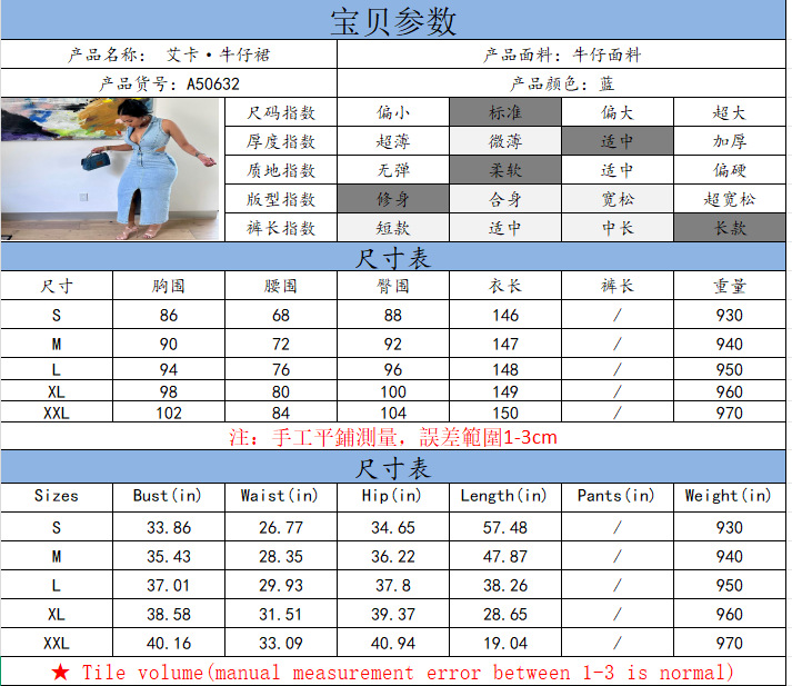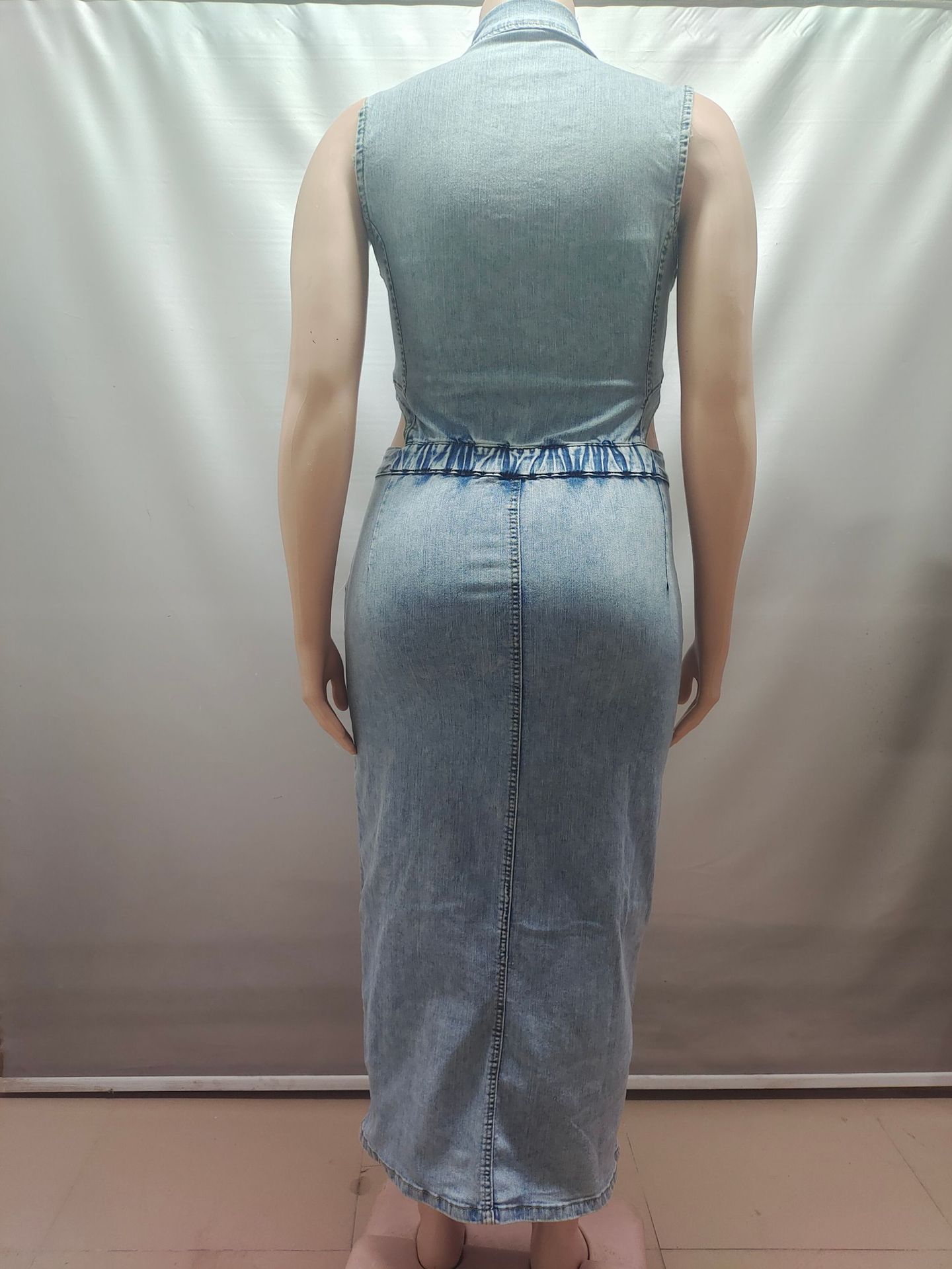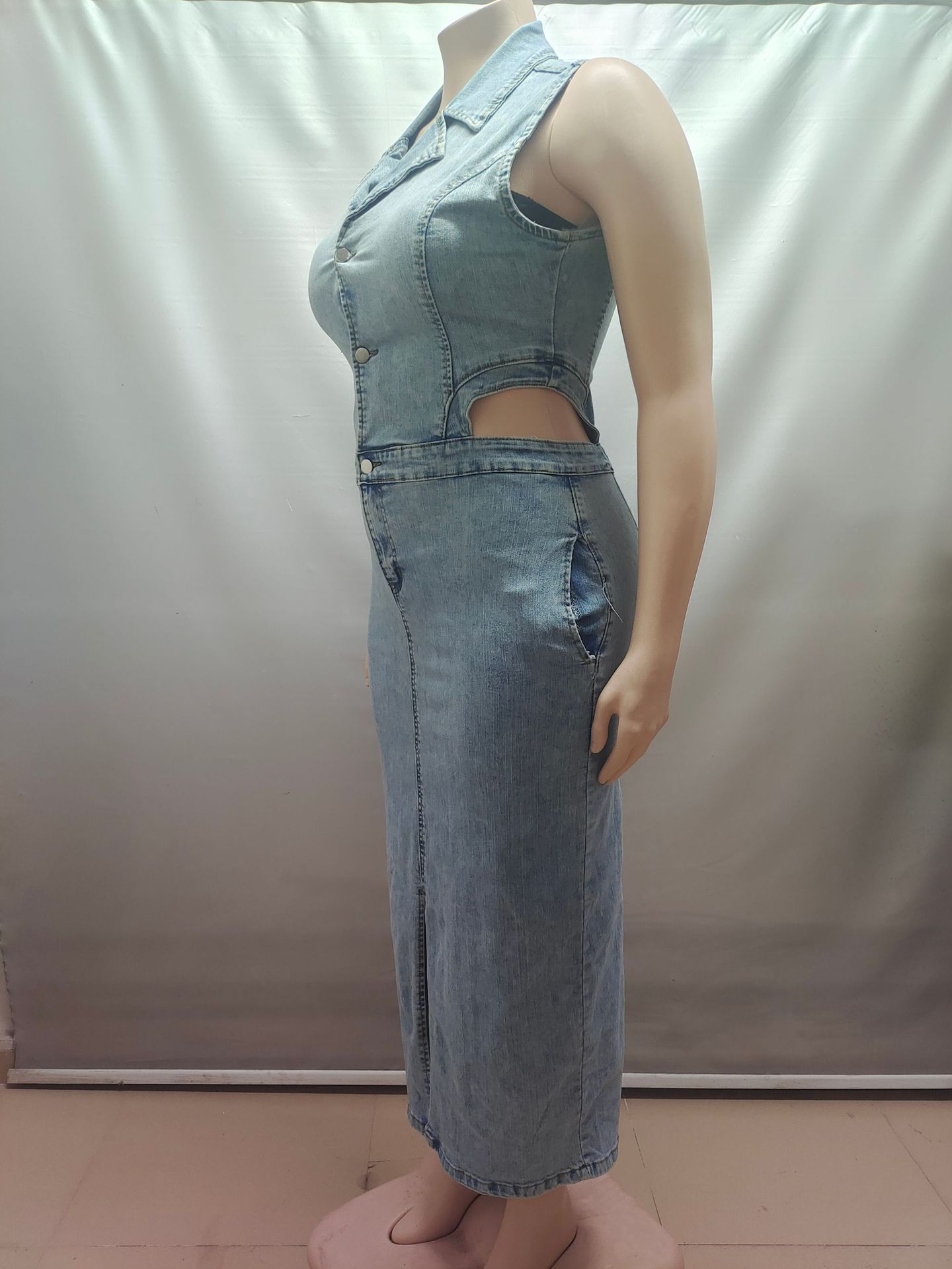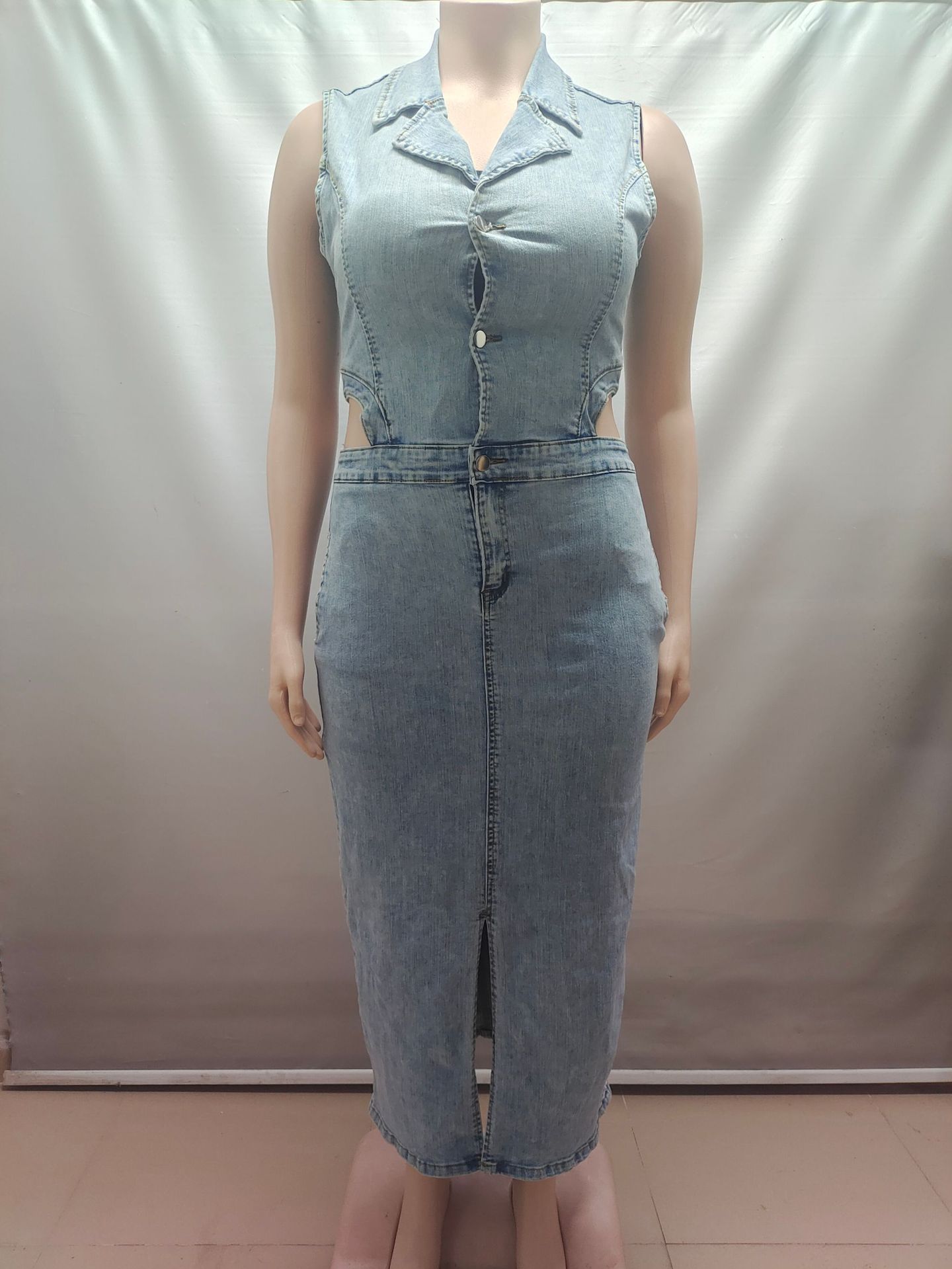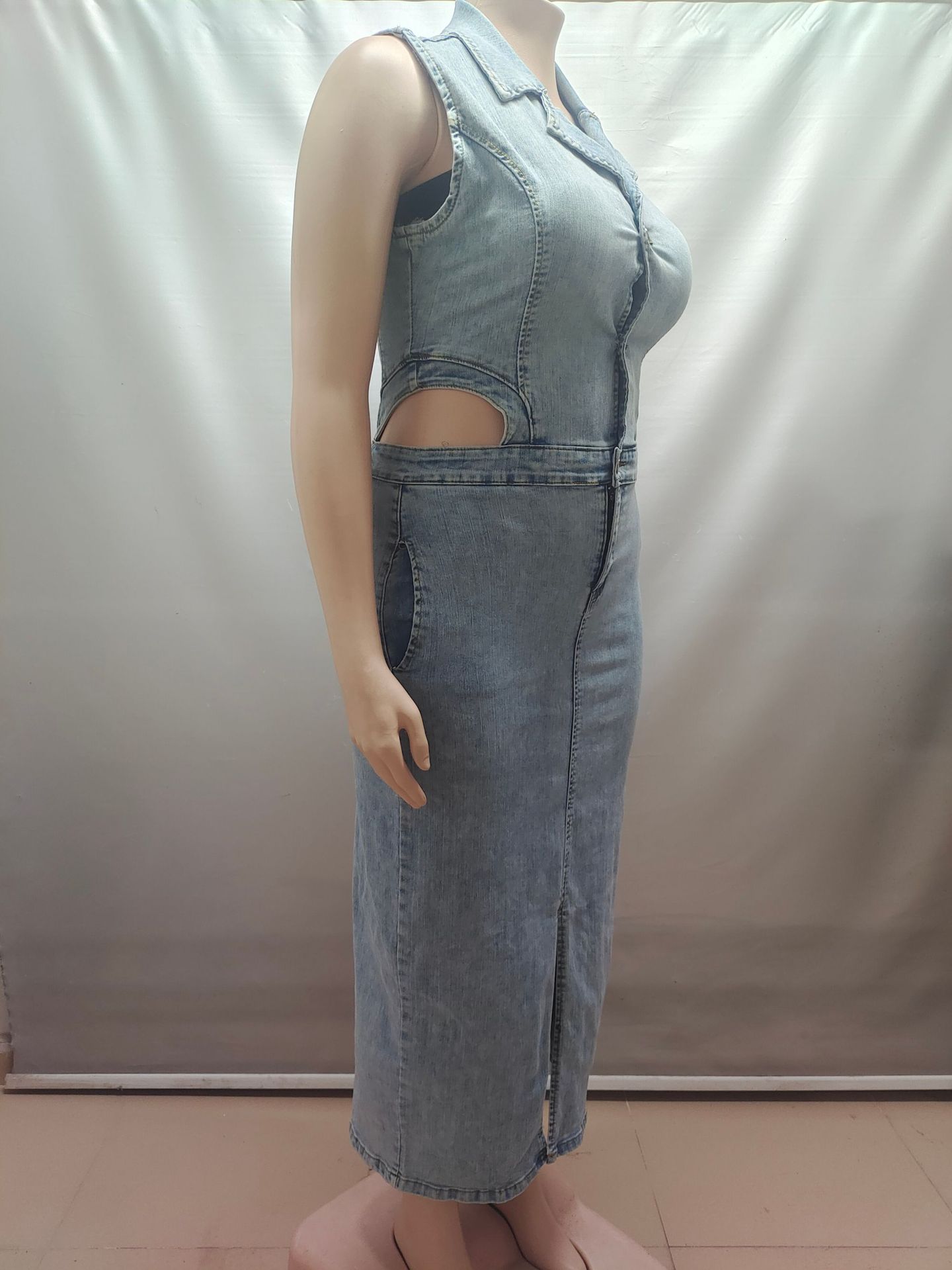 유럽과 미국 여성 데님 드레스 아마존 국경 간 여성 패션 섹시한 민소매 옷깃 슬릿 드레스스토어 가기