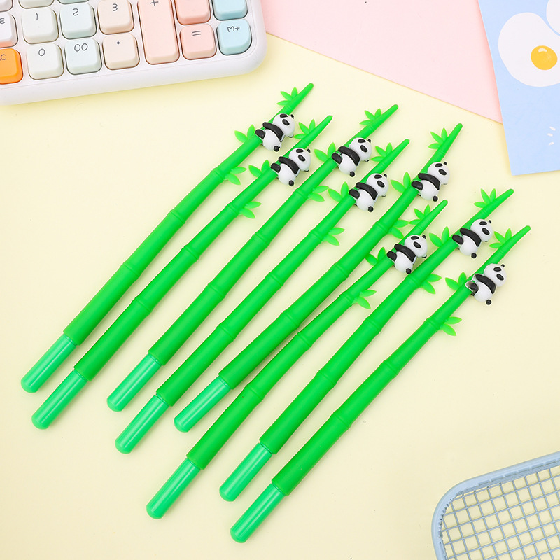 만화 팬더 대나무 모양 펜 크리 에이 티브 실리콘 대나무 팬더 학생 검은 서명 젤 펜스토어 가기
