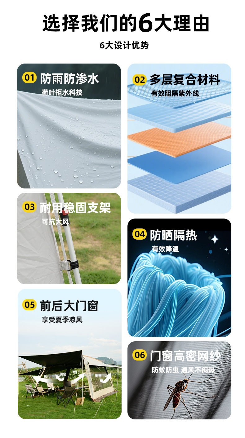 텐트 야외 캠핑 피크닉 캠핑 천막 가족 4-8인 야외 자외선 차단 커버 파빌리온 캐노피