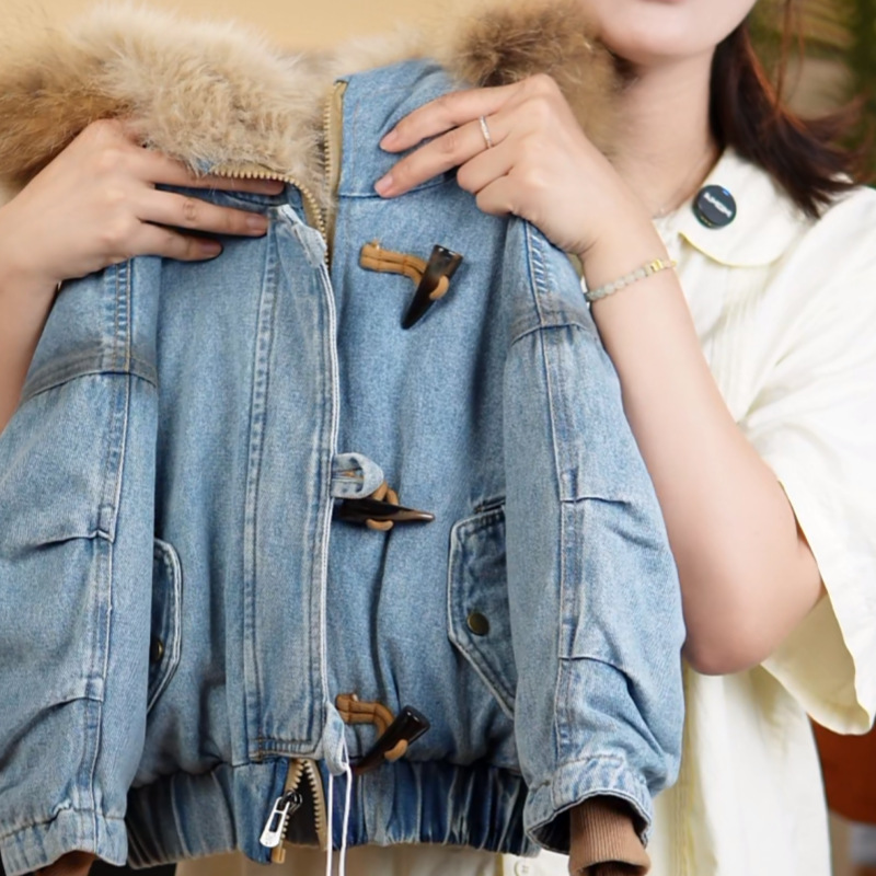 아동용 겨울옷, 두툼하고 따뜻한 면옷, 데님 후드 벨벳 코트, 중대형 아동용 패셔너블 캐주얼 면옷, 베이비 트렌드스토어 가기