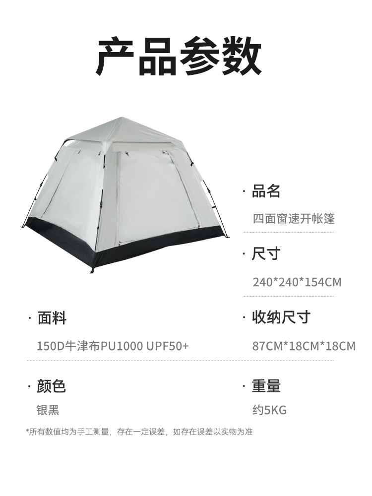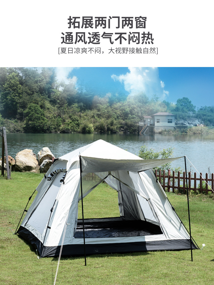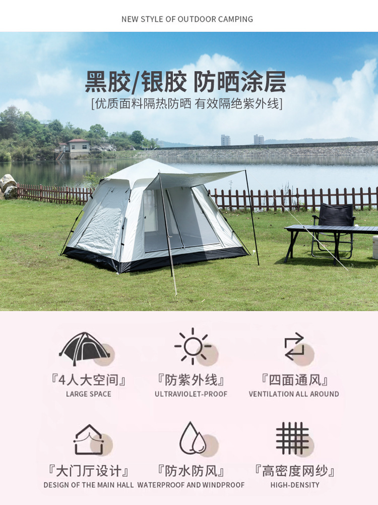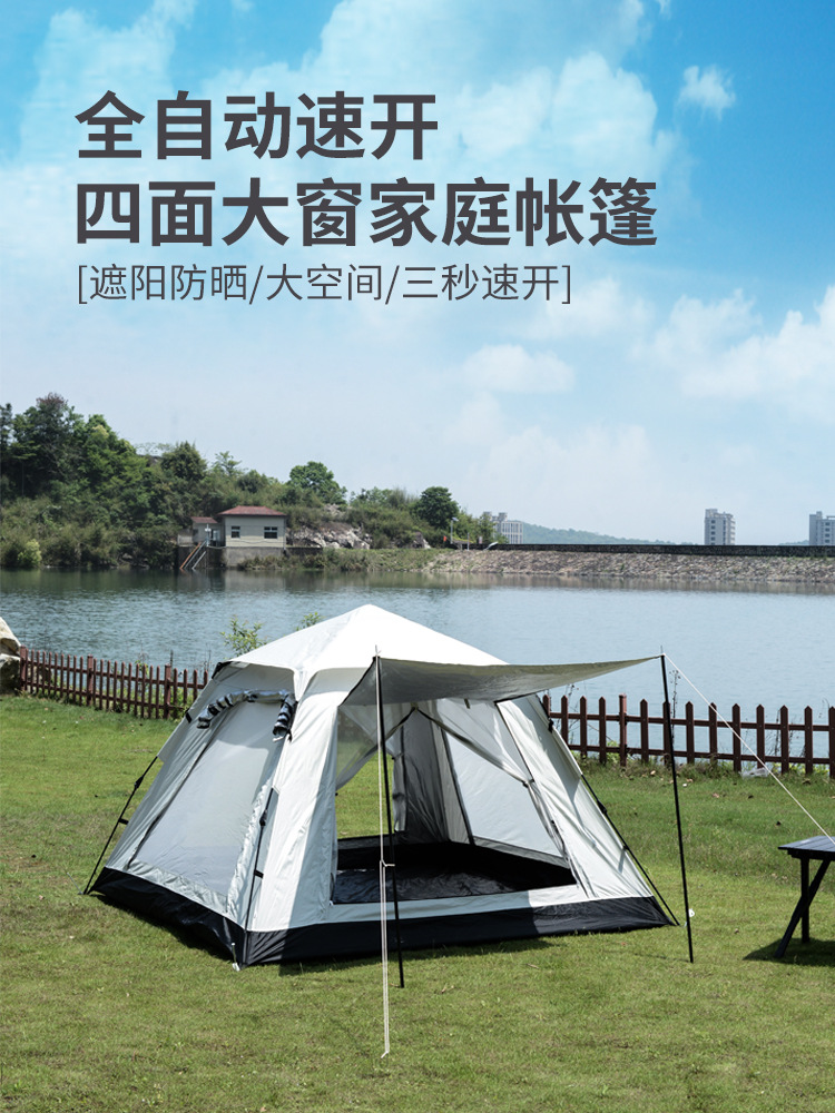 새로운 3-4인용 완전 자동 휴대용 캠핑 캐노피, 가족 피크닉 및 낚시, 두꺼운 자외선 차단제, 4면 창, 빠른 개방형 텐트
