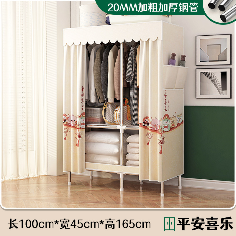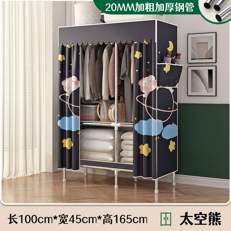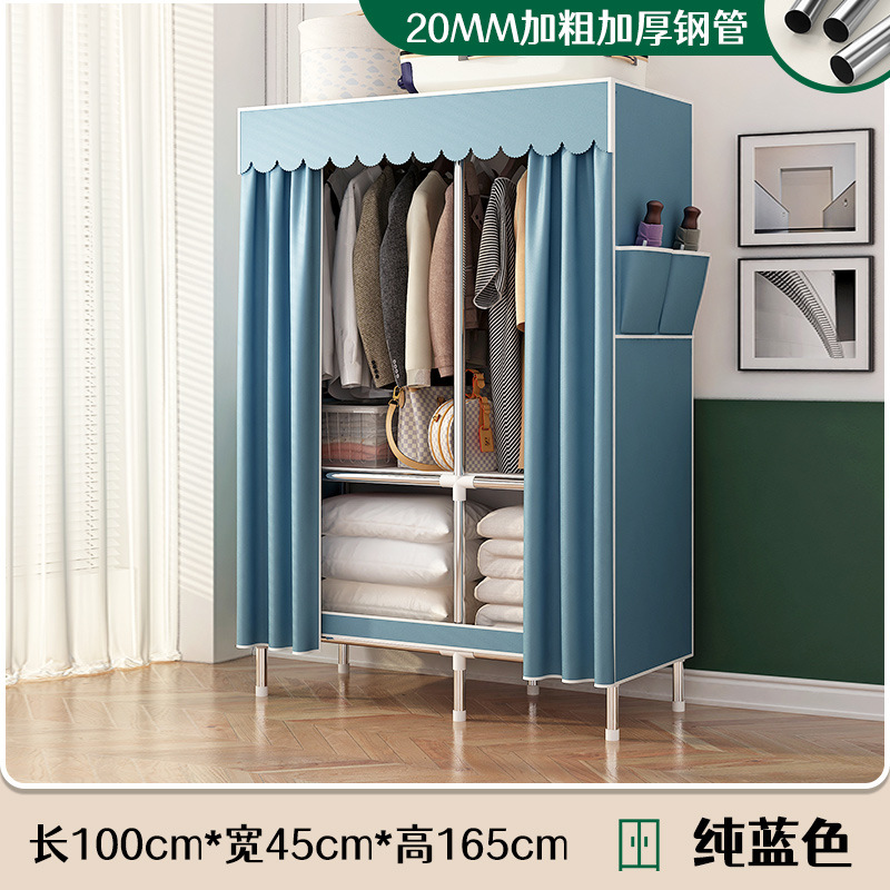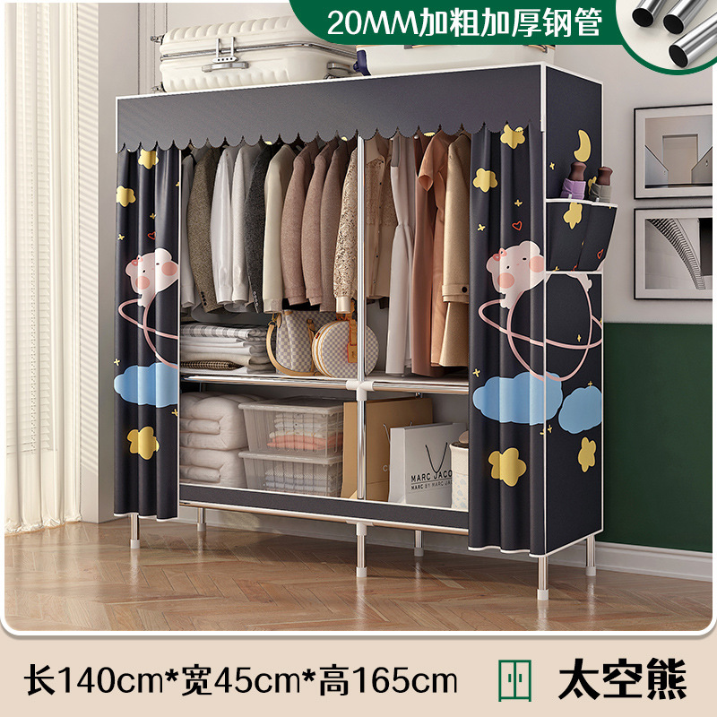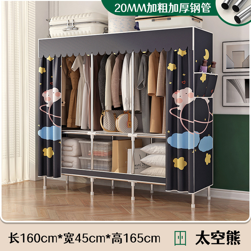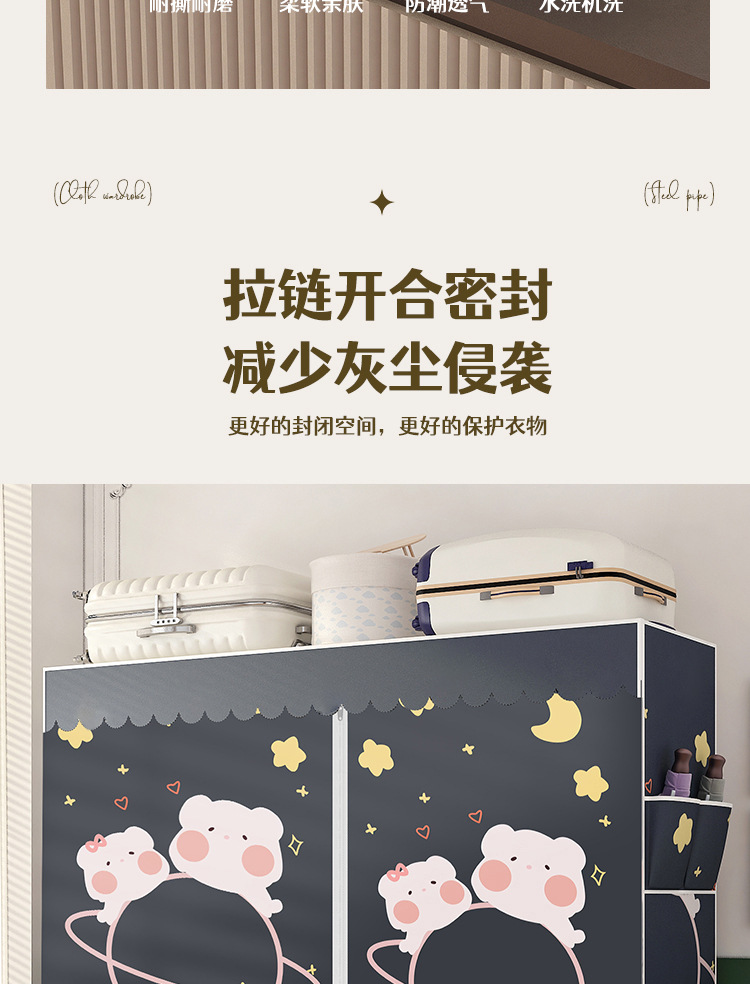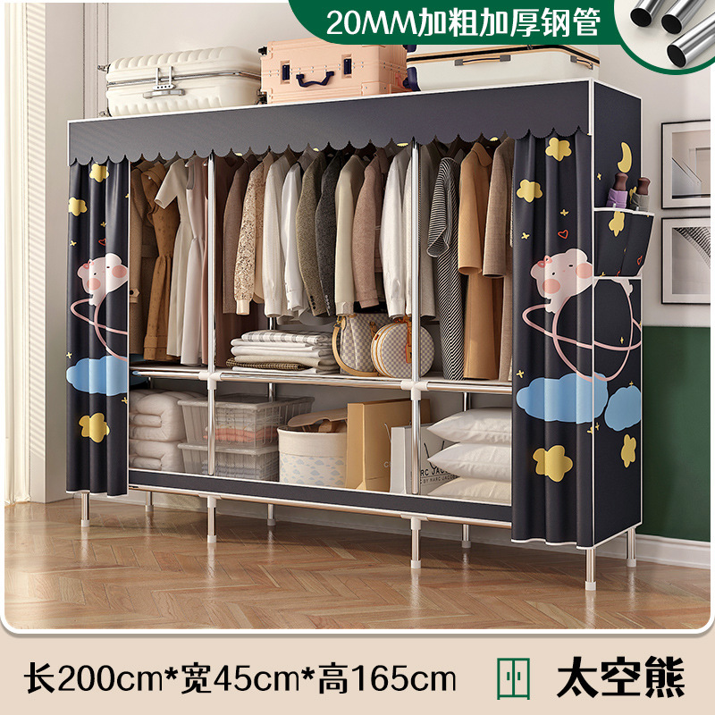 로고 간단한 옷장 두꺼운 강철 파이프 폴리에스테르 천 옷장 간단하고 경제적인 조립식 수납 옷장