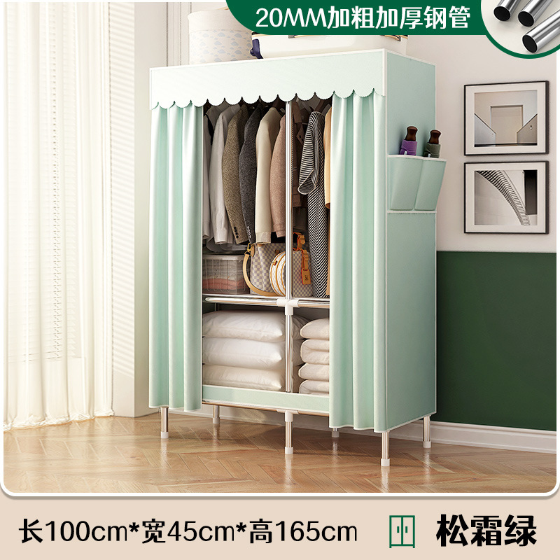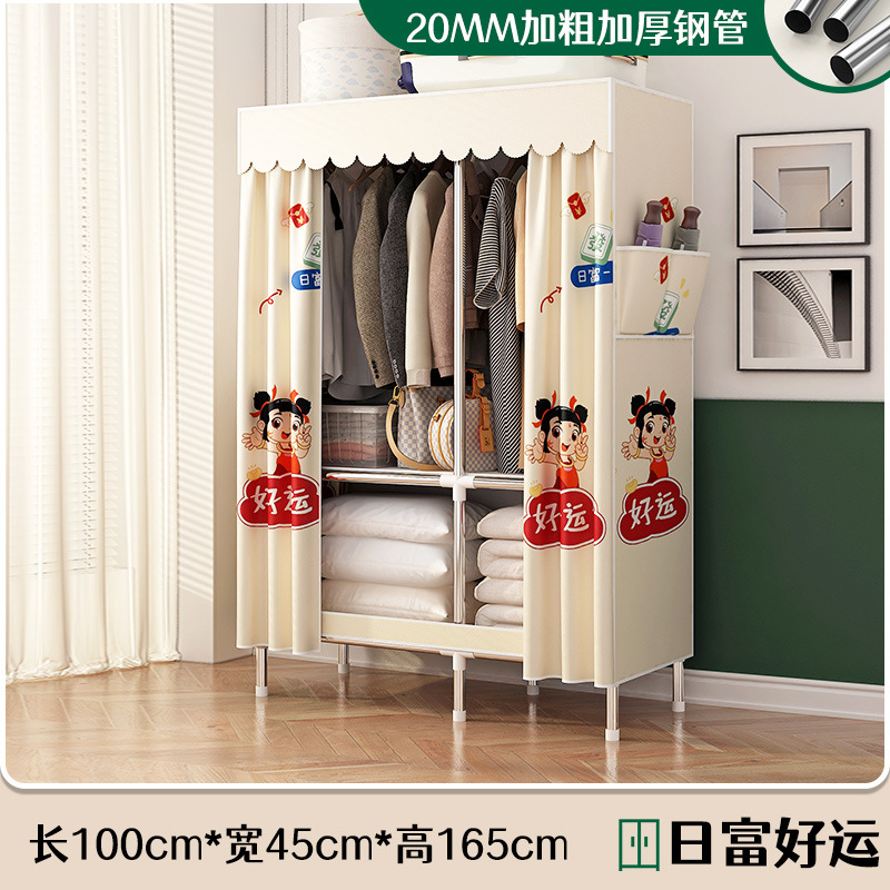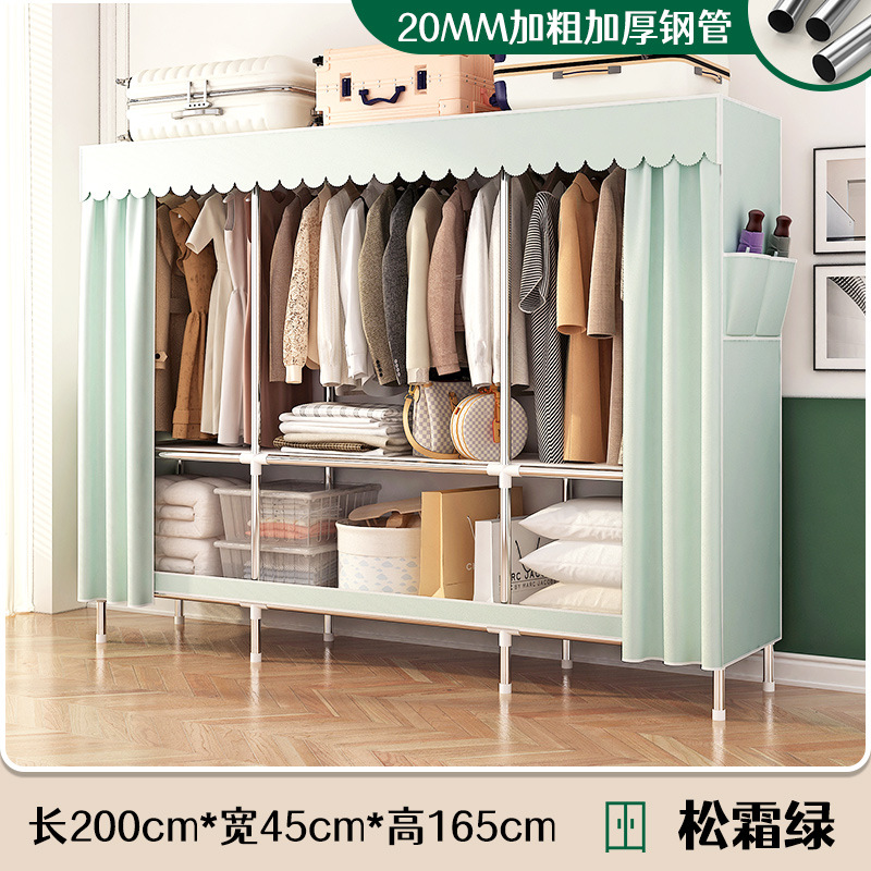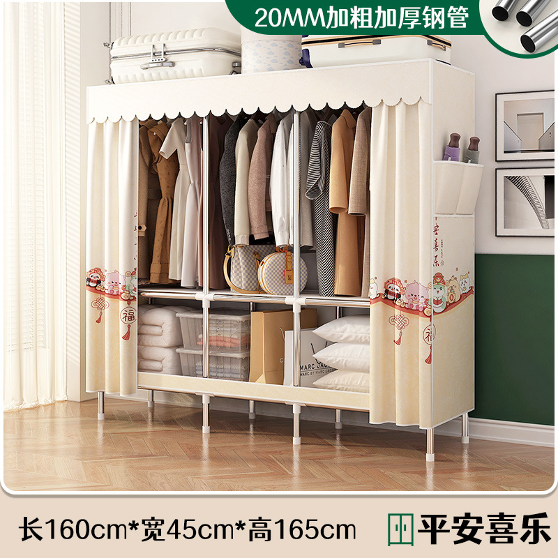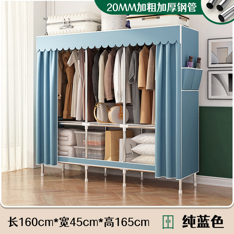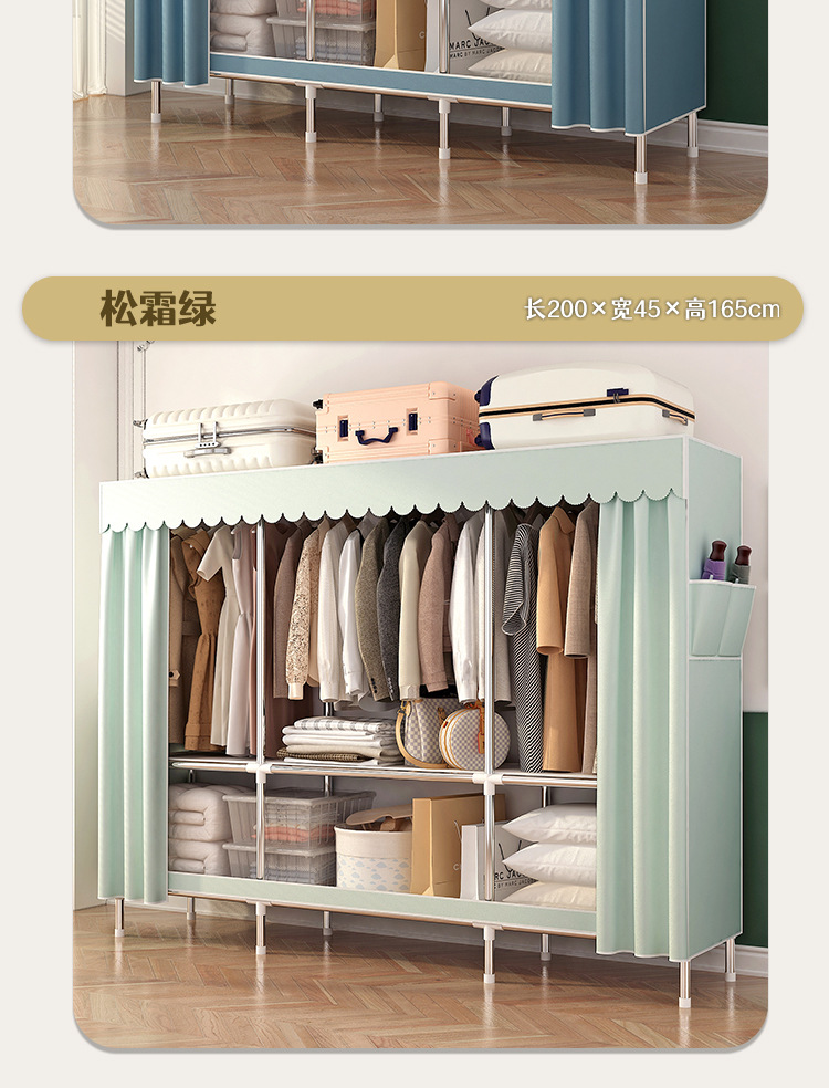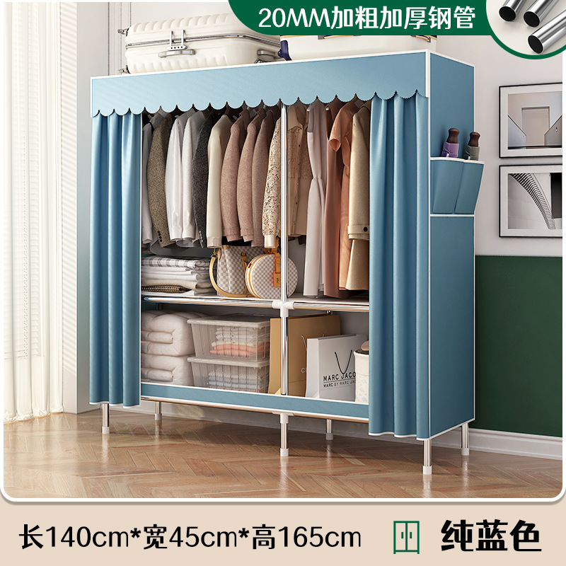 로고 간단한 옷장 두꺼운 강철 파이프 폴리에스테르 천 옷장 간단하고 경제적인 조립식 수납 옷장