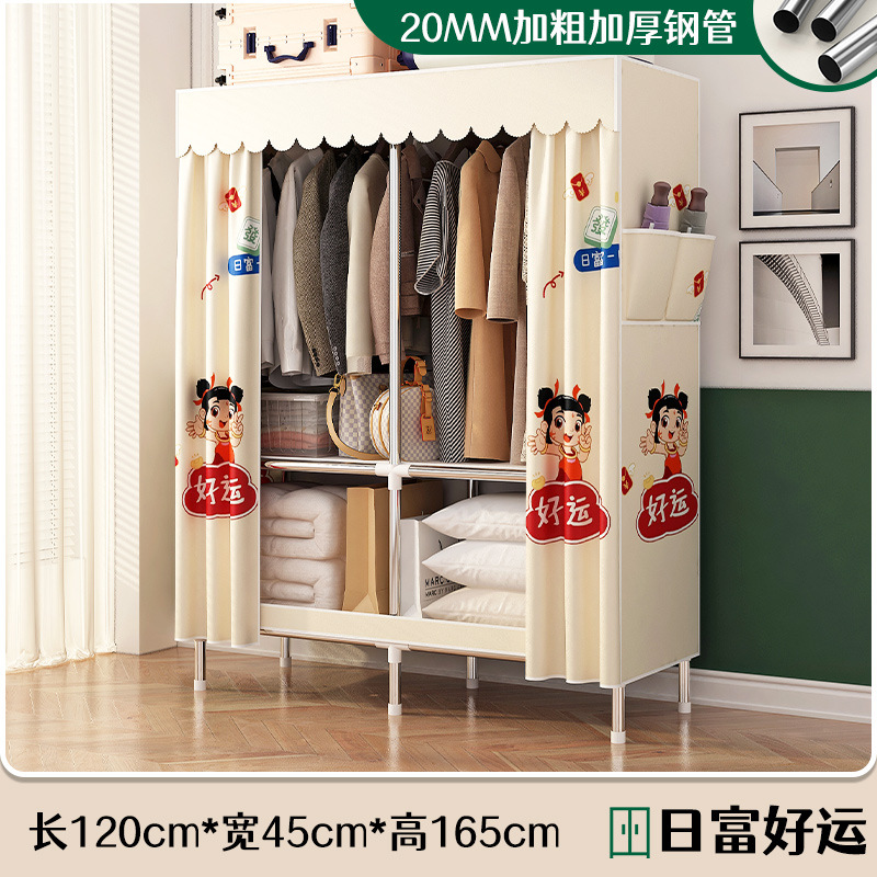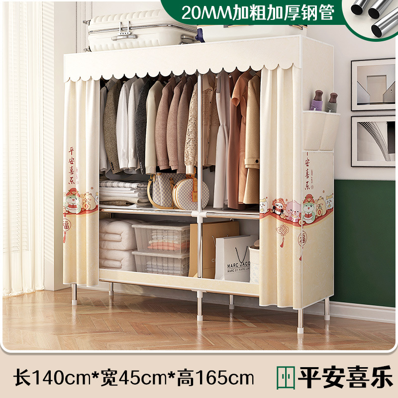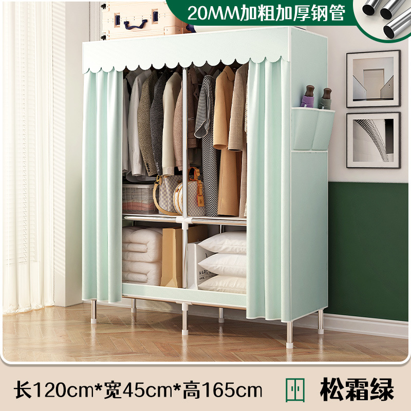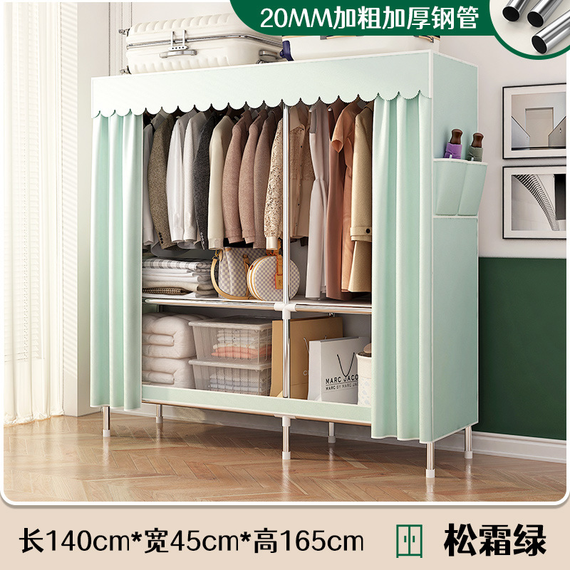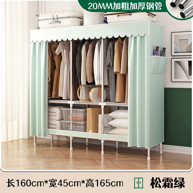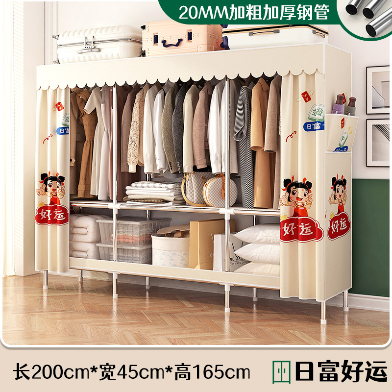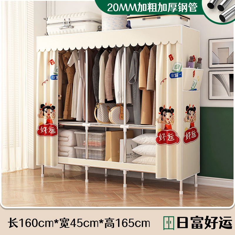 로고 간단한 옷장 두꺼운 강철 파이프 폴리에스테르 천 옷장 간단하고 경제적인 조립식 수납 옷장