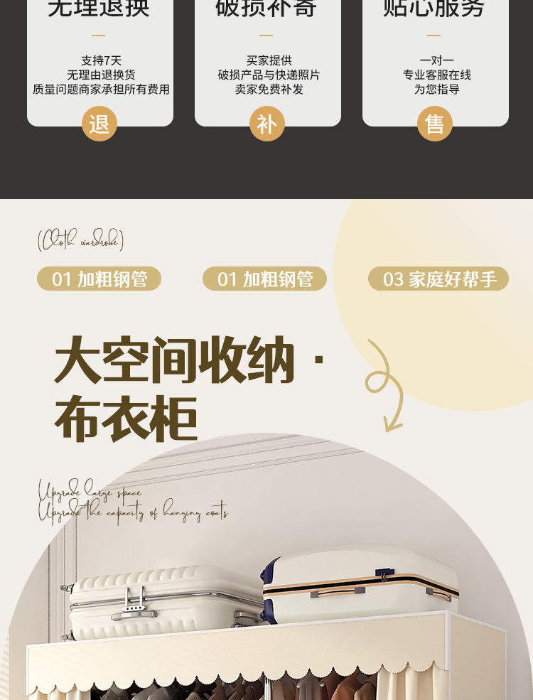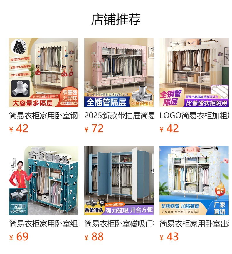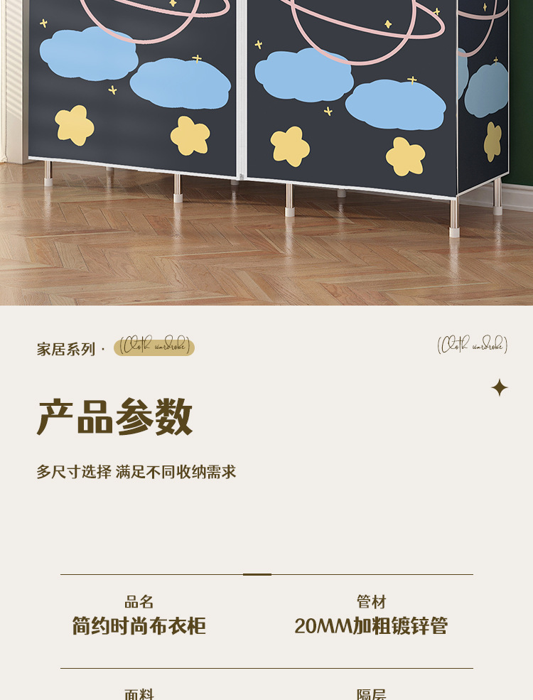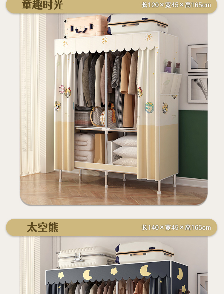 로고 간단한 옷장 두꺼운 강철 파이프 폴리에스테르 천 옷장 간단하고 경제적인 조립식 수납 옷장스토어 가기