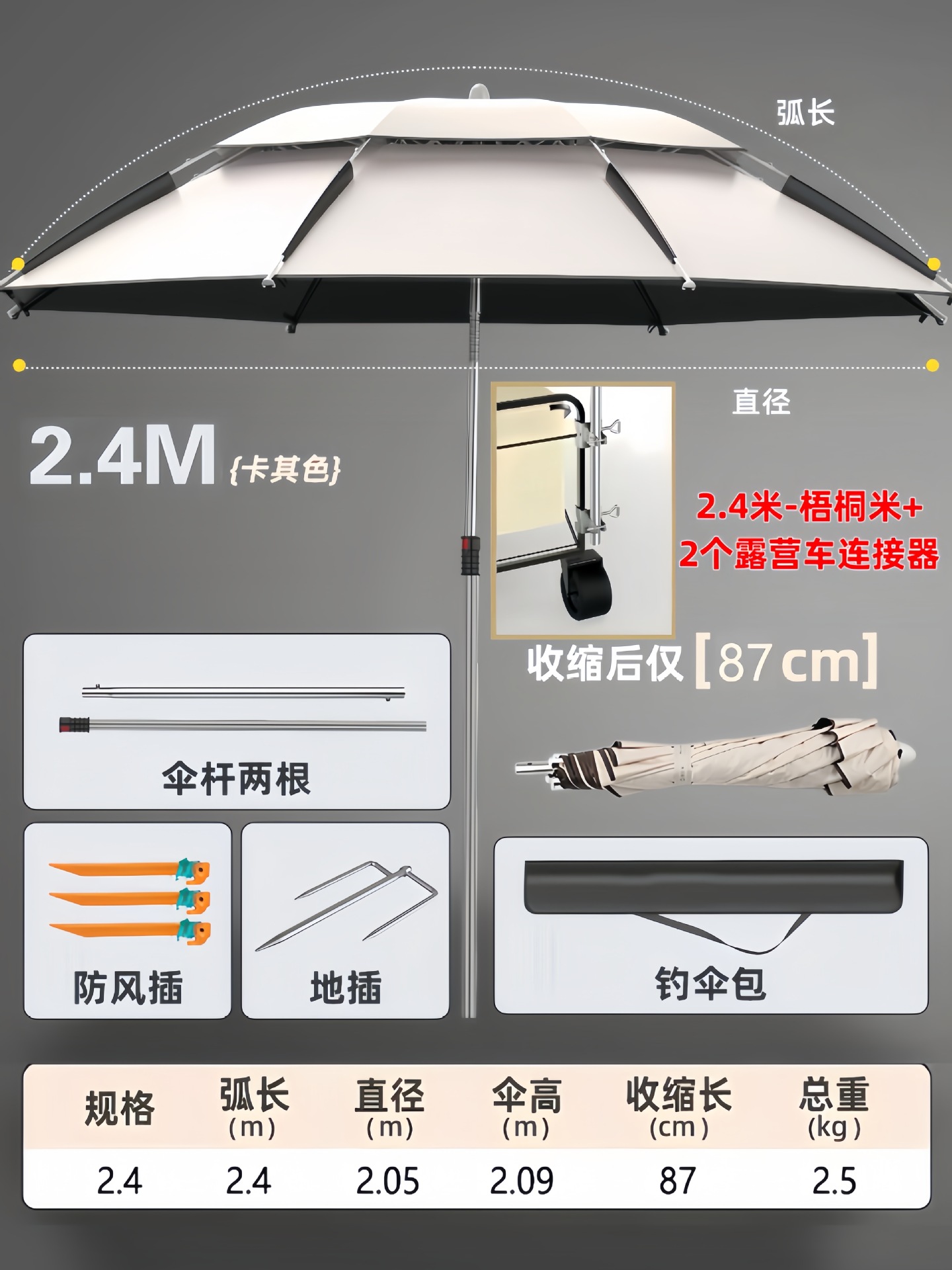 • [목발 모델] 2.4m - 우통 쌀 + 캠핑카 커넥터 2개