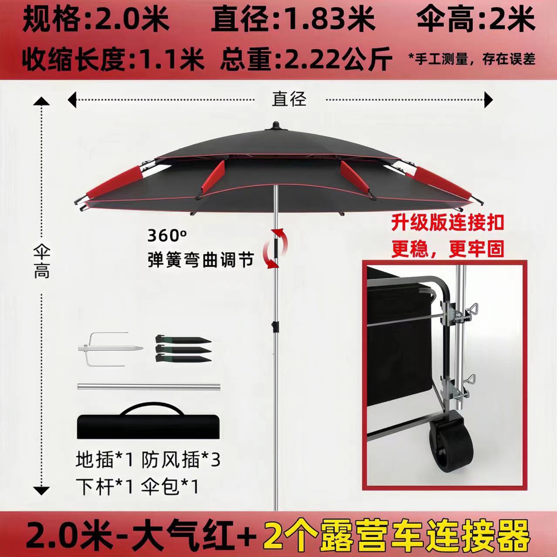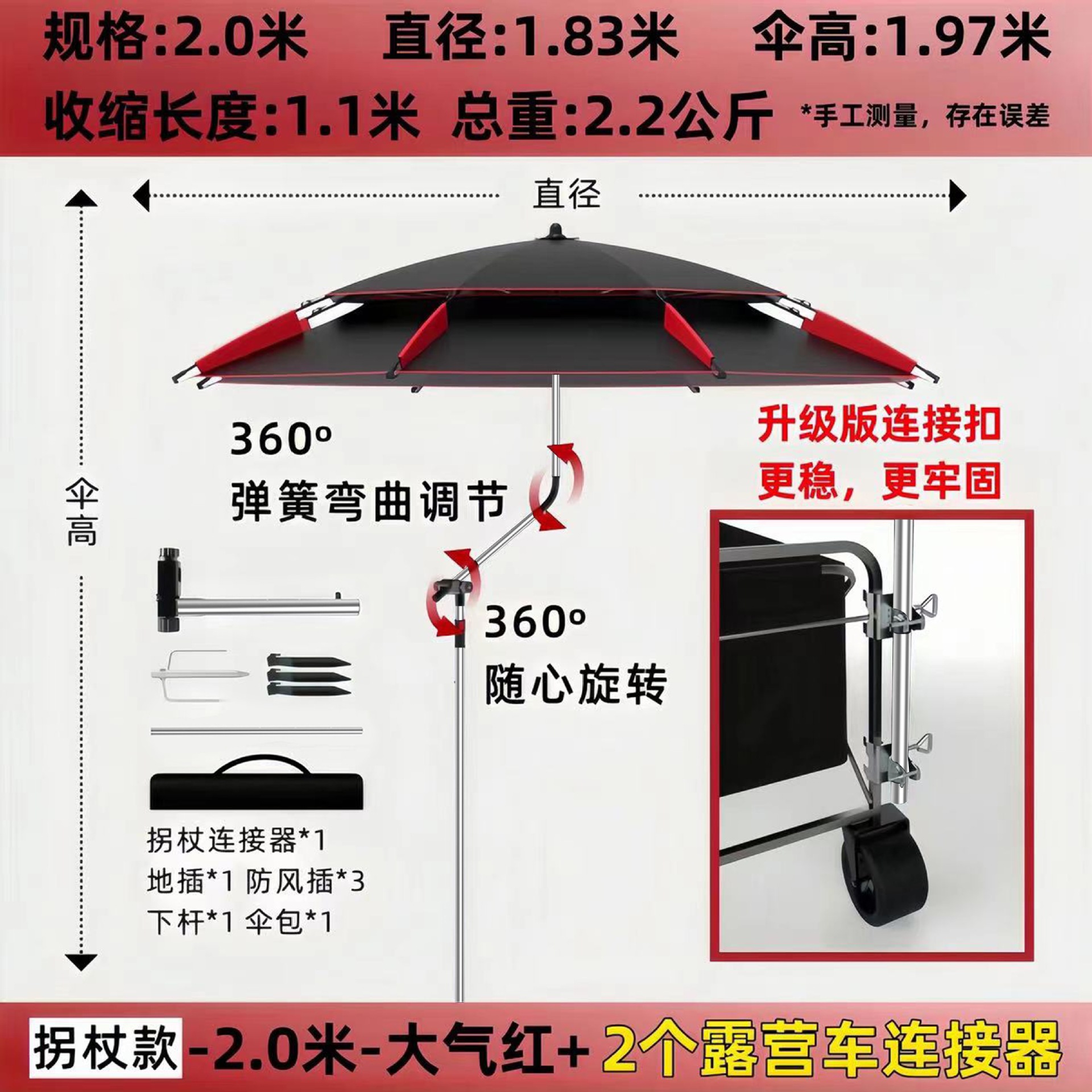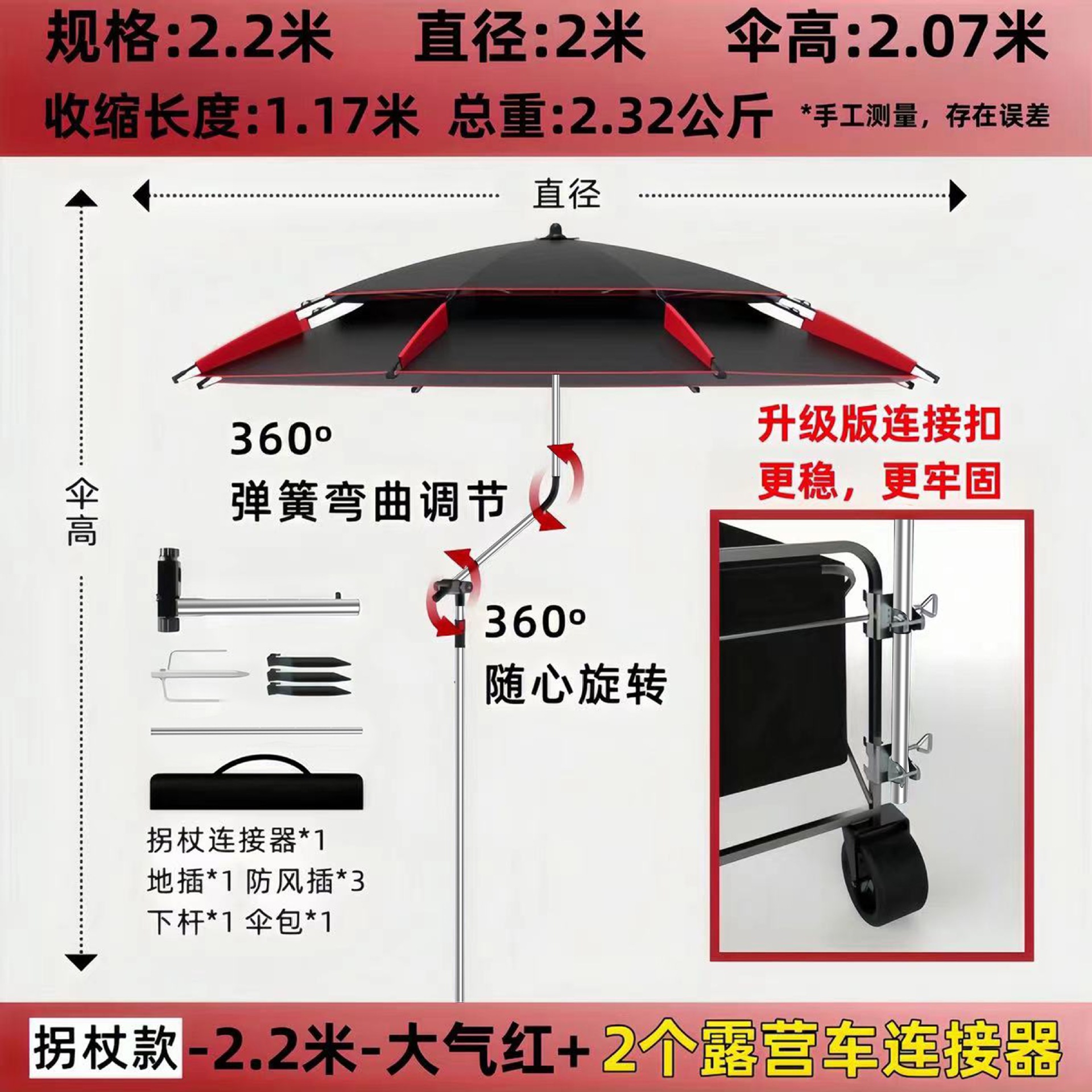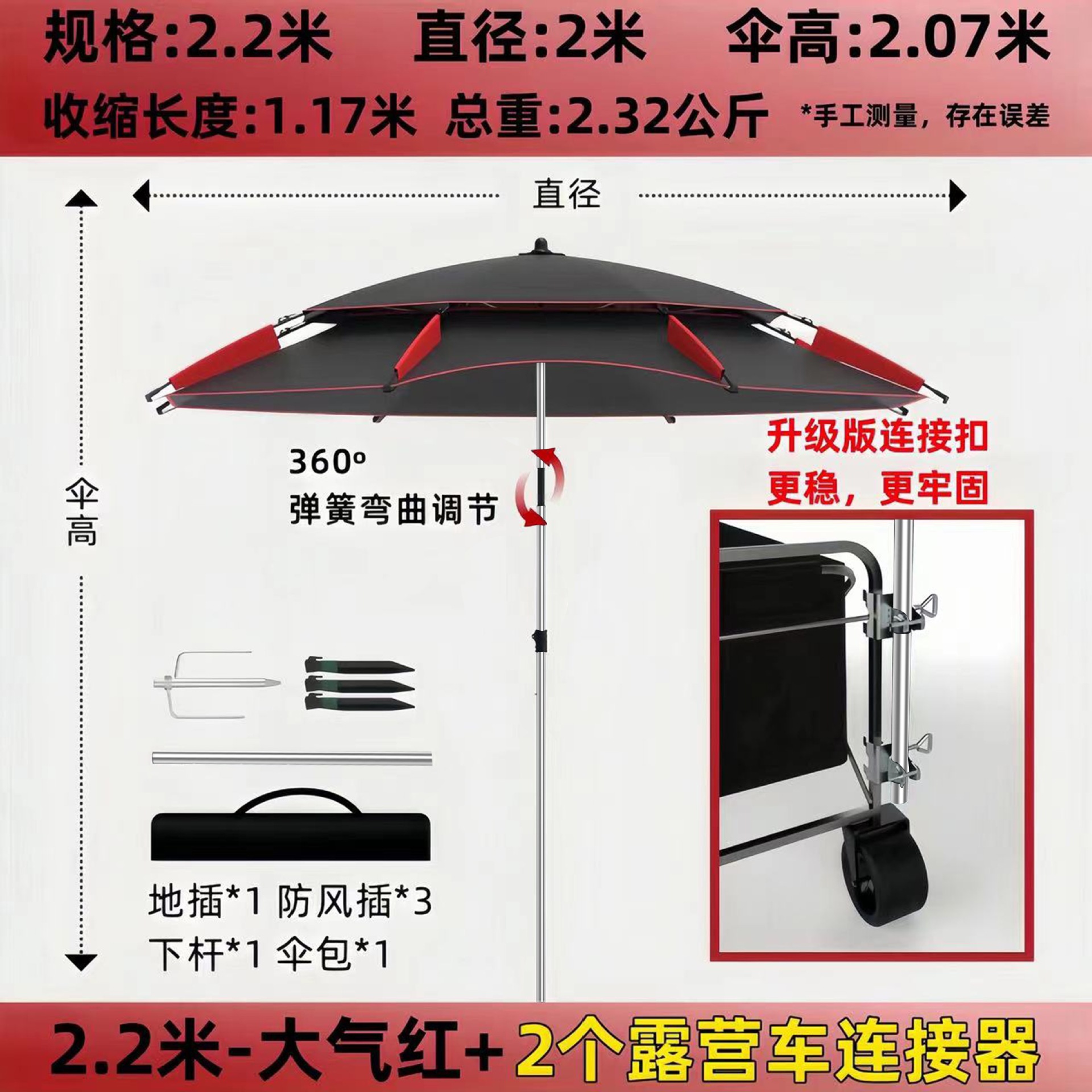• [목발 모델] 2.2m - 대기 블랙/레드 + 캠핑카 커넥터 2개