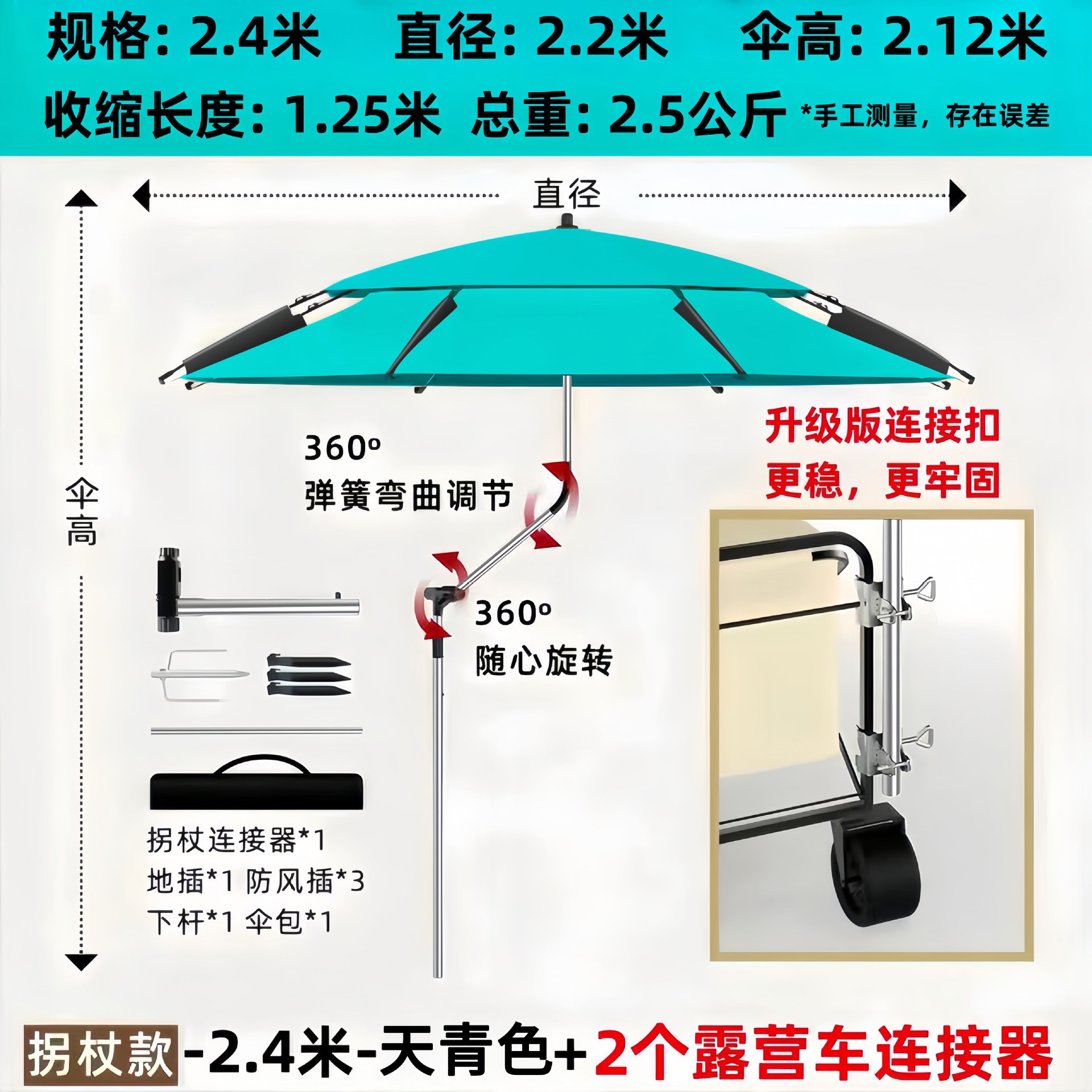 • [목발 모델] 2.2m - 하늘색 + 캠핑카 커넥터 2개